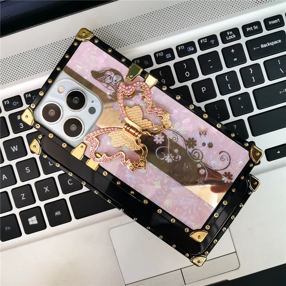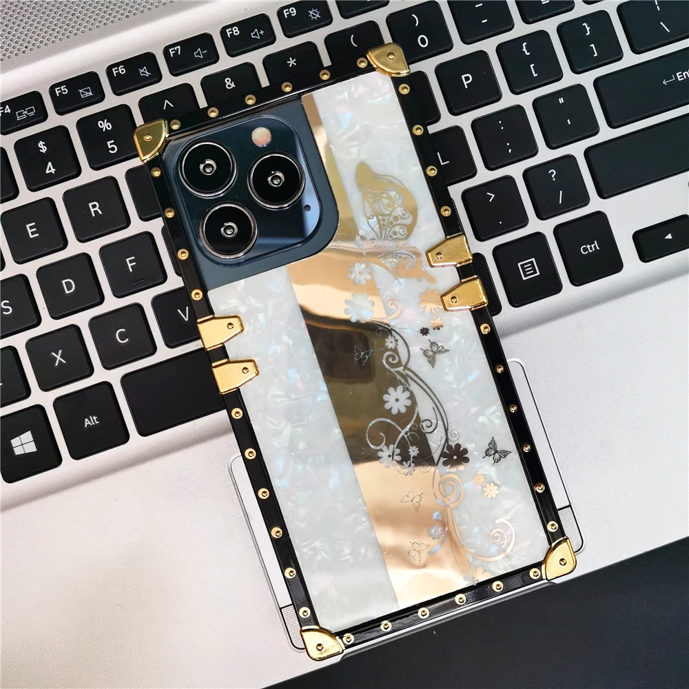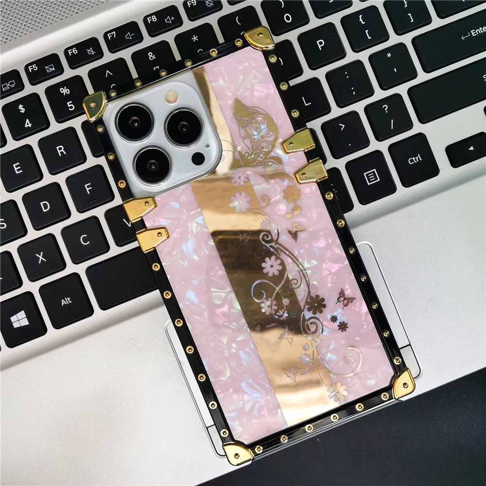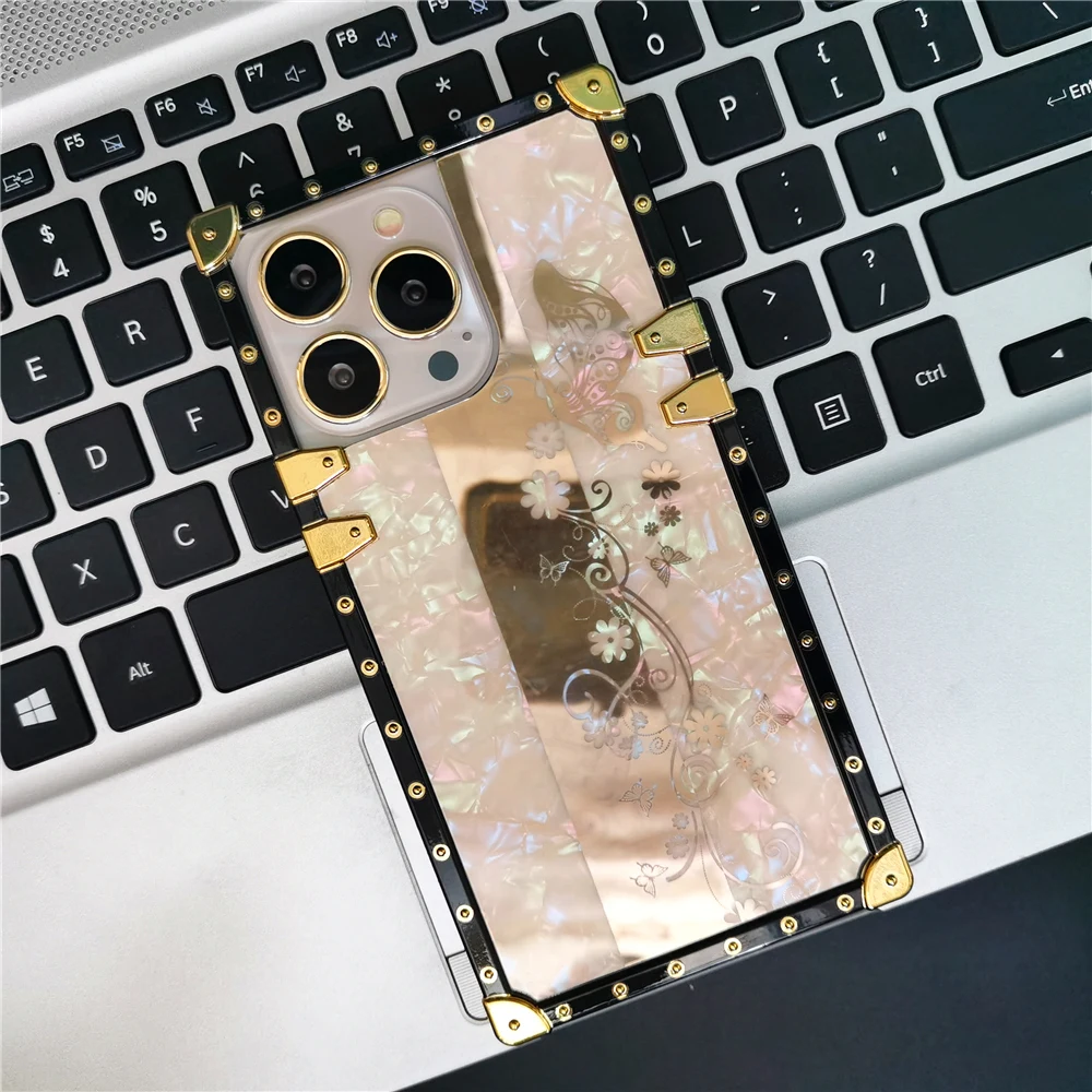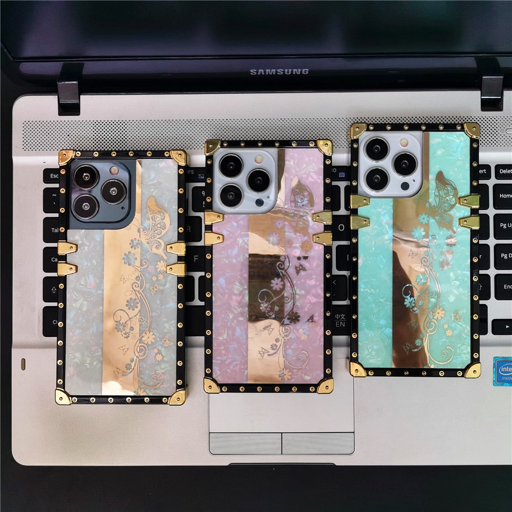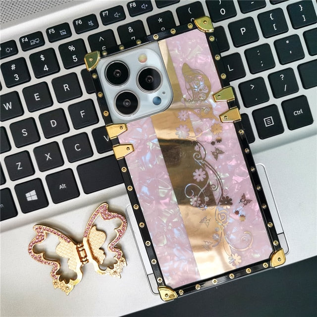 Mirror 3D Butterfly Flower Plating Soft Square Case For iPhone 14 13 12 series