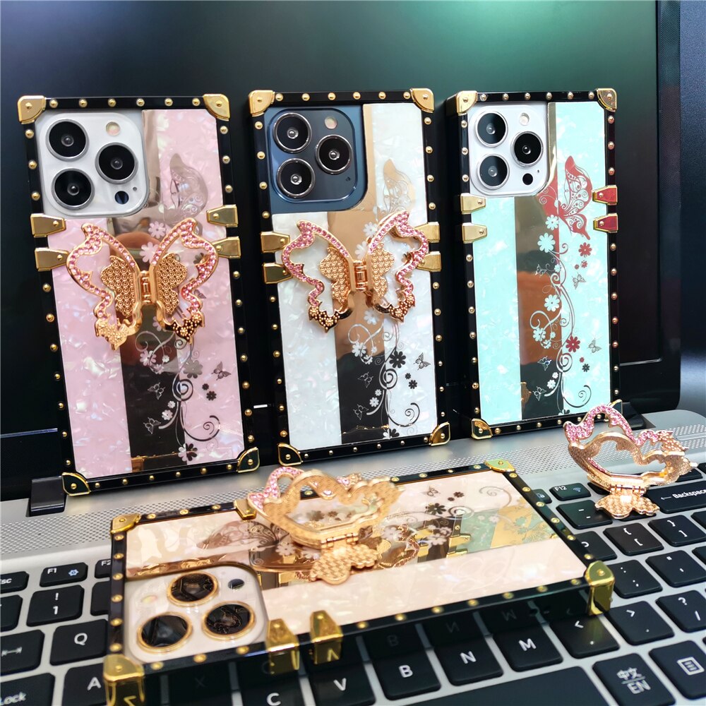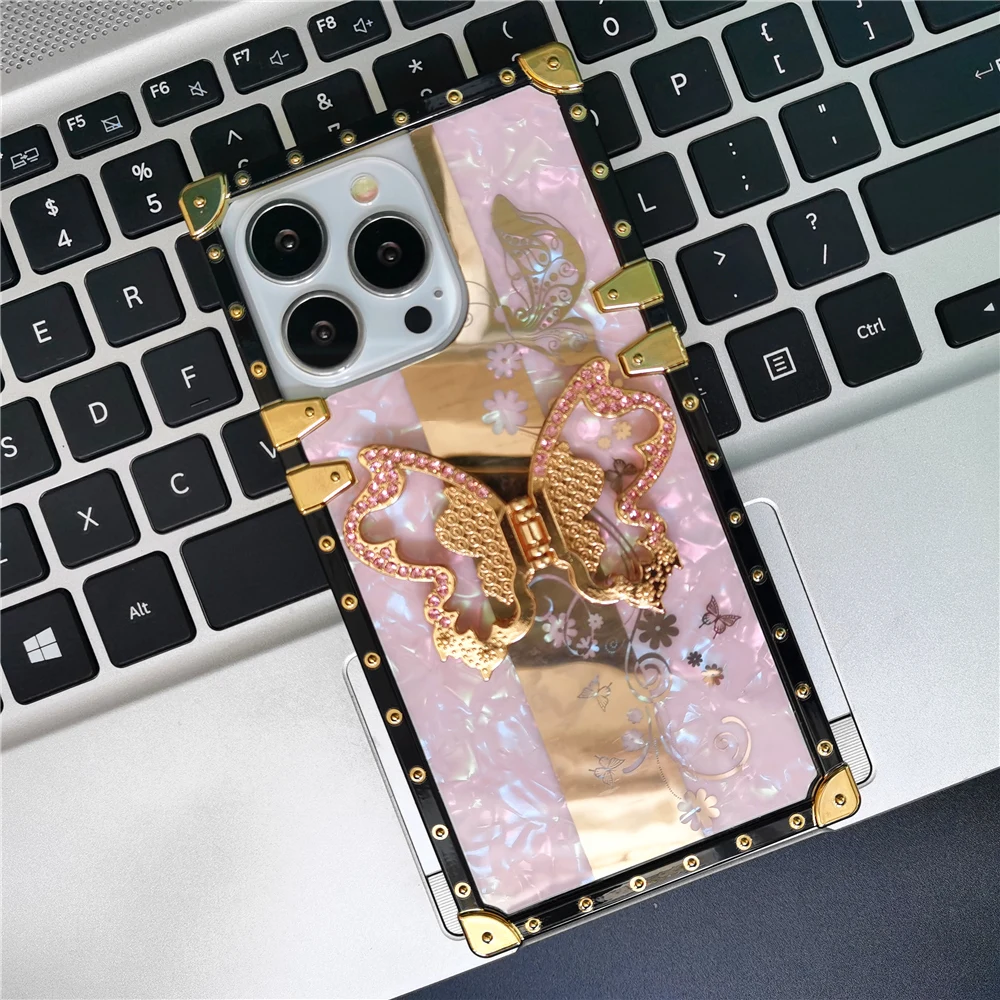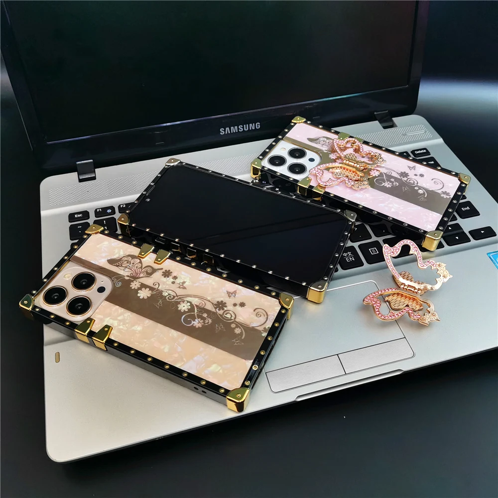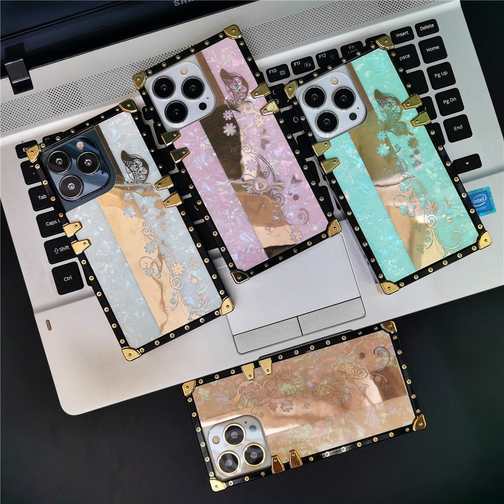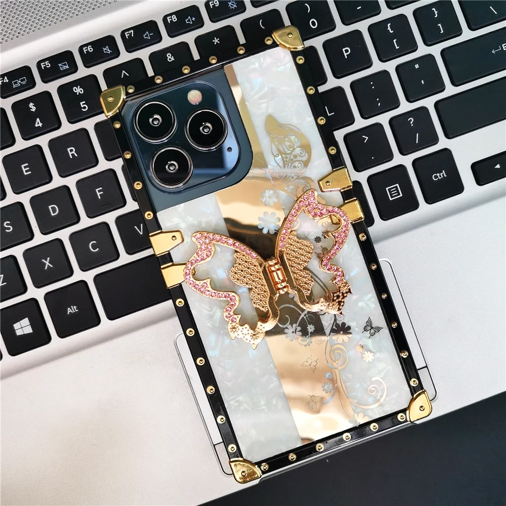 Mirror 3D Butterfly Flower Plating Soft Square Case For iPhone 14 13 12 series