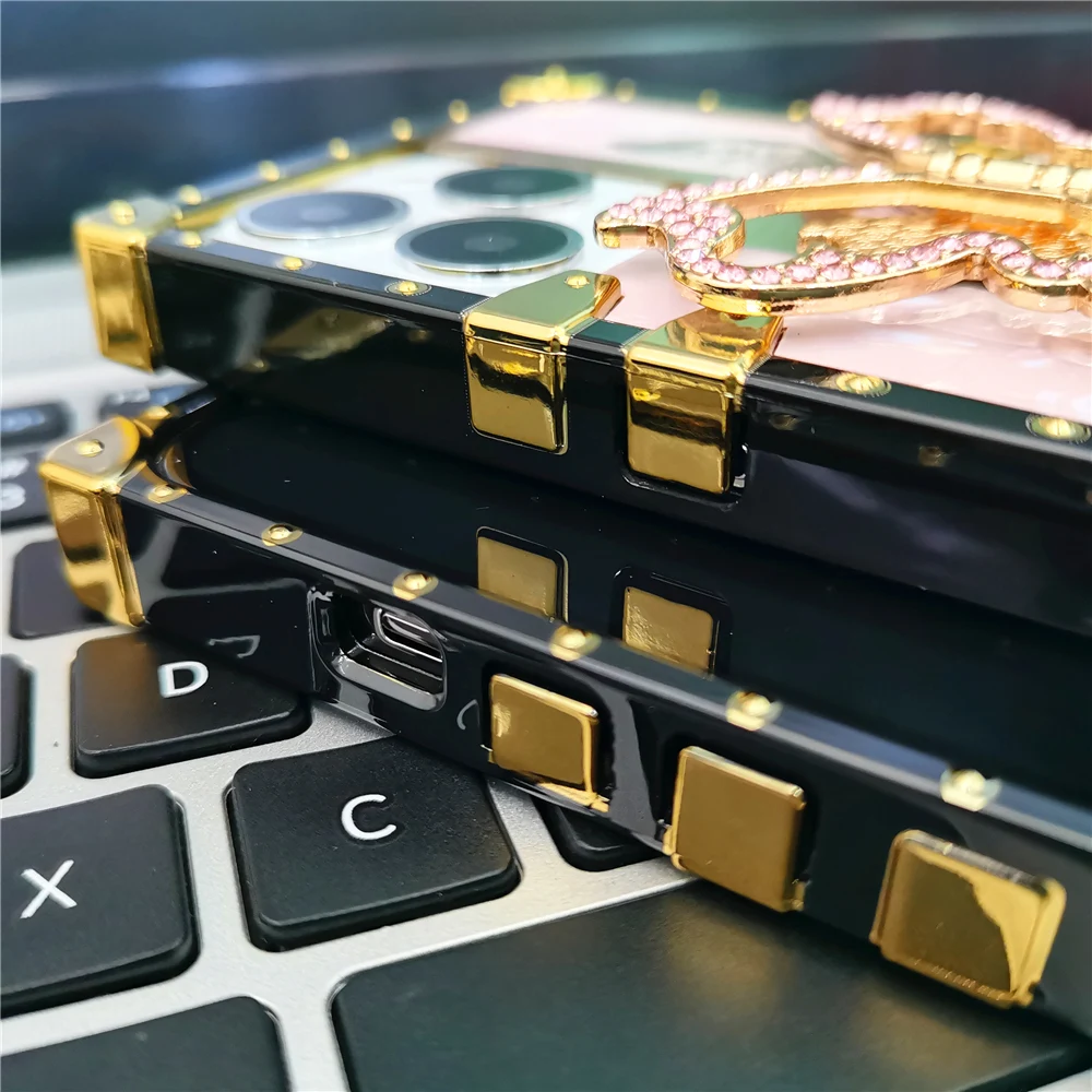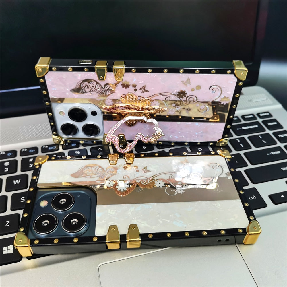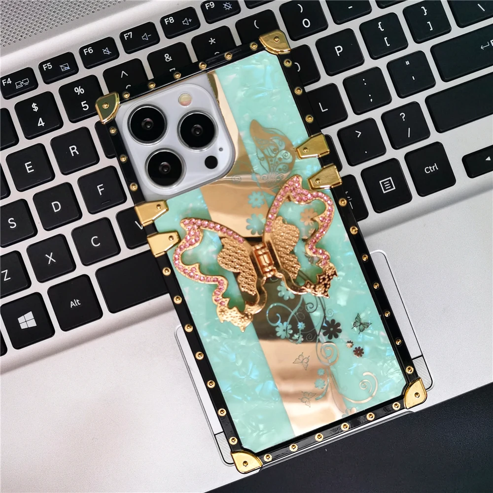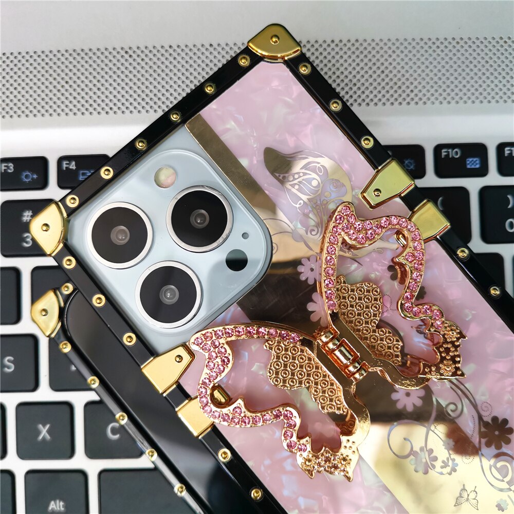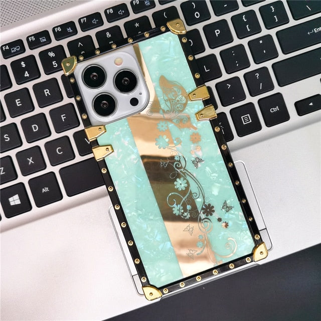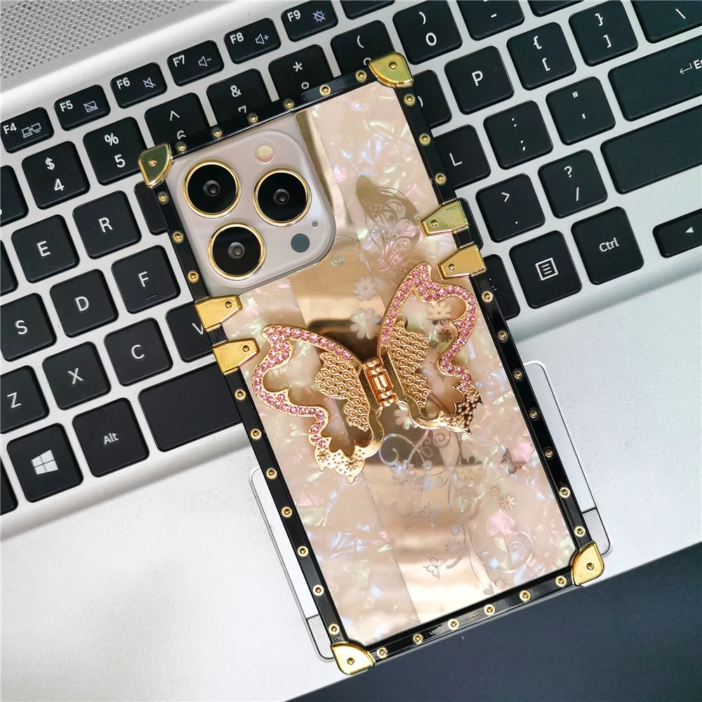 Mirror 3D Butterfly Flower Plating Soft Square Case For iPhone 14 13 12 series