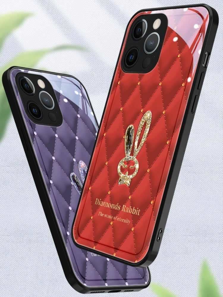 New Cartoon Rabbit Glass Lens Case For iPhone 14 13 12 series
