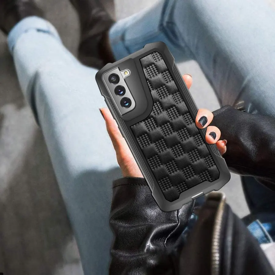 • This Defense Armor Design iPhone Case perfectly fits your galaxy s21 series with perfectly aligned cutouts for all buttons, ports, speakers, and cameras. While featuring [Raised Bezel] to lift the screen and camera off the flat surface.