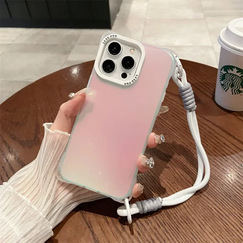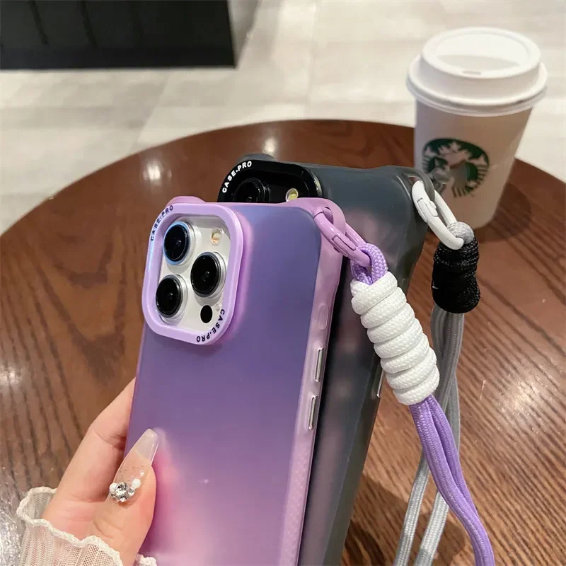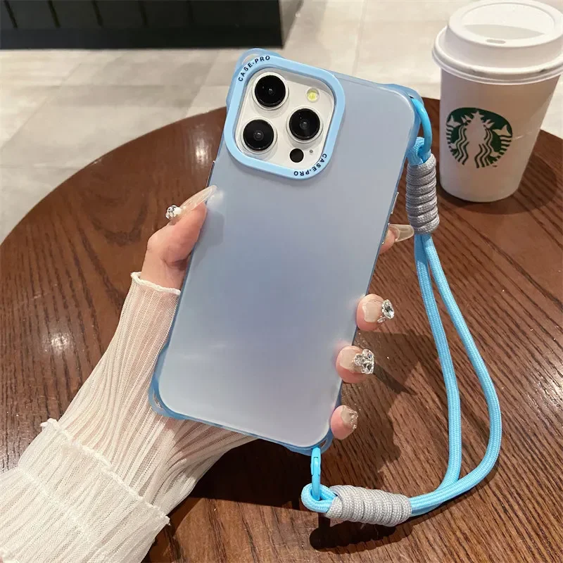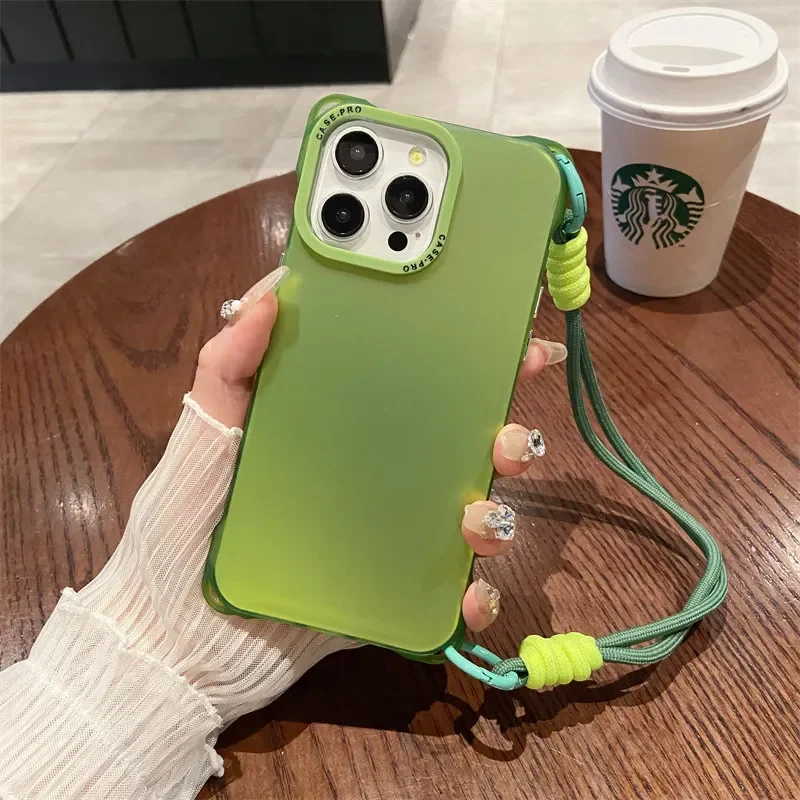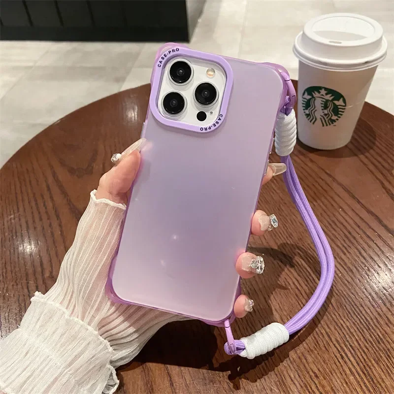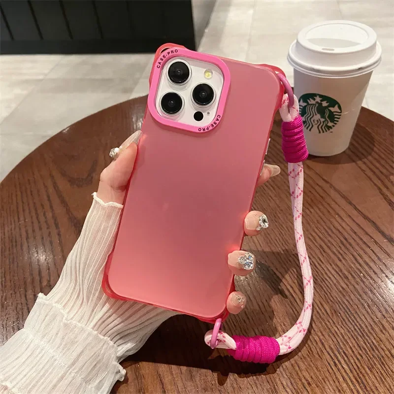 Pastel Color TPU Case With Hand Strap For iPhone 15 14 13 12 series
