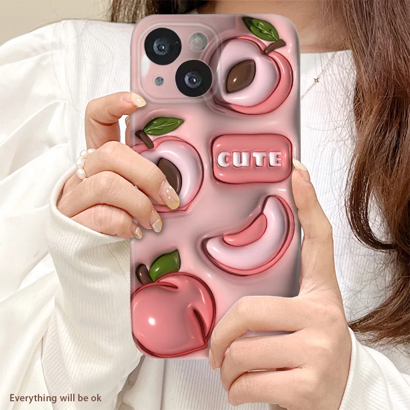 Peach Fruit Red Malic Crust Drop Resistant Shockproof Case For iPhone 14 13 12 series