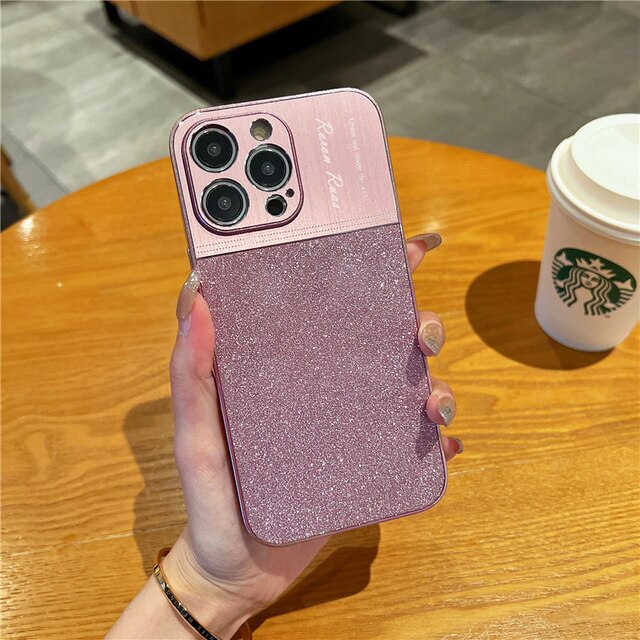 Personalised Customized Name Aluminum Alloy Camera Protection Bling Glitter Cute Case For iPhone 14 13 12 series