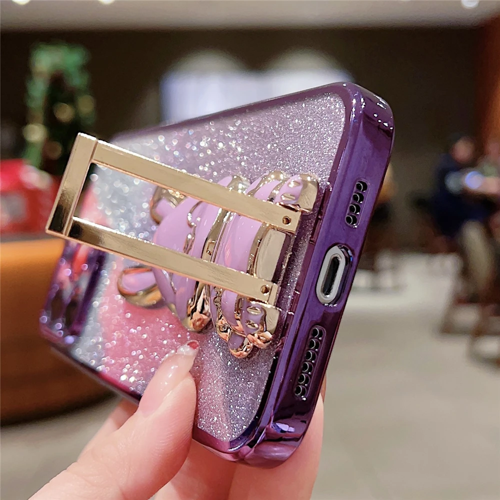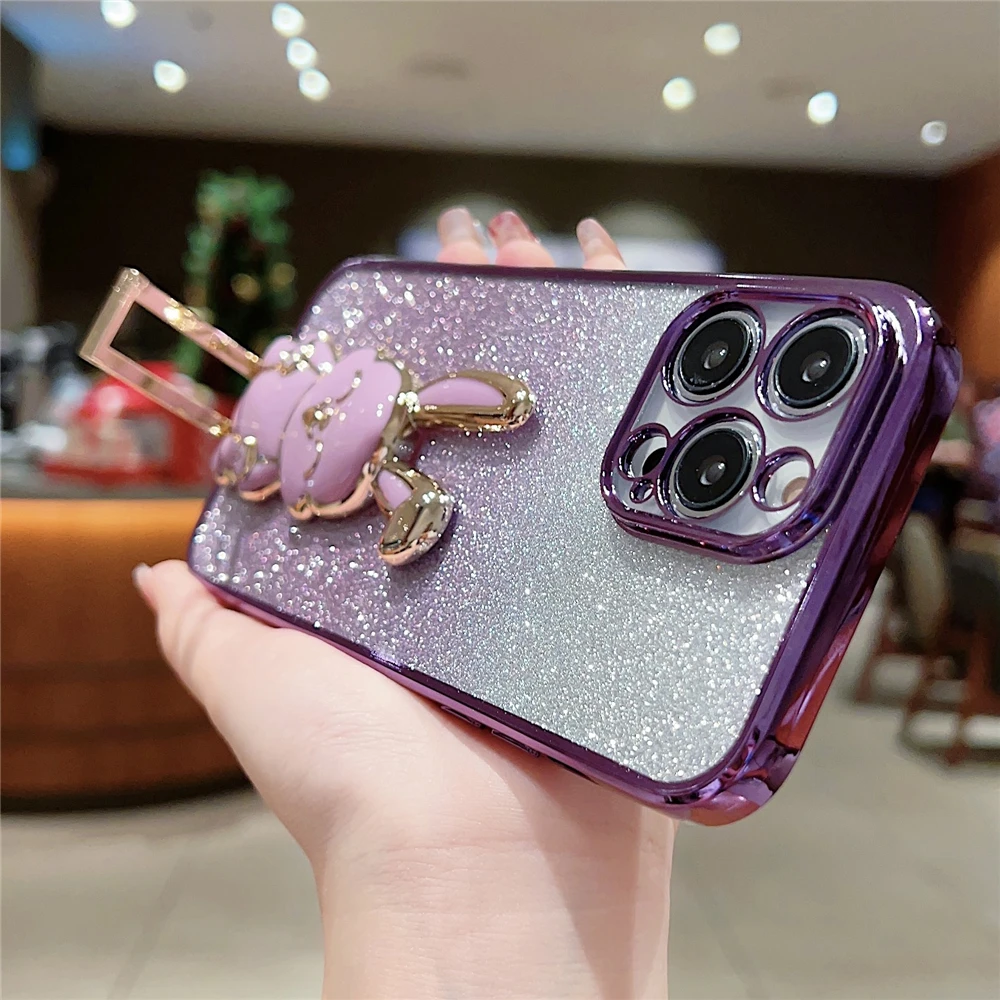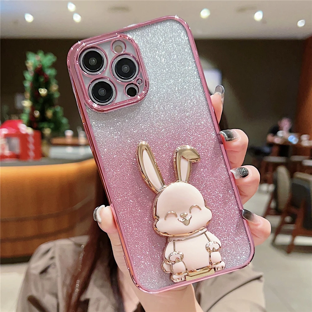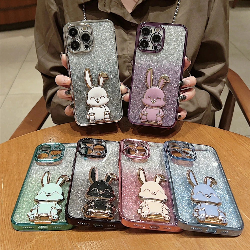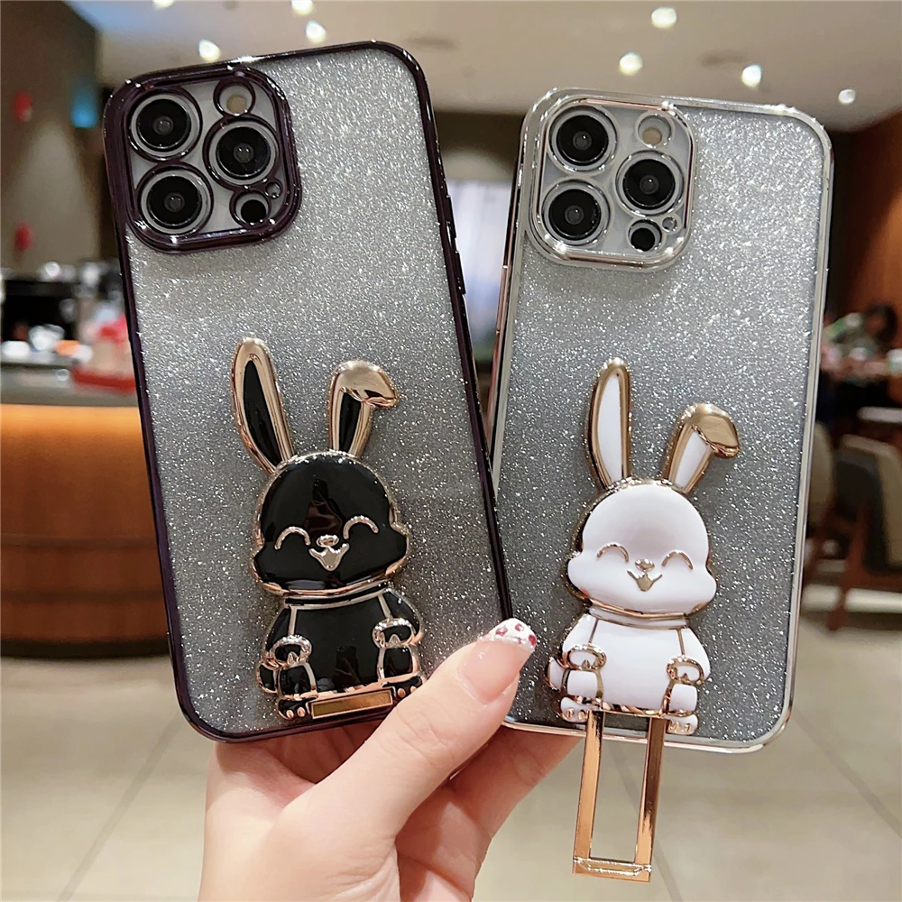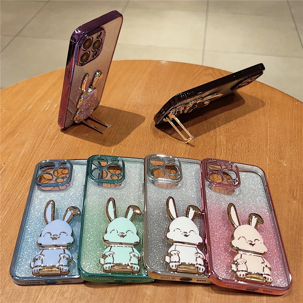 Plating Shiny Rabbit Holder Case For iPhone 14 13 12 series
