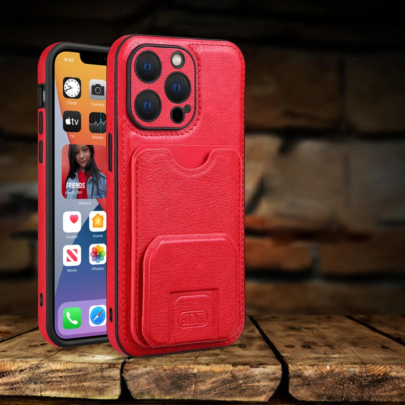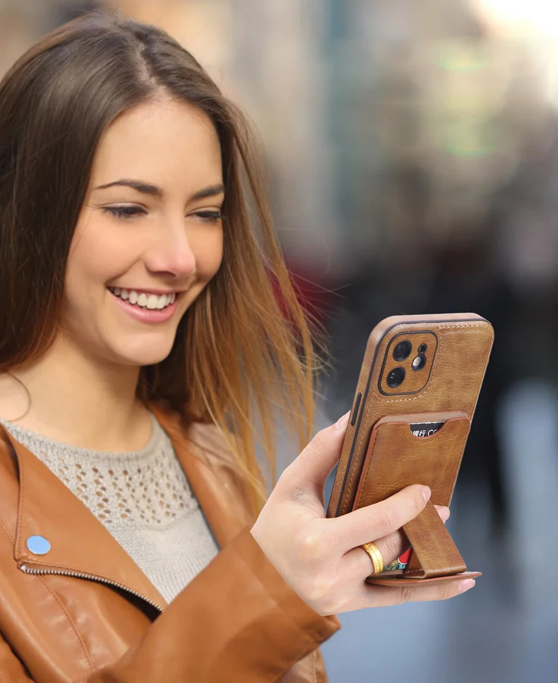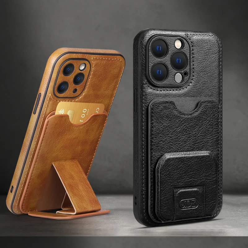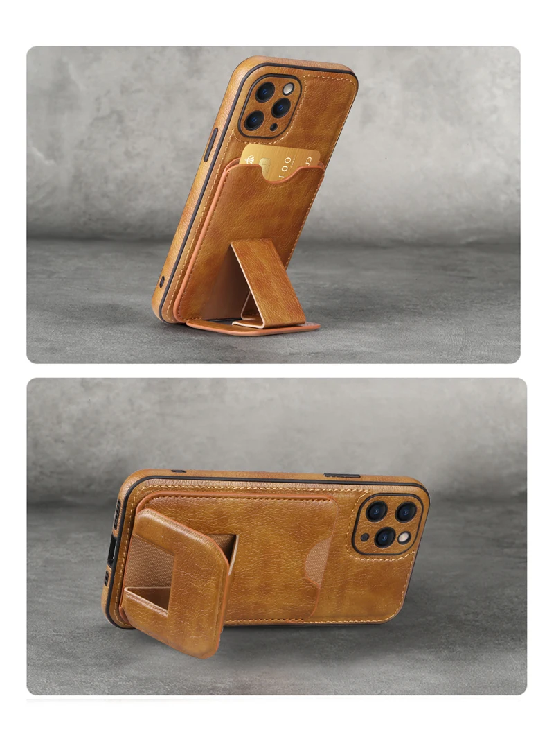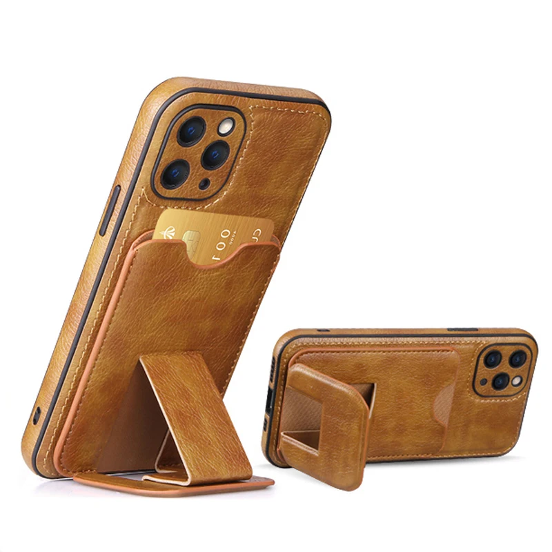 PU Leather Ultra Thin Camera Protection KickStand Card Slot Case for iPhone 14 13 12 series