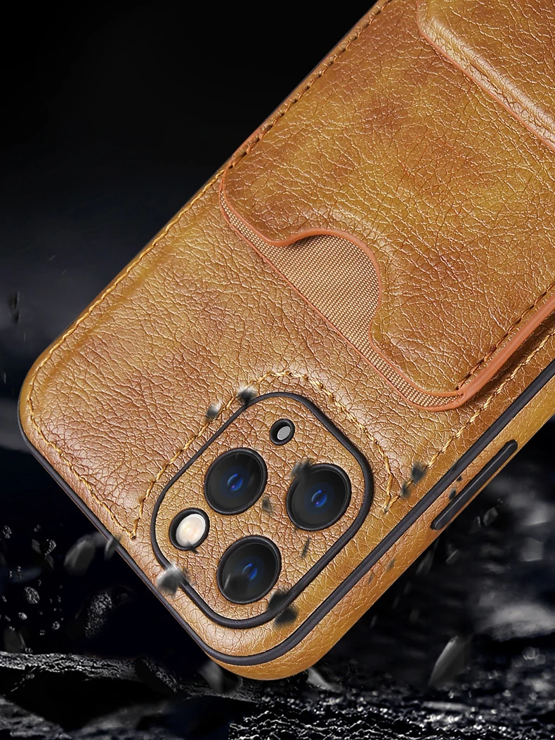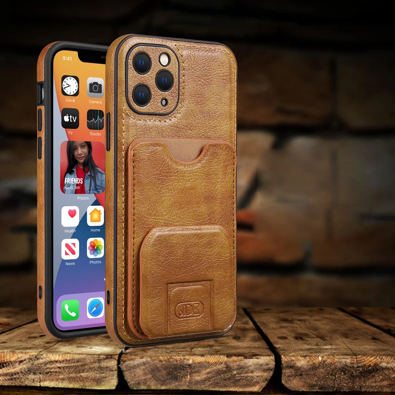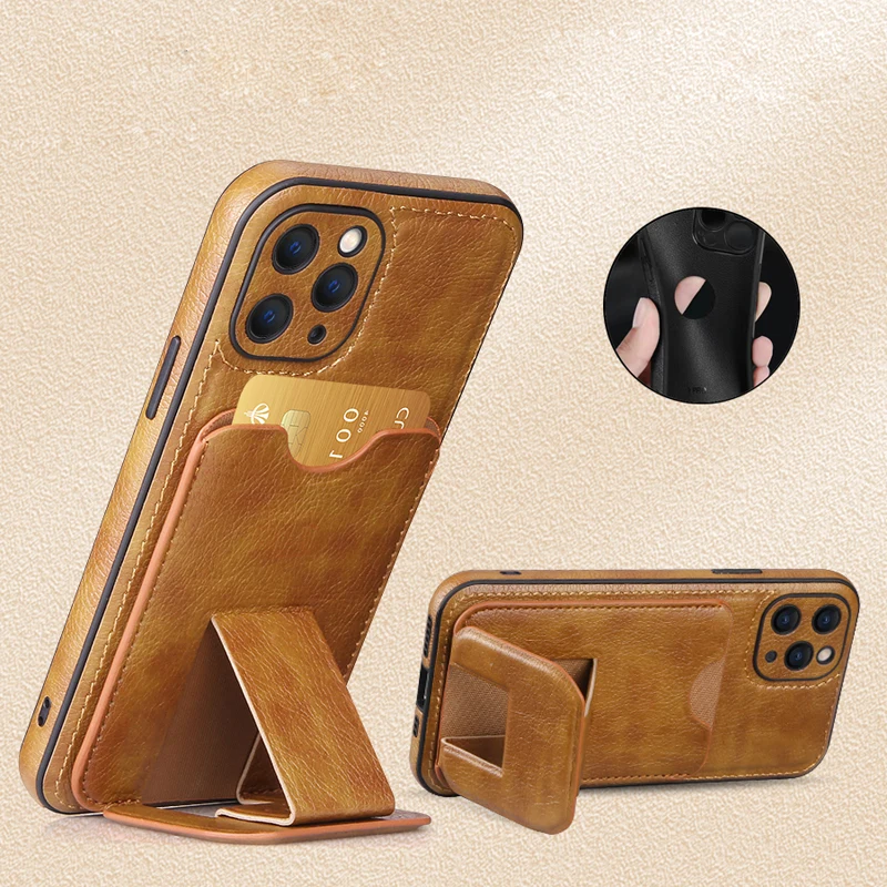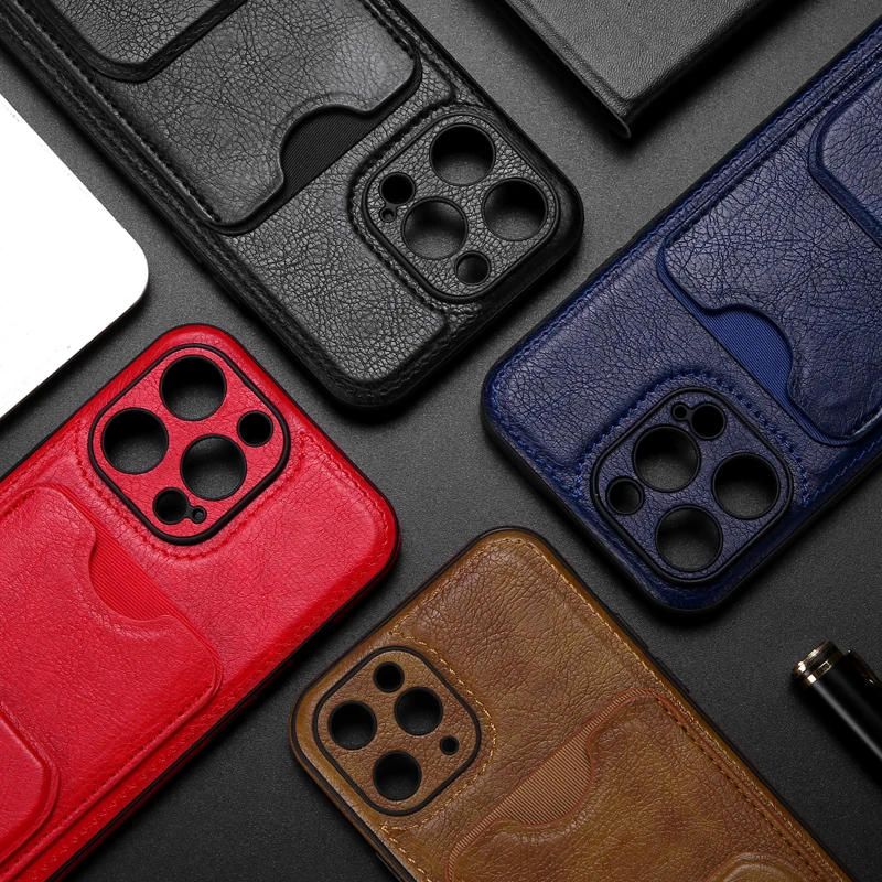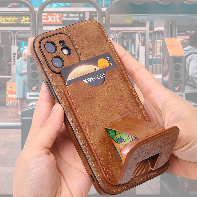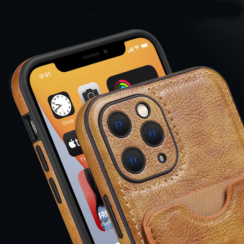 PU Leather Ultra Thin Camera Protection KickStand Card Slot Case for iPhone 14 13 12 series