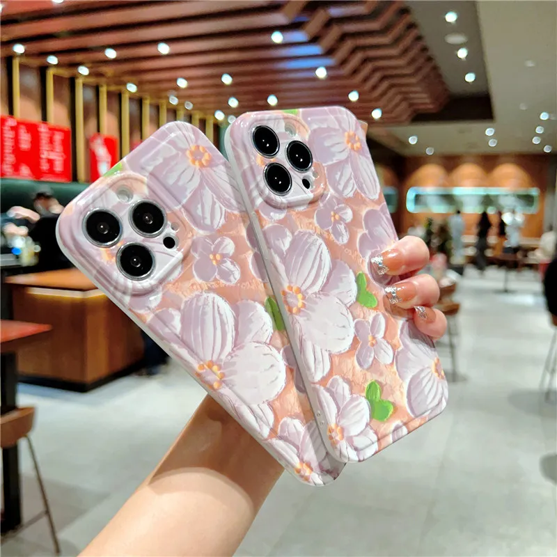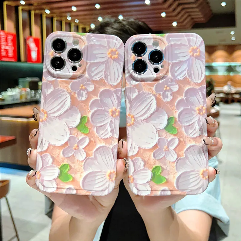 Retro Painting Flower Case For iPhone 14 series