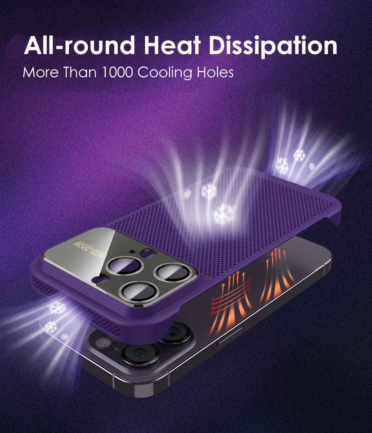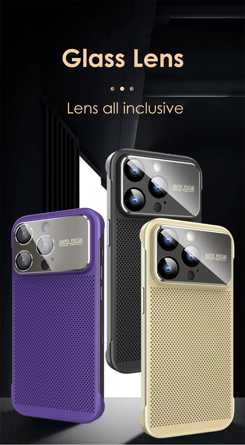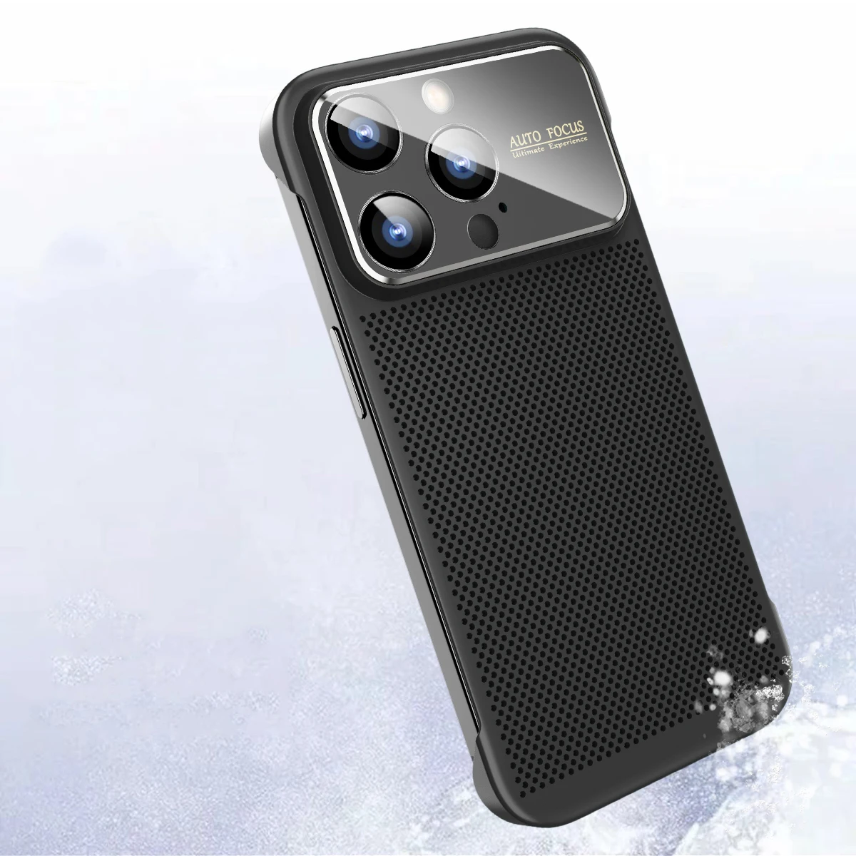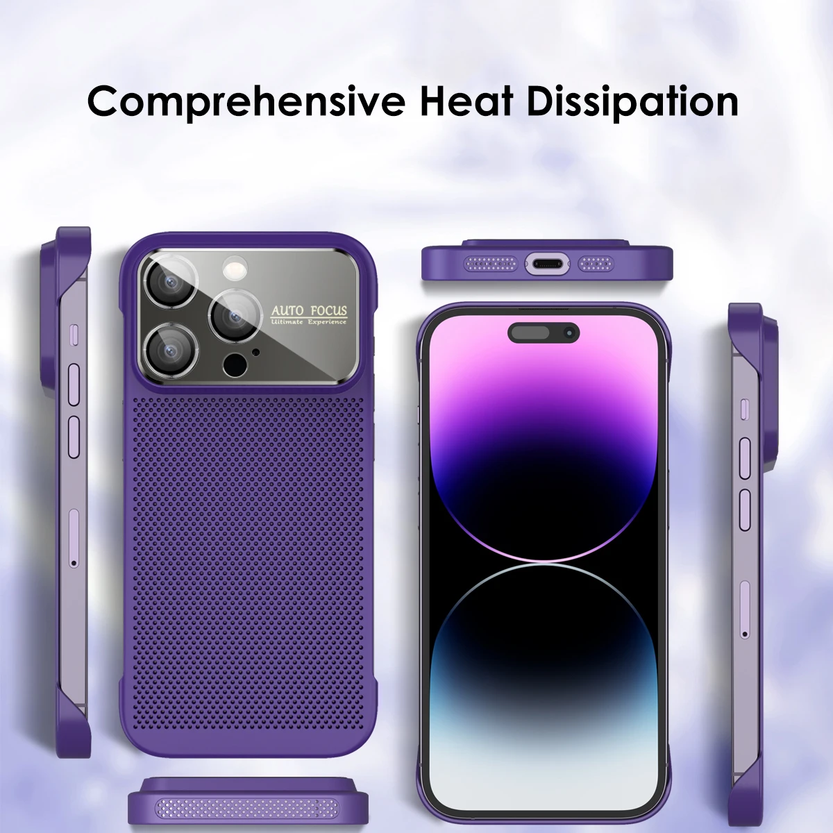 Rimless Cooling Big Window Glass Lens Protection Shockproof Case For iPhone 14 13 12 series