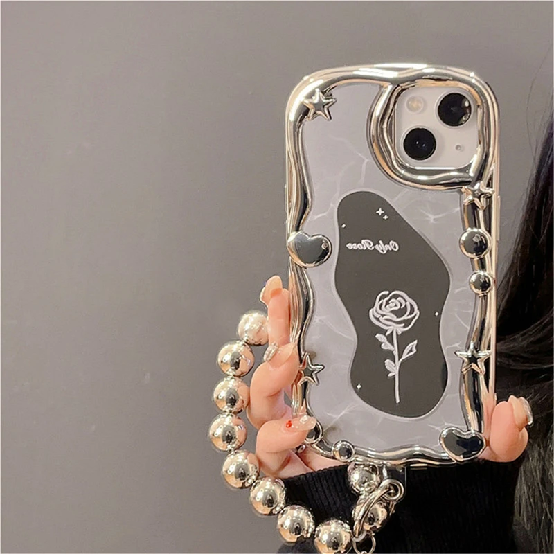 Rose Flower Star Love Bead Bracelet Silicone Case For iPhone 14 13 12 series