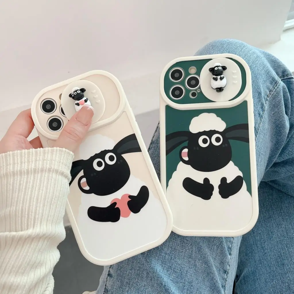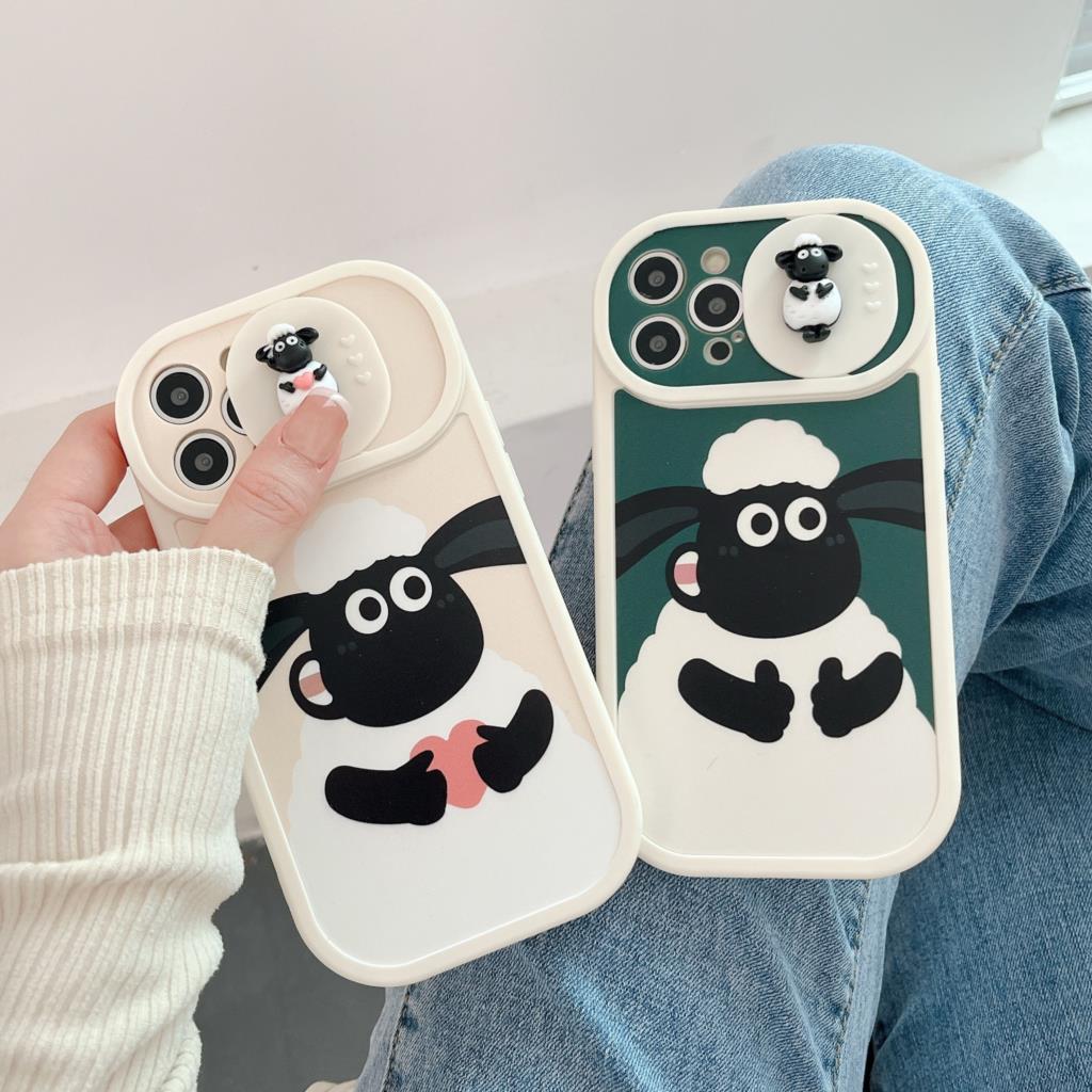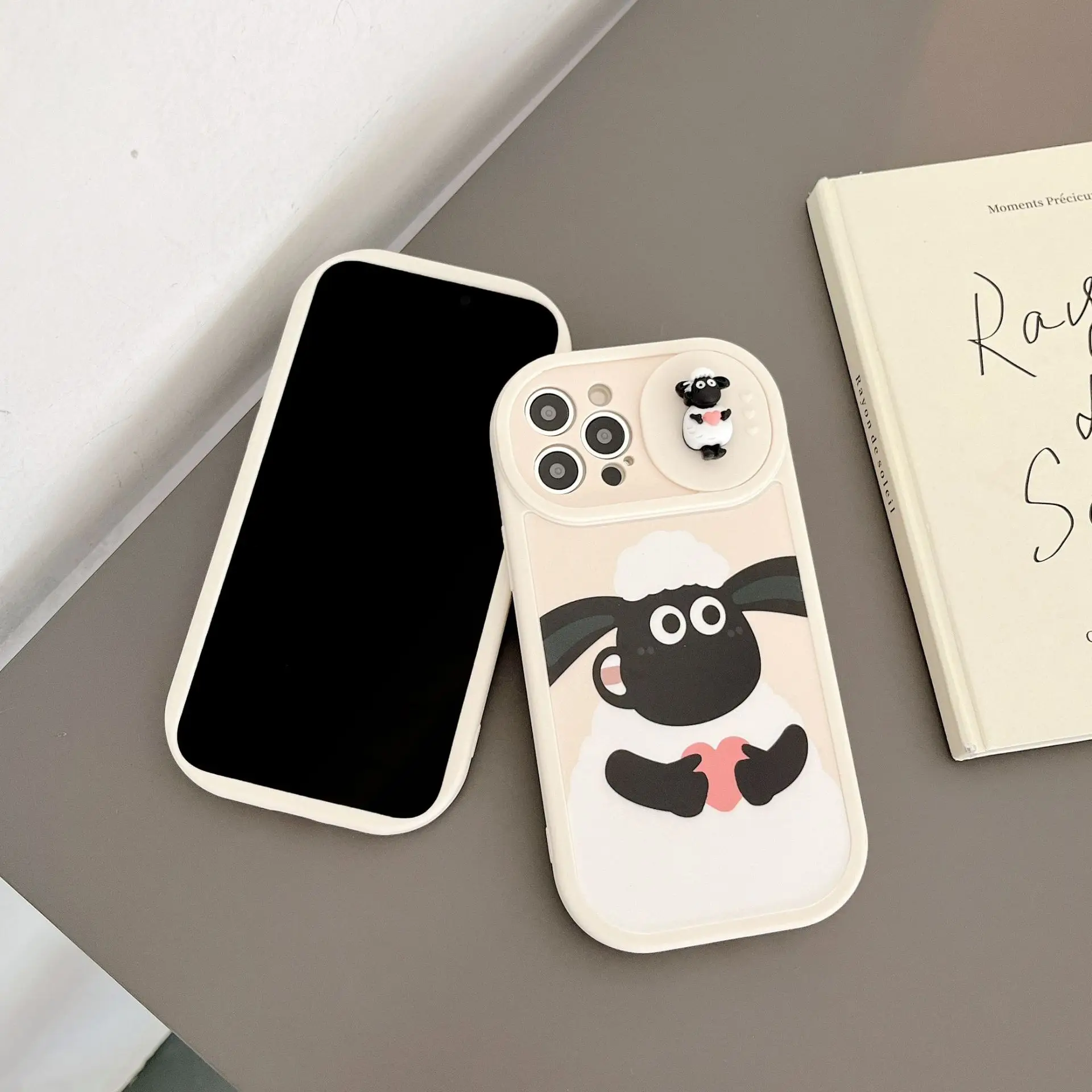 Sheep Shawn Snow Slide Camera Lens Protection Couple Case For iPhone 14 13 12 series