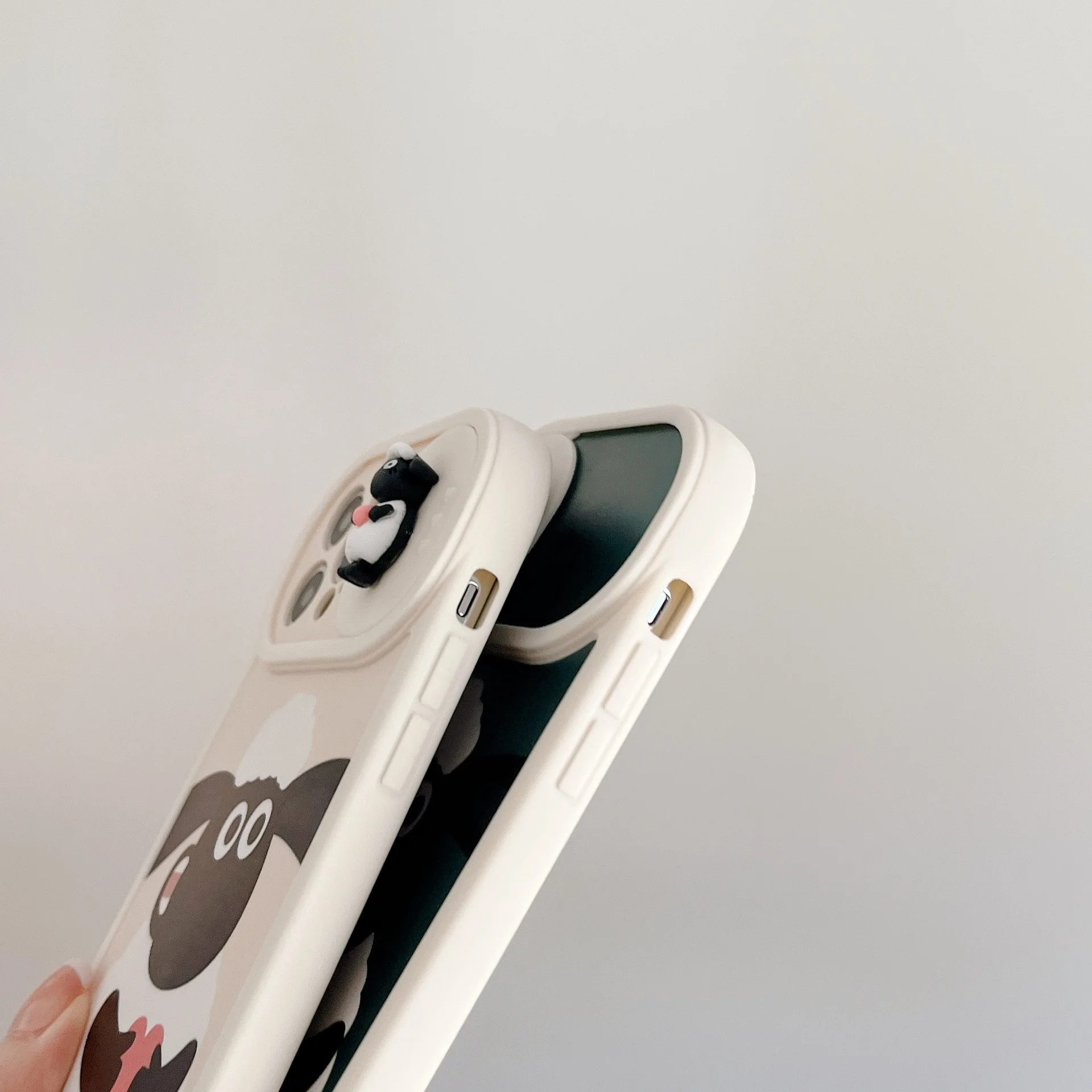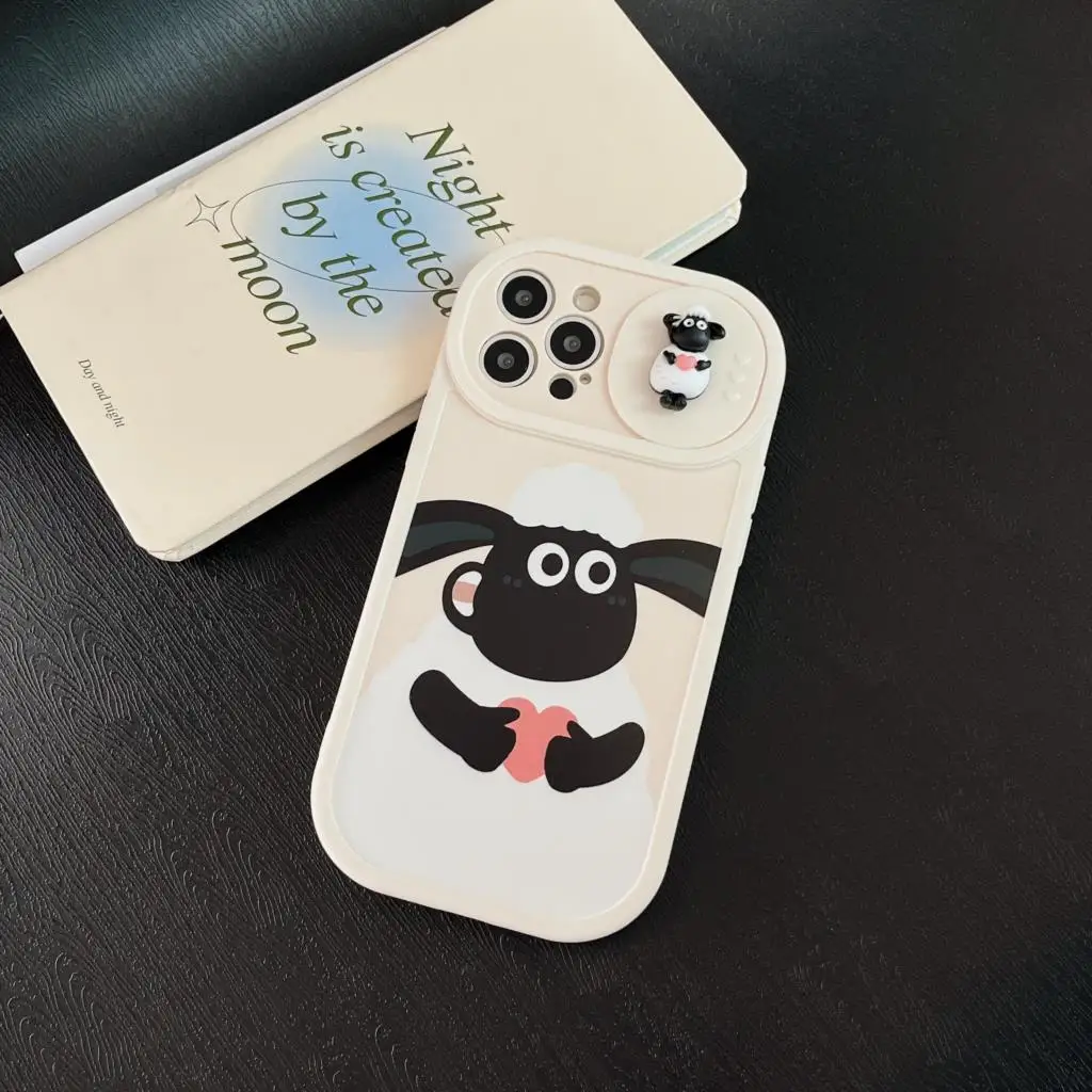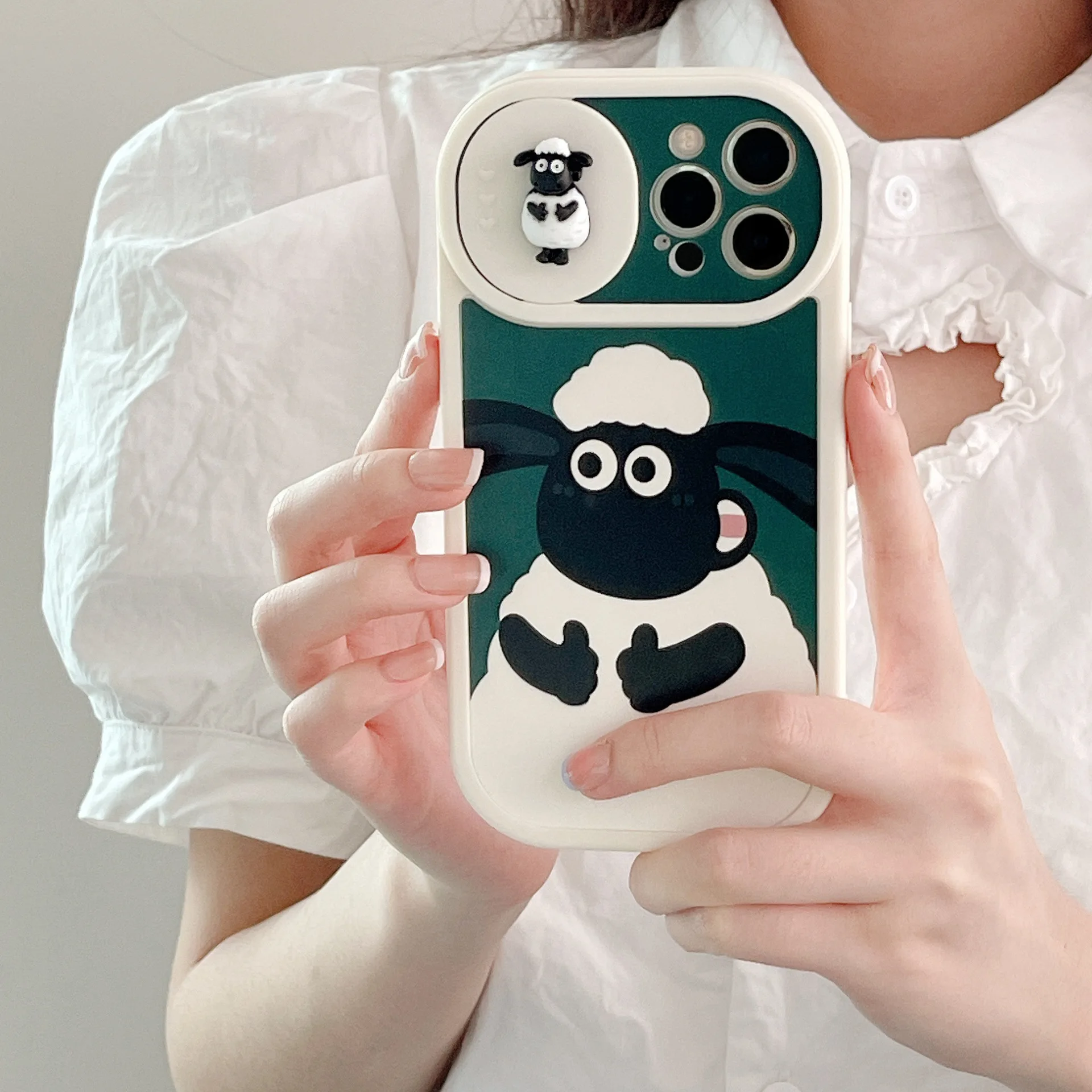 Sheep Shawn Snow Slide Camera Lens Protection Couple Case For iPhone 14 13 12 series