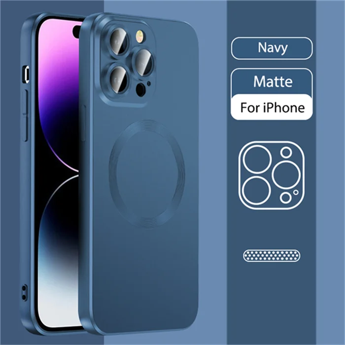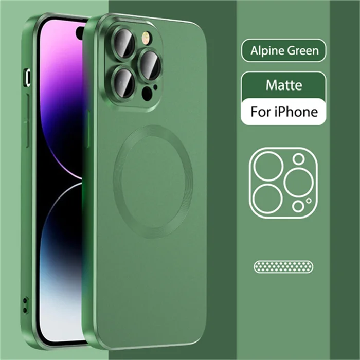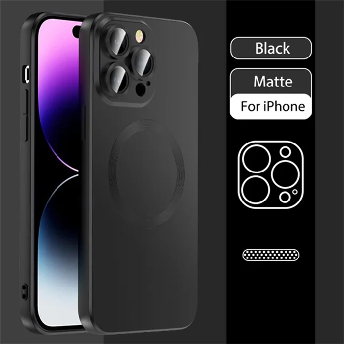 Silicone Lens Magnetic Wireless Charging Matte Case for iPhone 14 13 12 series