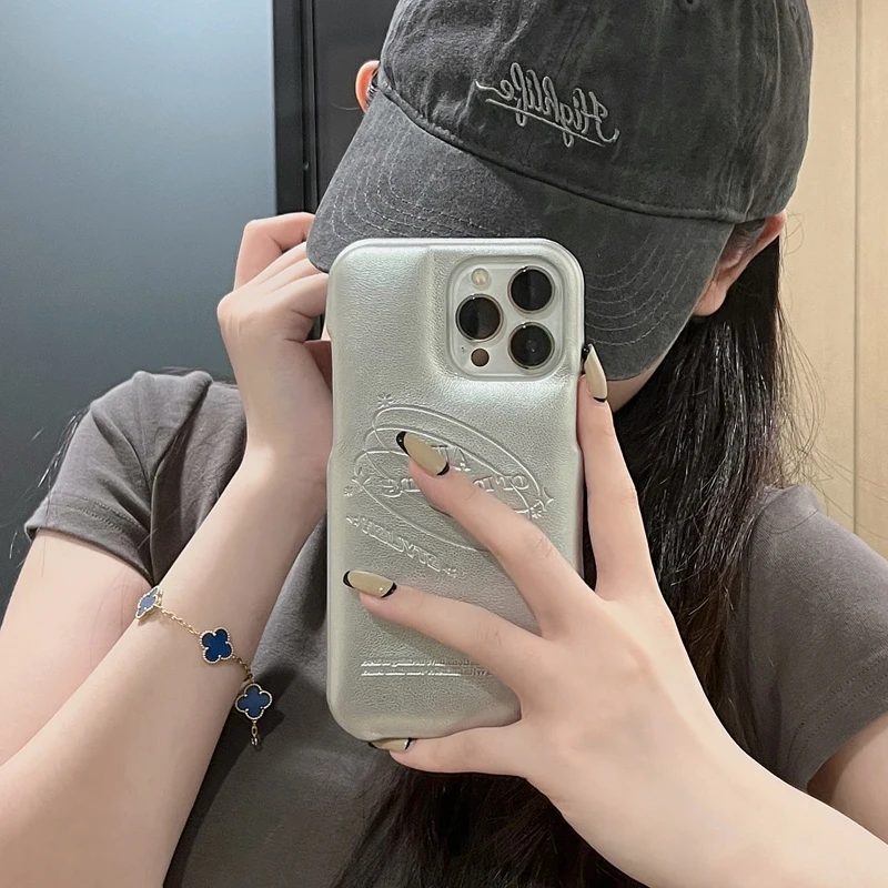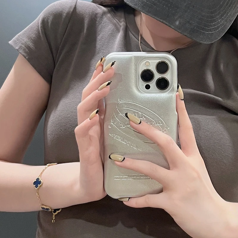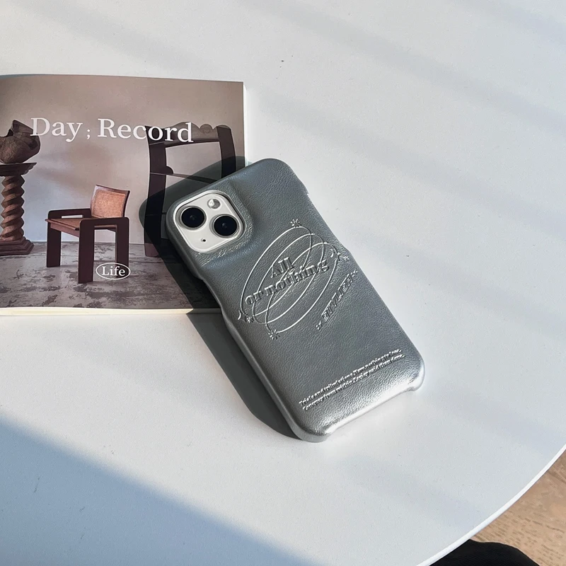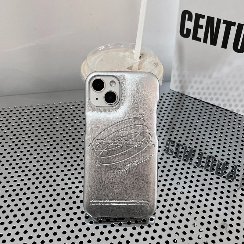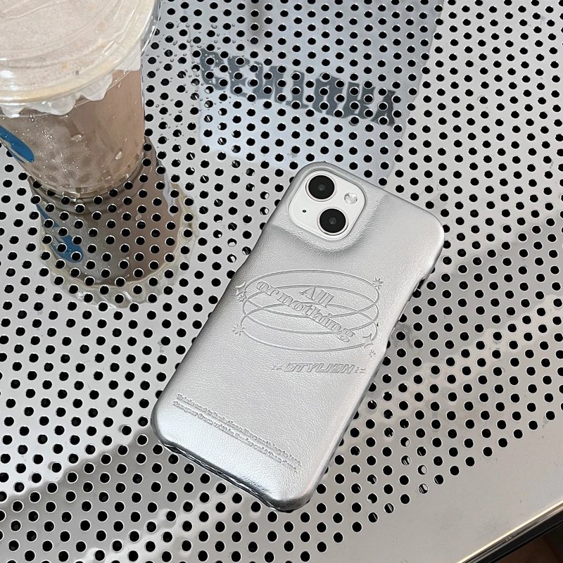 Silver Leather Bubble Case for iPhone 14 13 12 series