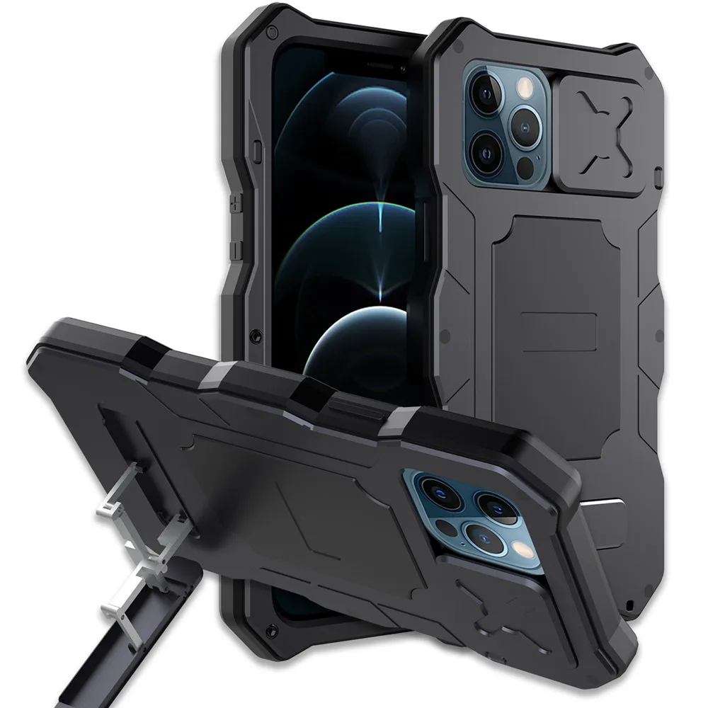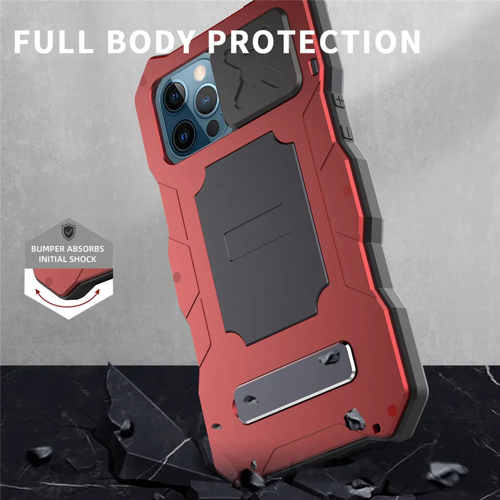 Slide Camera Protector Shockproof Aluminum Metal Armor Kickstand Case For iPhone 13 12 Series