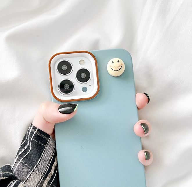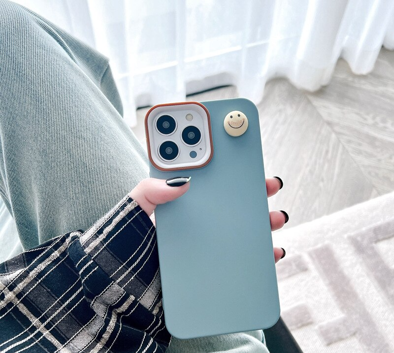 Smiley Cartoon Solid Color Silicone Case For iPhone 14 13 12 series