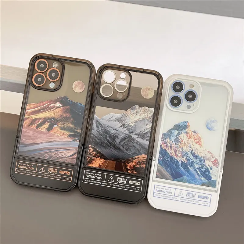 Snow Mountain Sunset Clear Case with Invisible Stand for iPhone 13 12 11 Pro Max