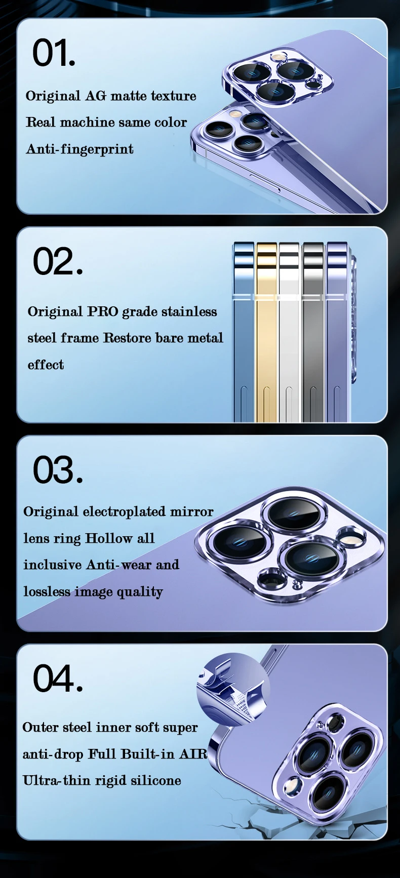 Stainless Steel Matte Lens Protection Case For iPhone 14 series