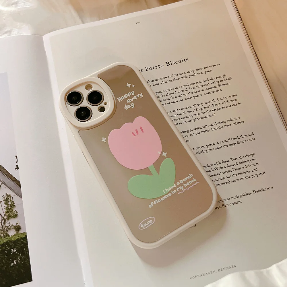 Tulip Flower Soft Mirror Case for iPhone 13 12 11 Pro Max Mini