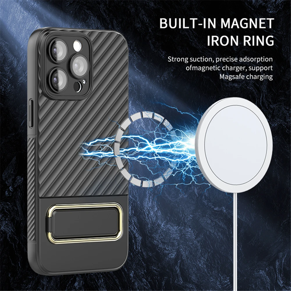 Ultra Thin Magnetic Camera Protector Shockproof Case With KickStand For iPhone 14 13 series