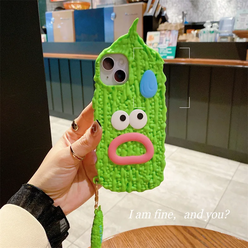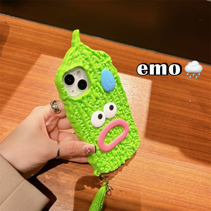 Wacky Bitter Melon Touch Pen Soft Silicone Case For iPhone 14 13 12 series