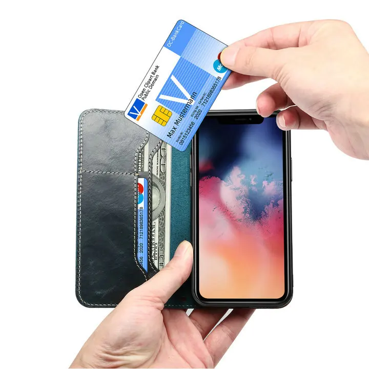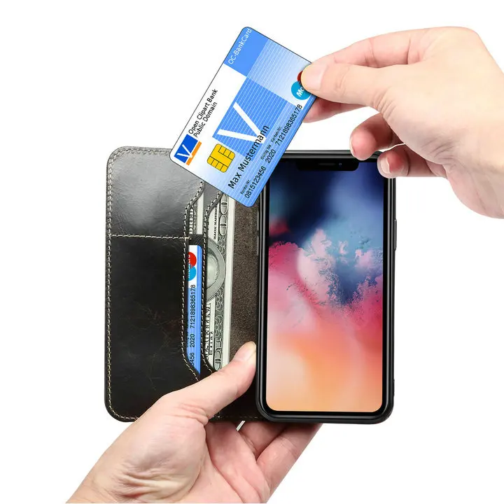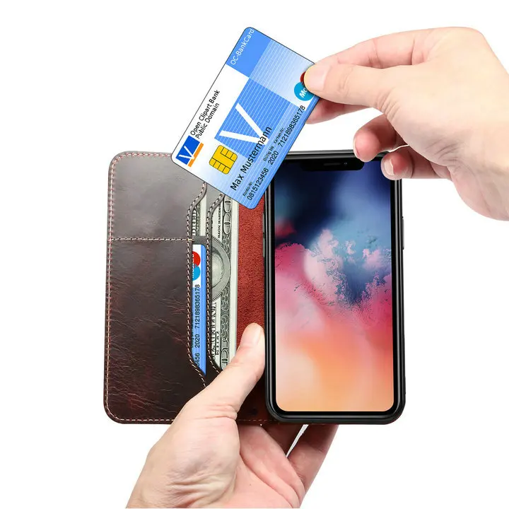 Wallet Finger Strap Leather Case iPhone 14 13 12 series