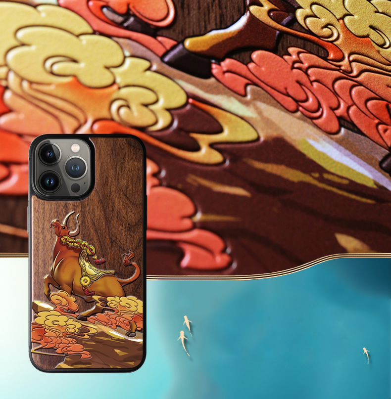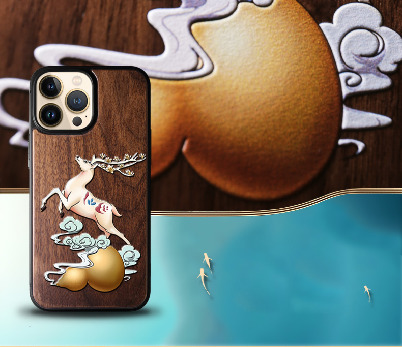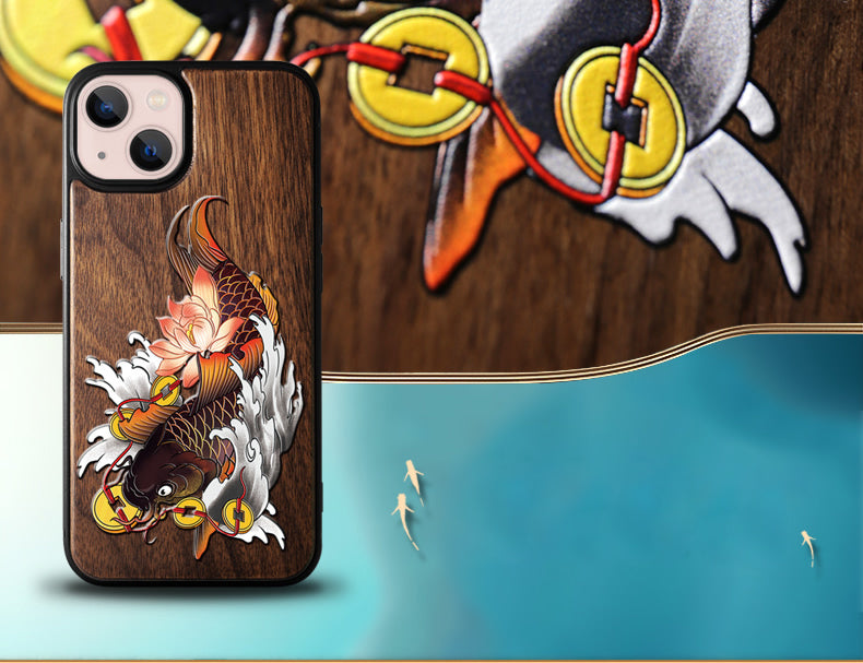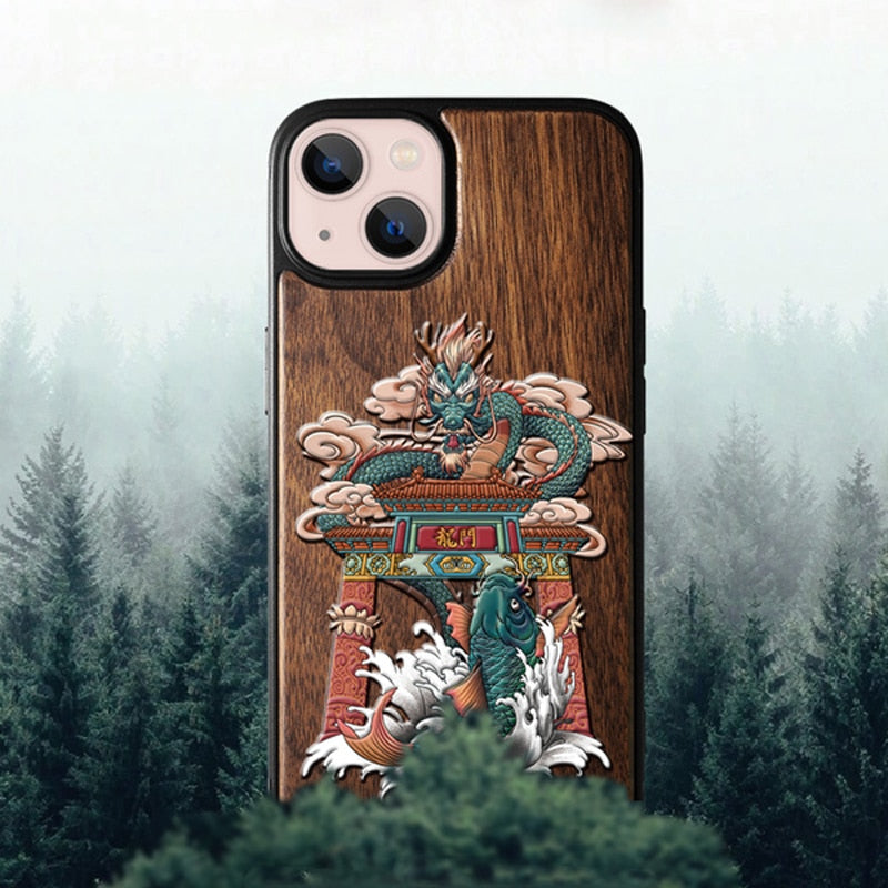 Walnut Wood 3D Embossing Cases for iPhone 14 13 series