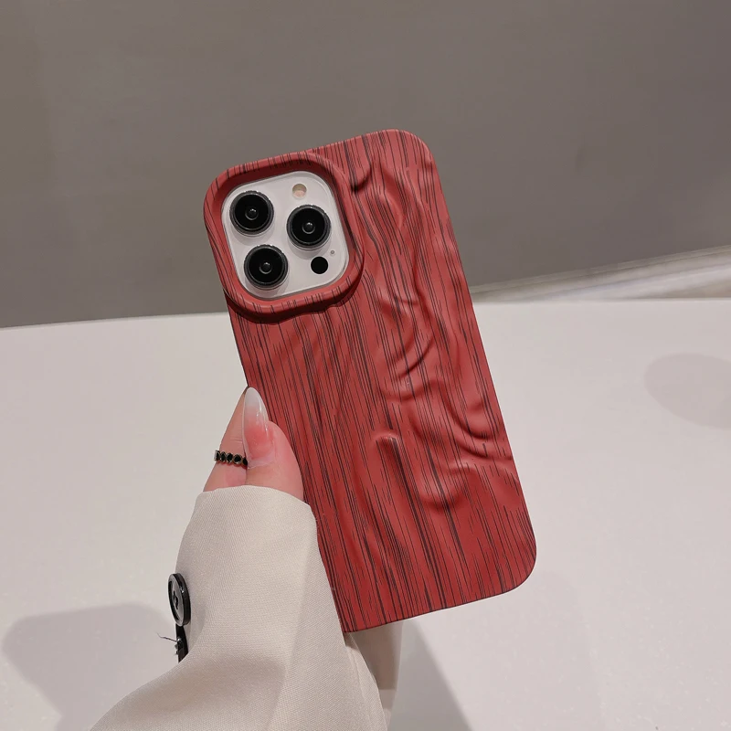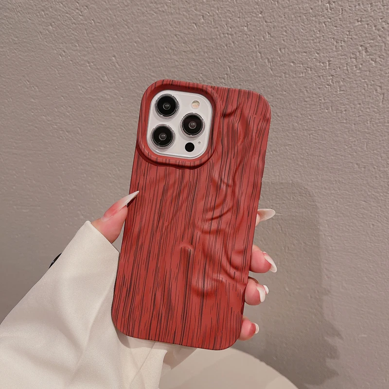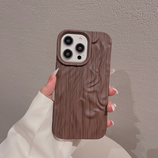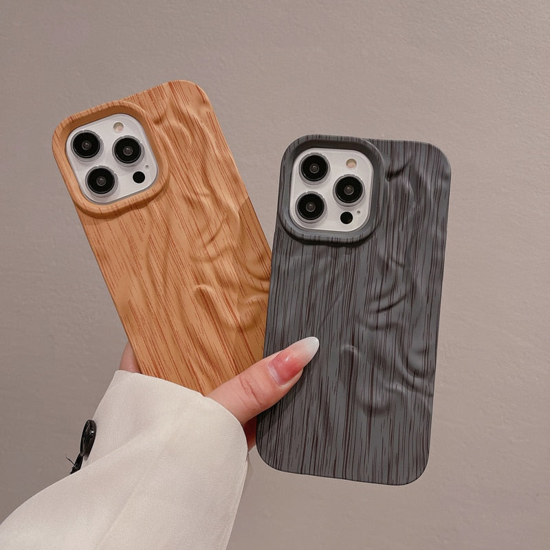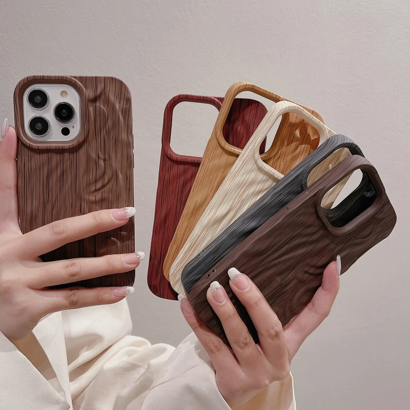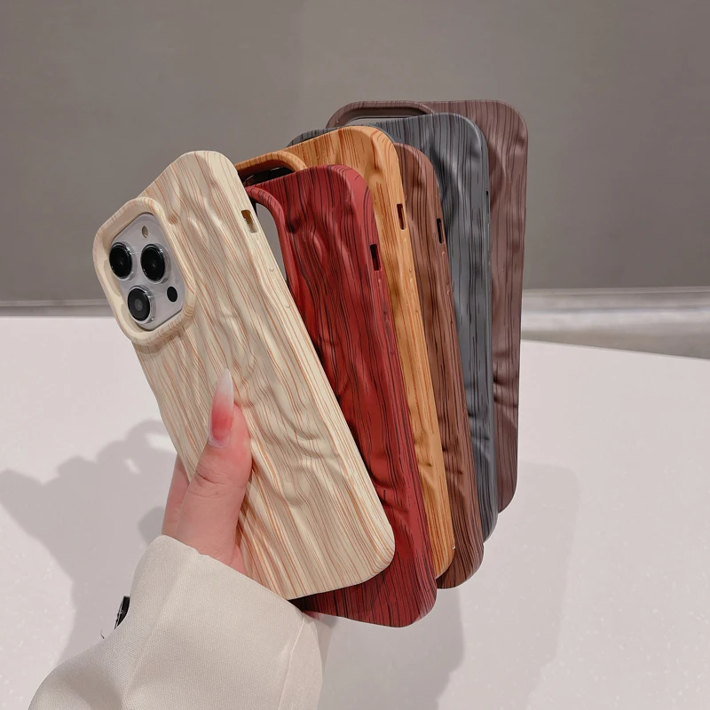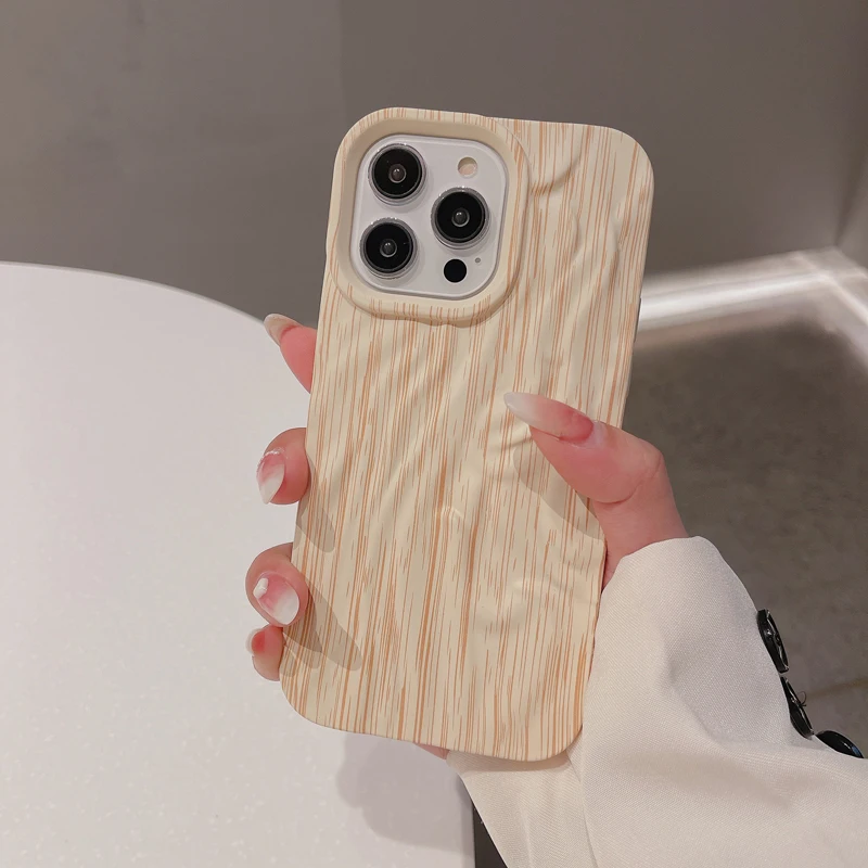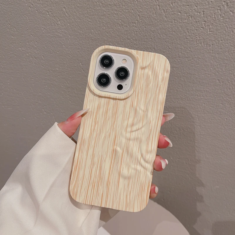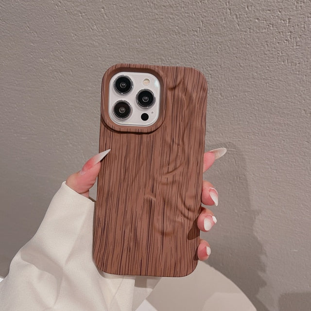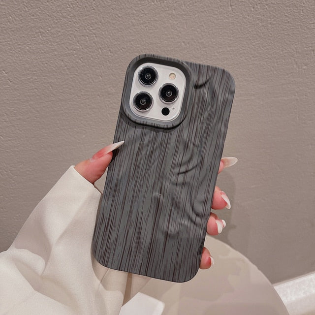 Wooden Grain Texture Solid Color Shockproof Soft Case For iPhone 14 13 12 series