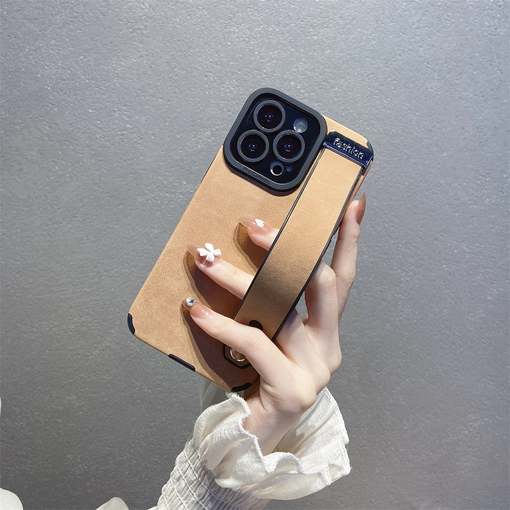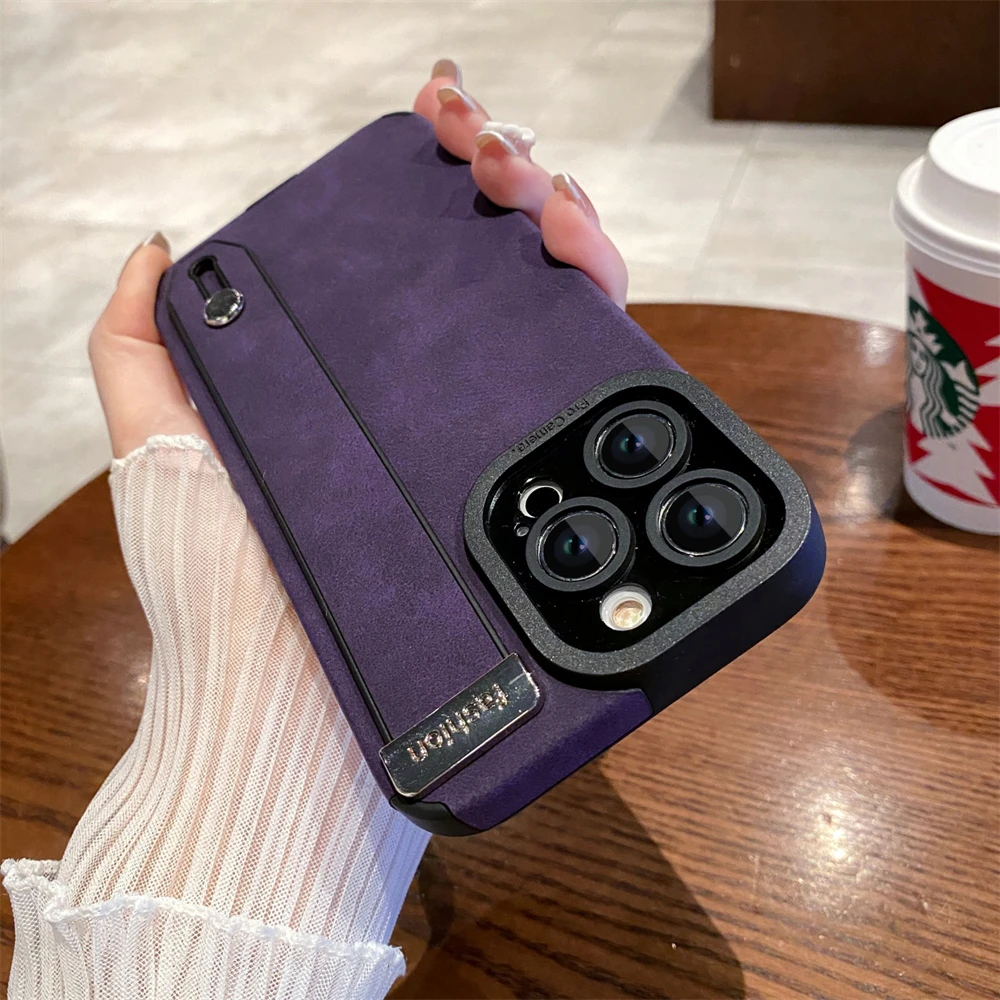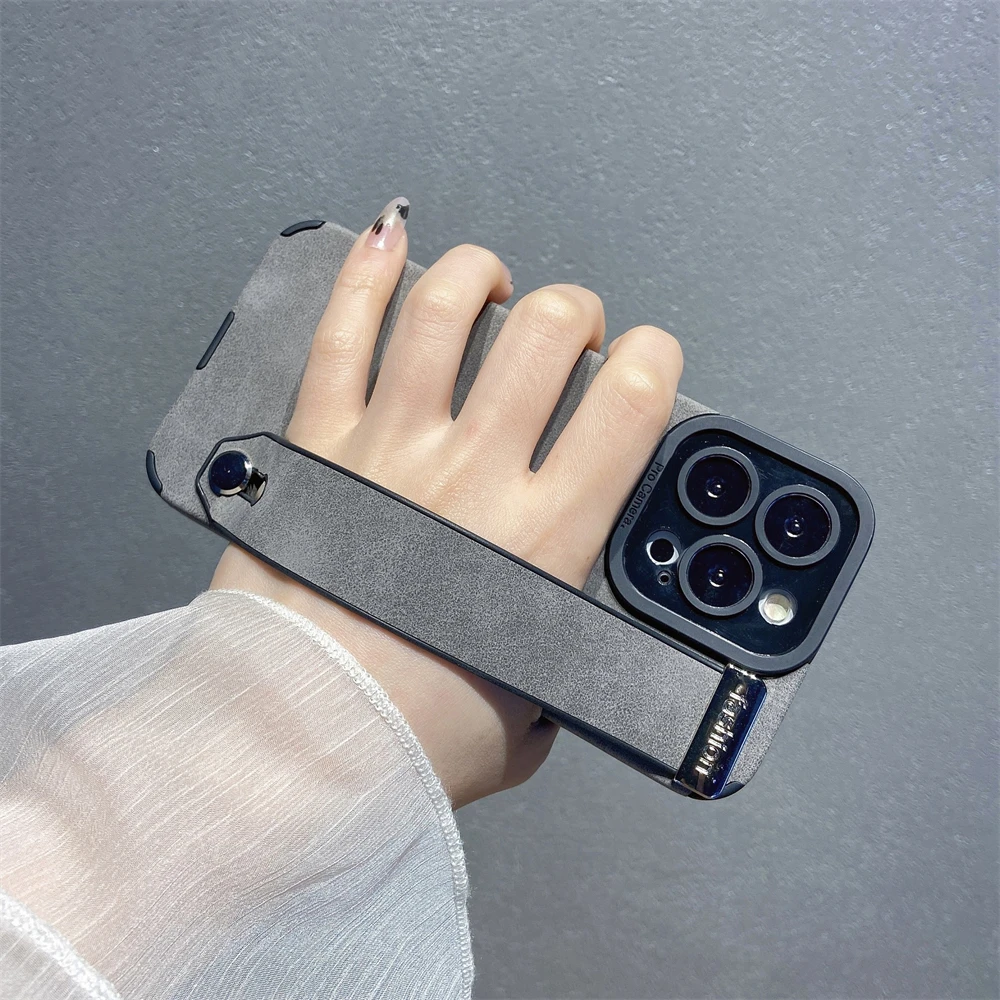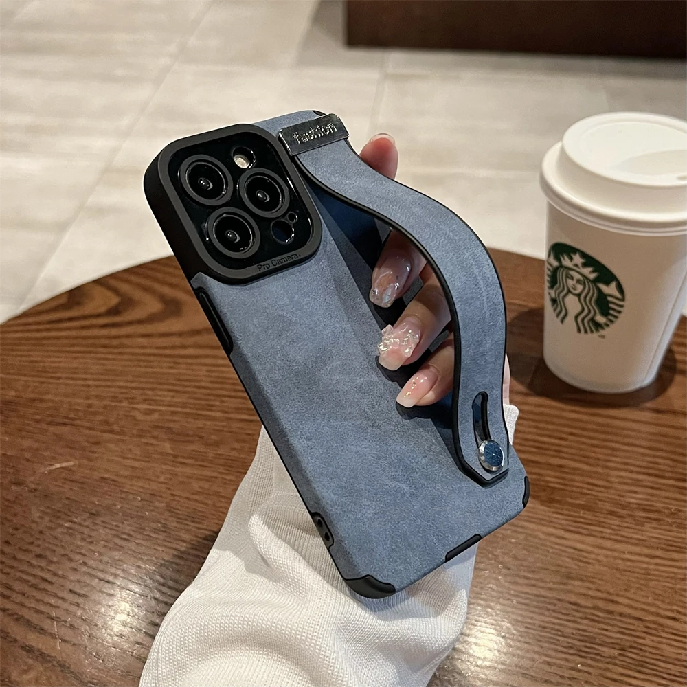 Wrist Strap Holder Luxury Suede Leather Case For iPhone 14 13 12 Pro Max