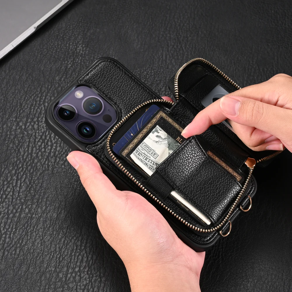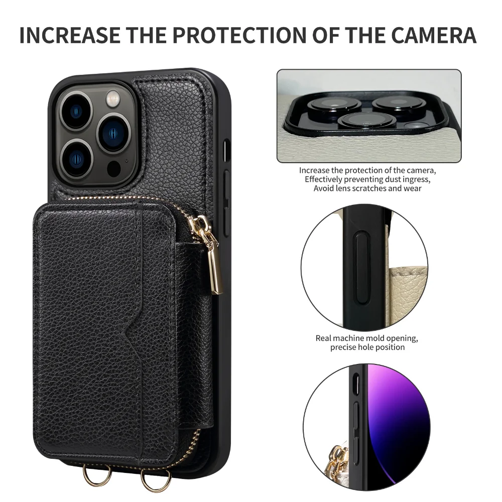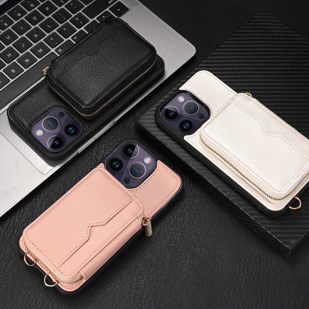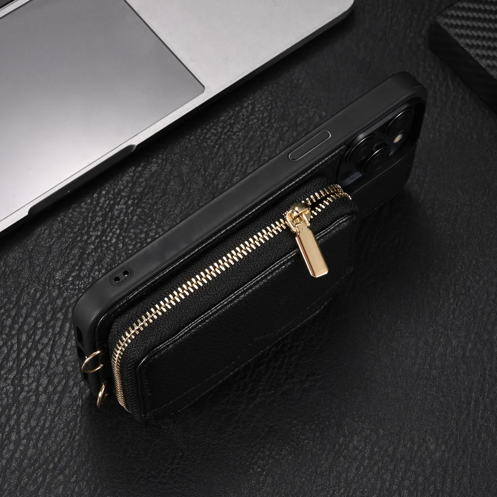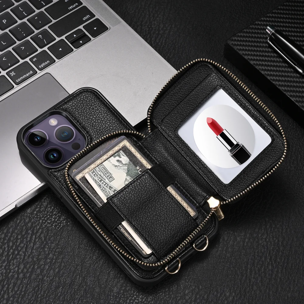 Zipper Crossbody Wallet Lanyard Card Slot Holder Leather Case for iPhone 14 13 series