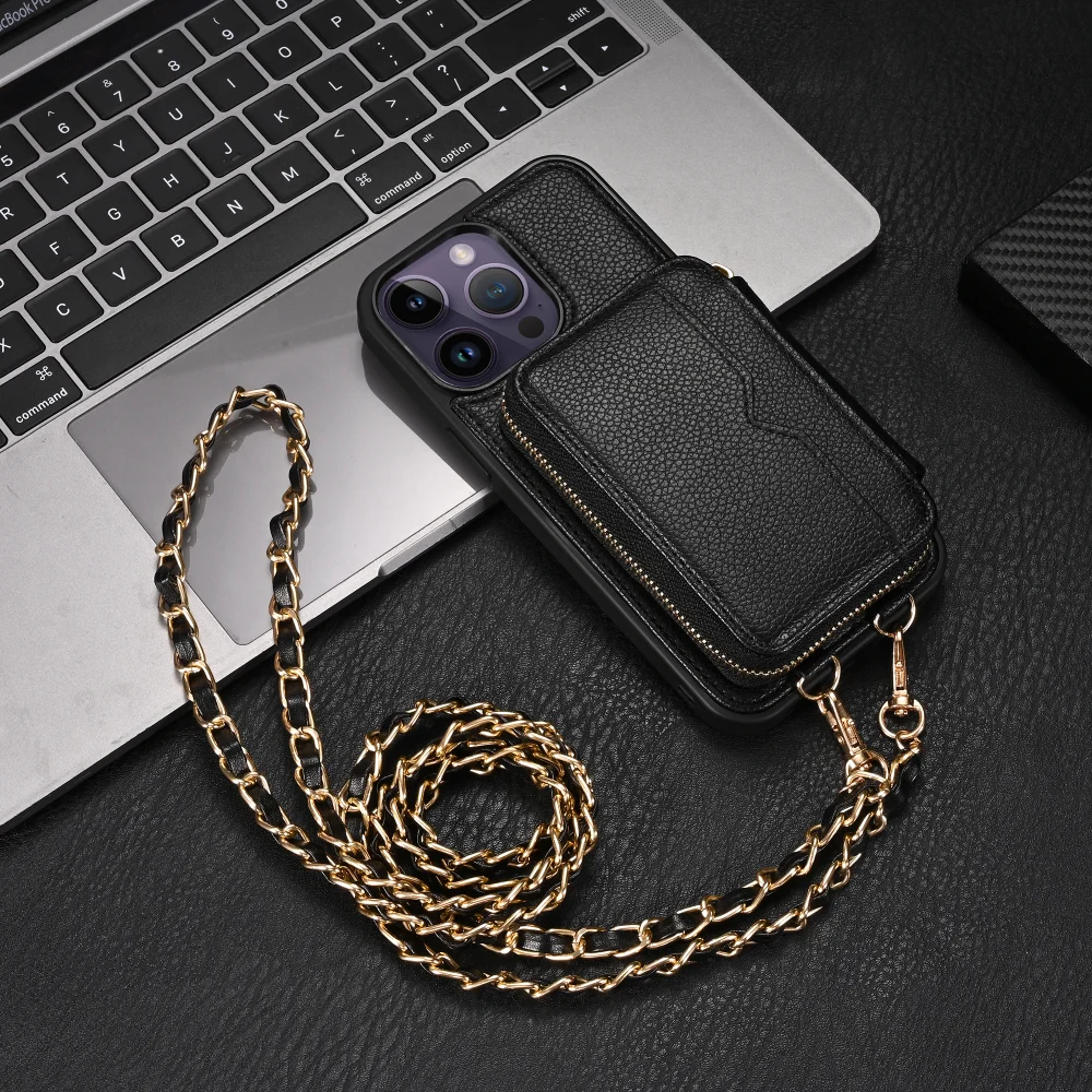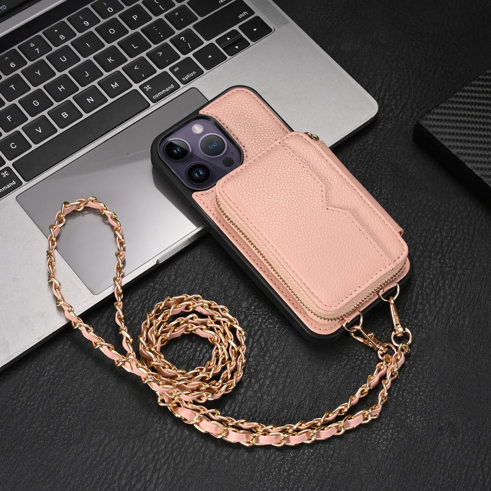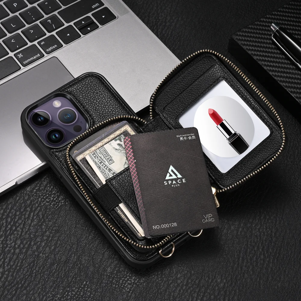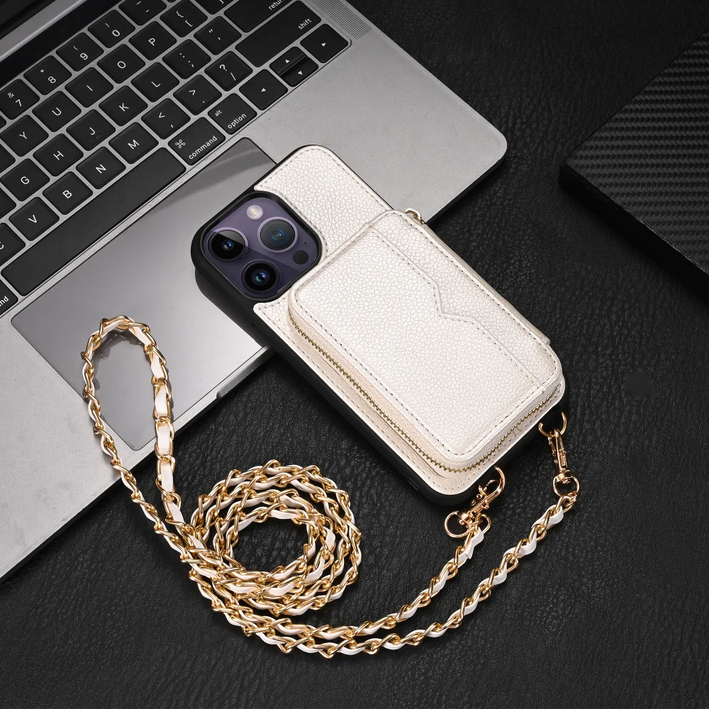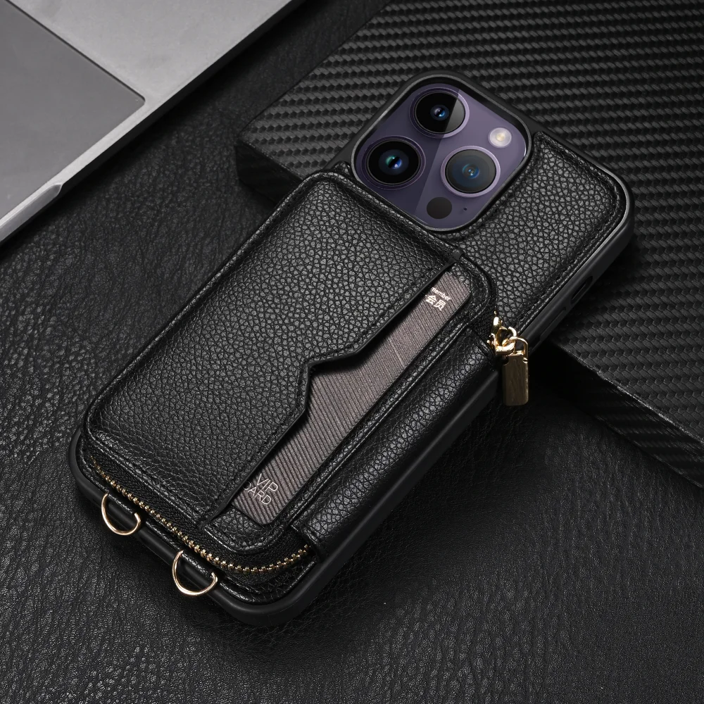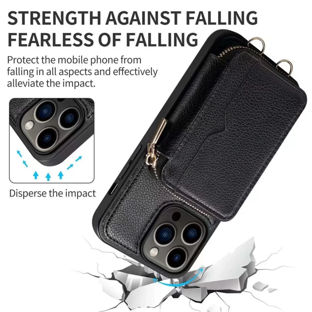 Zipper Crossbody Wallet Lanyard Card Slot Holder Leather Case for iPhone 14 13 series