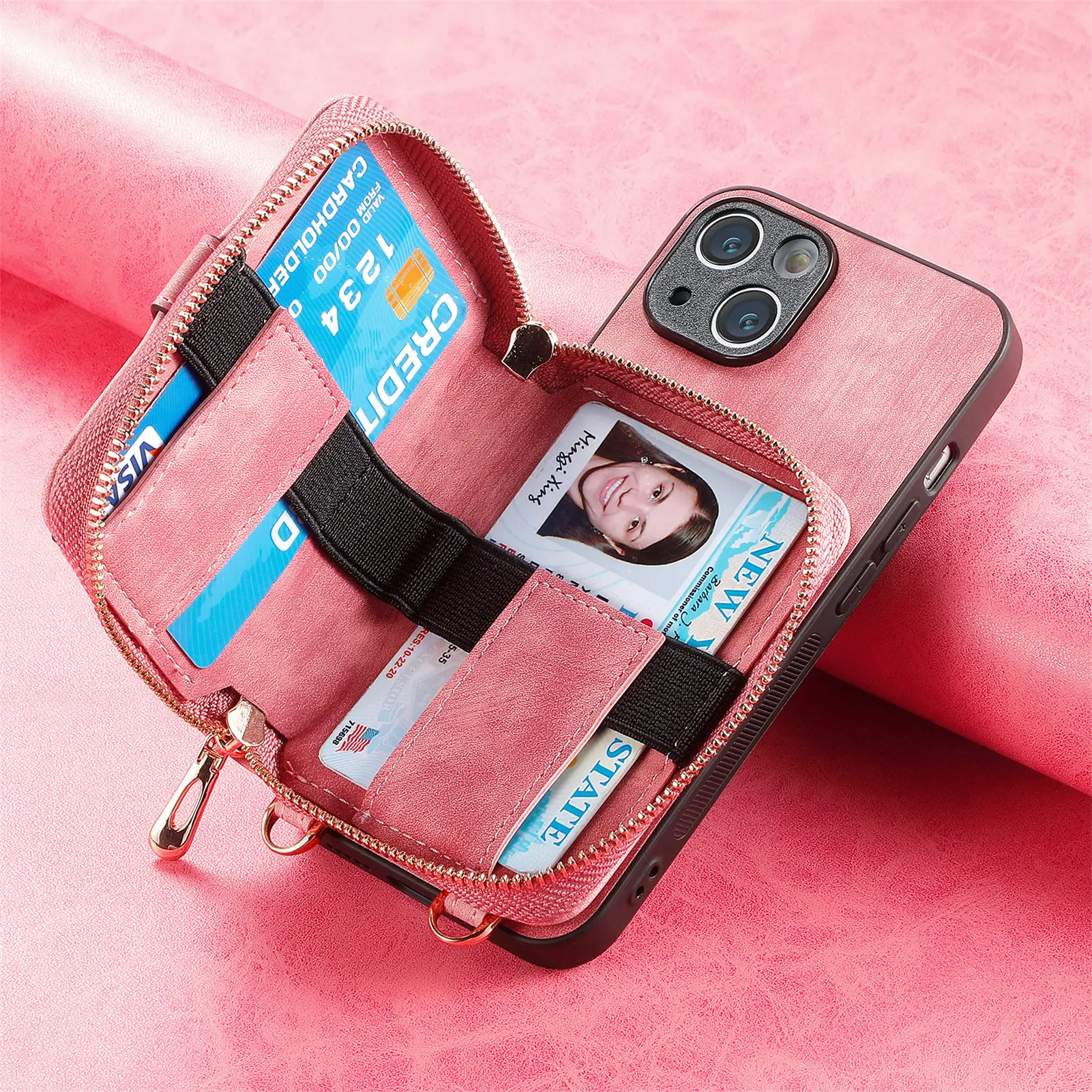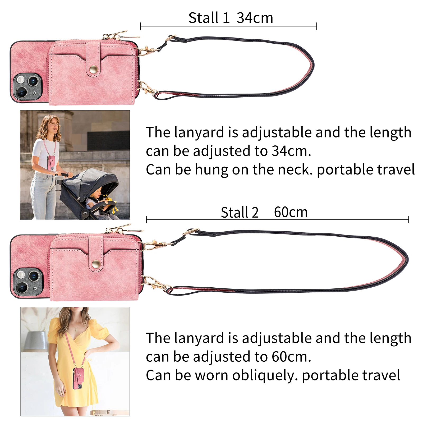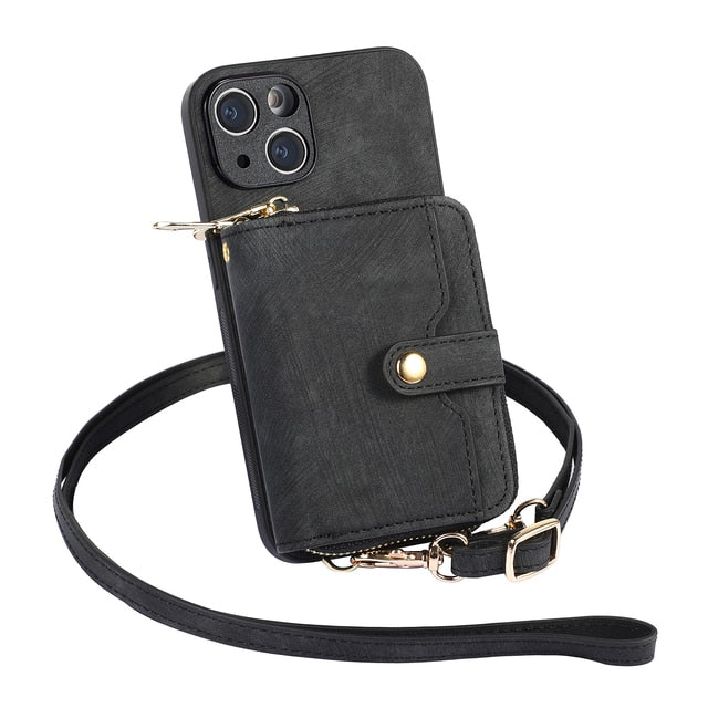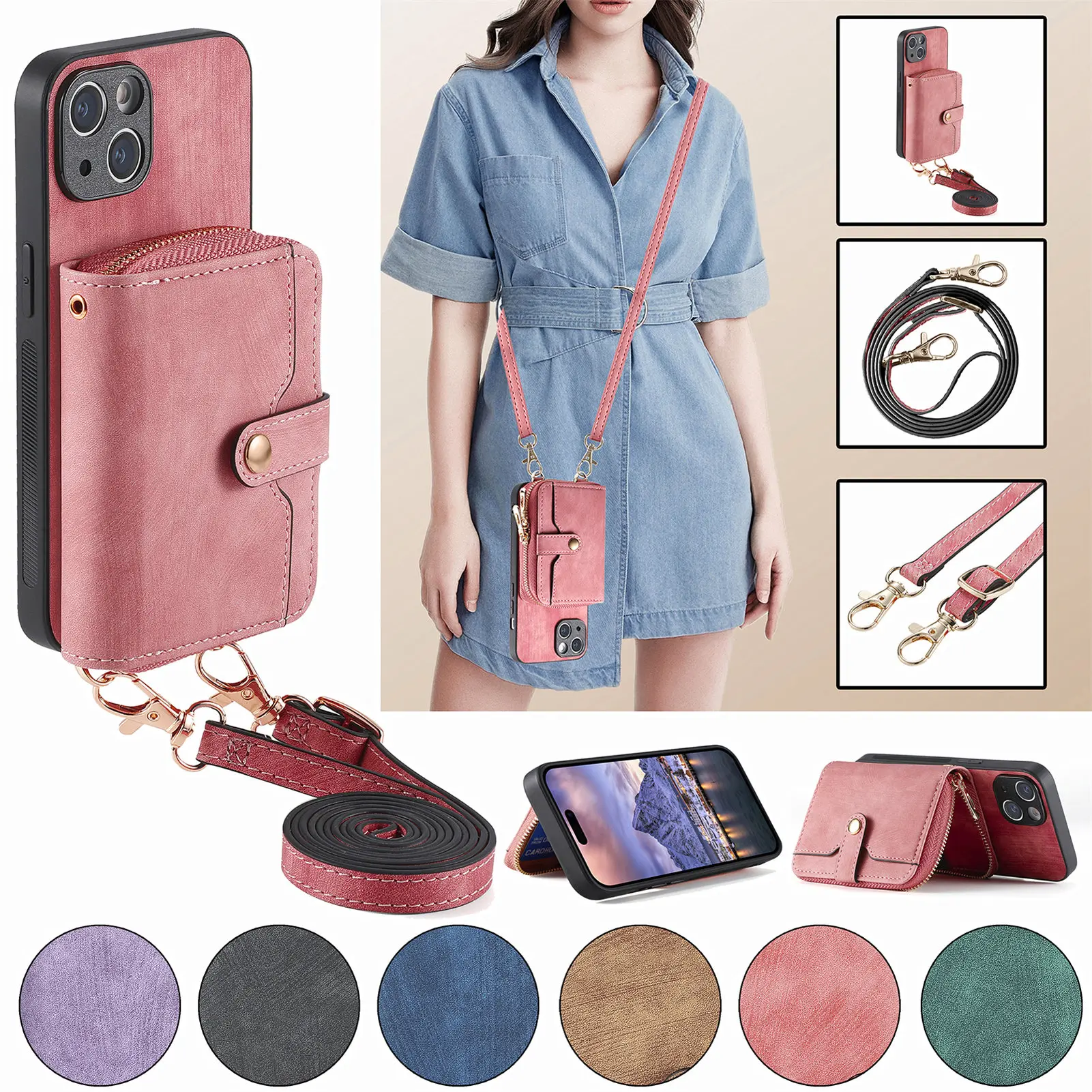 Zipper Wallet Leather Crossbody Lanyard Card Holder Case For iPhone 14 13 12 series
