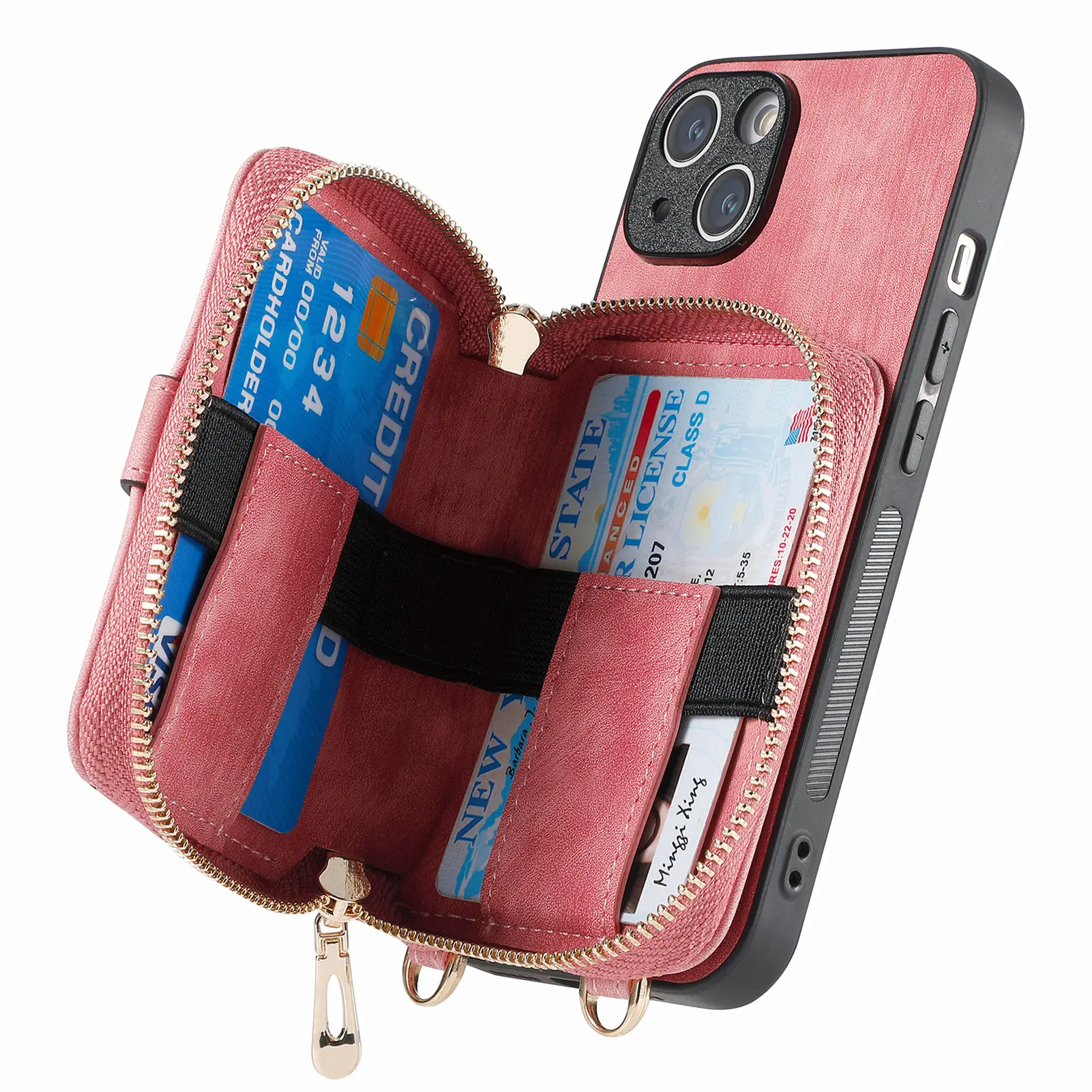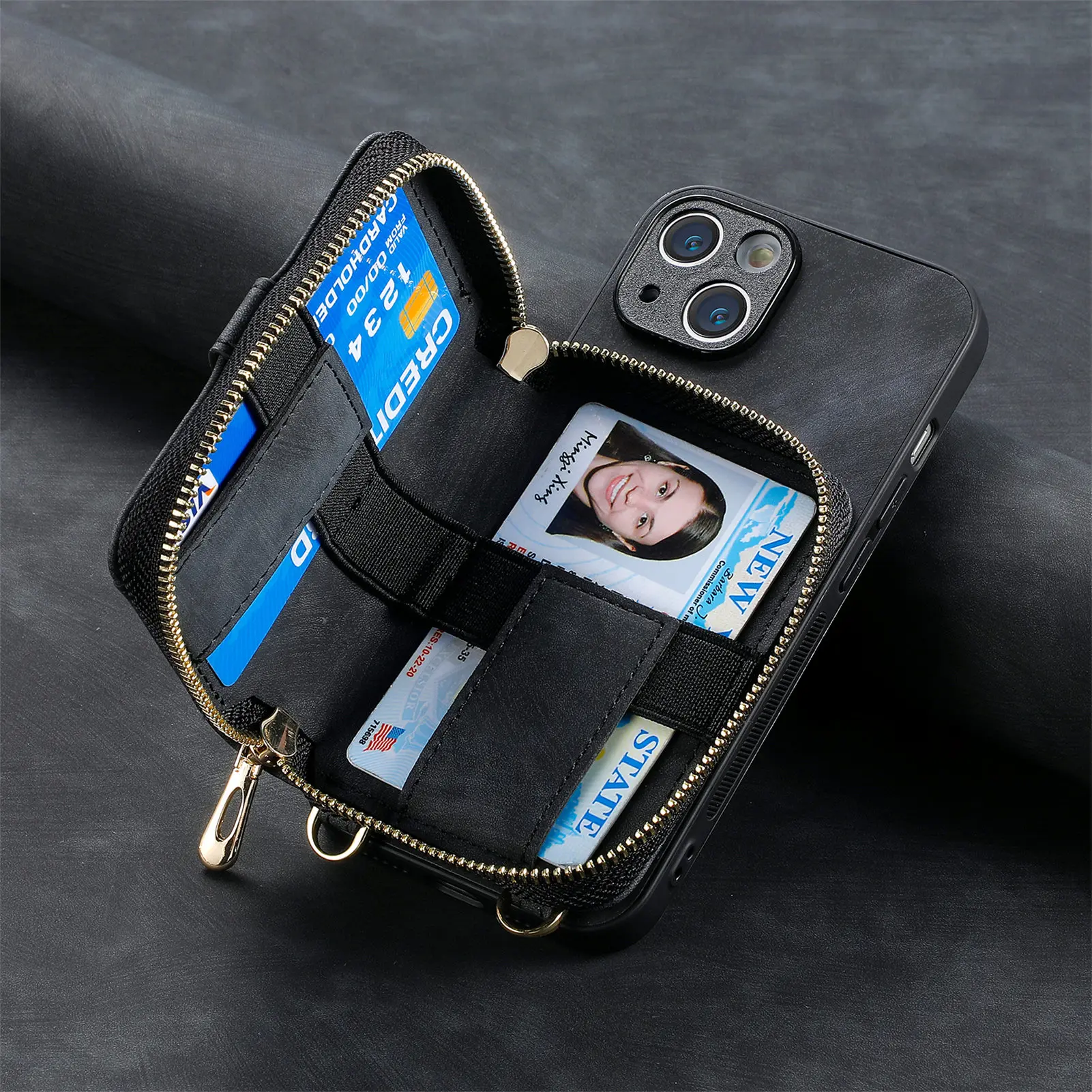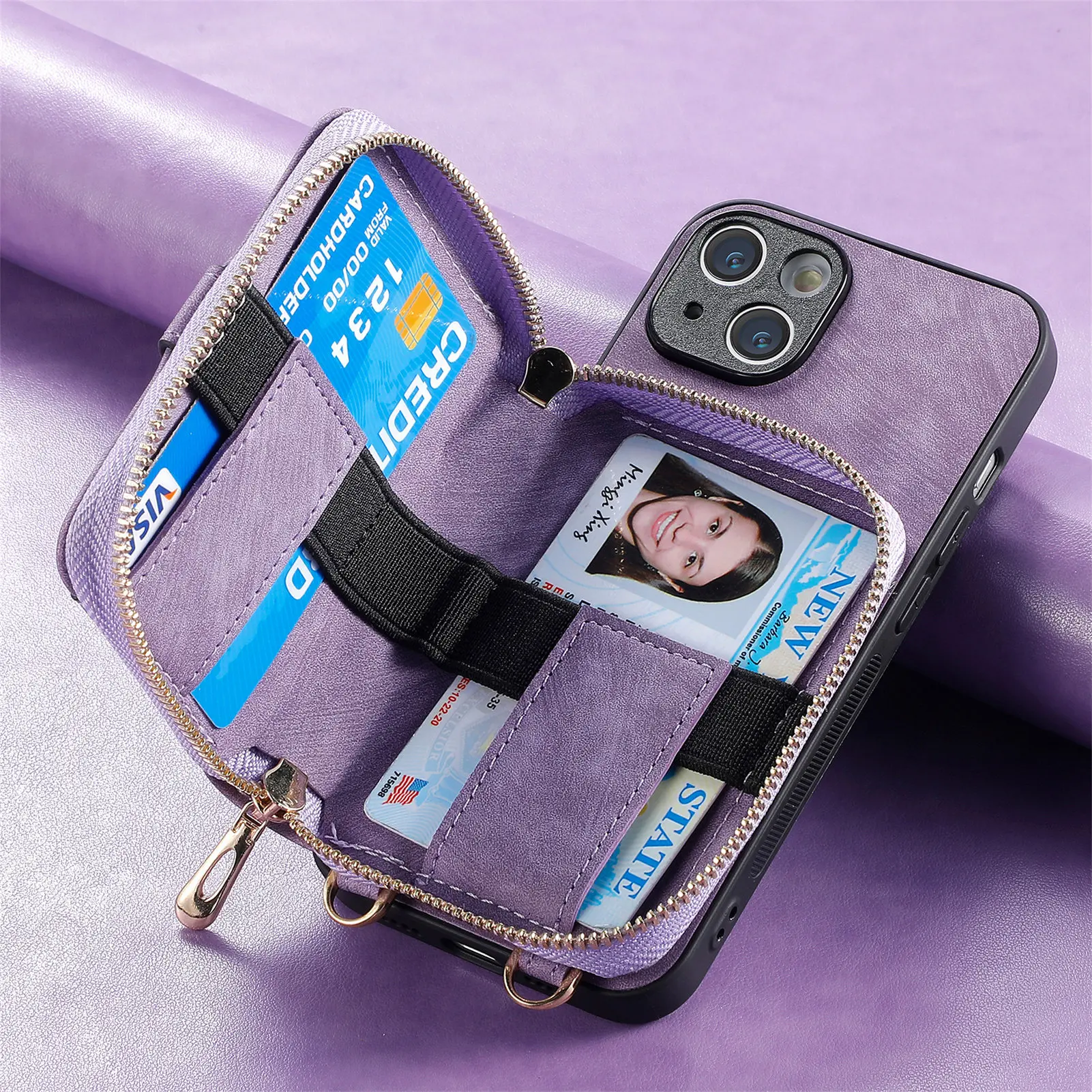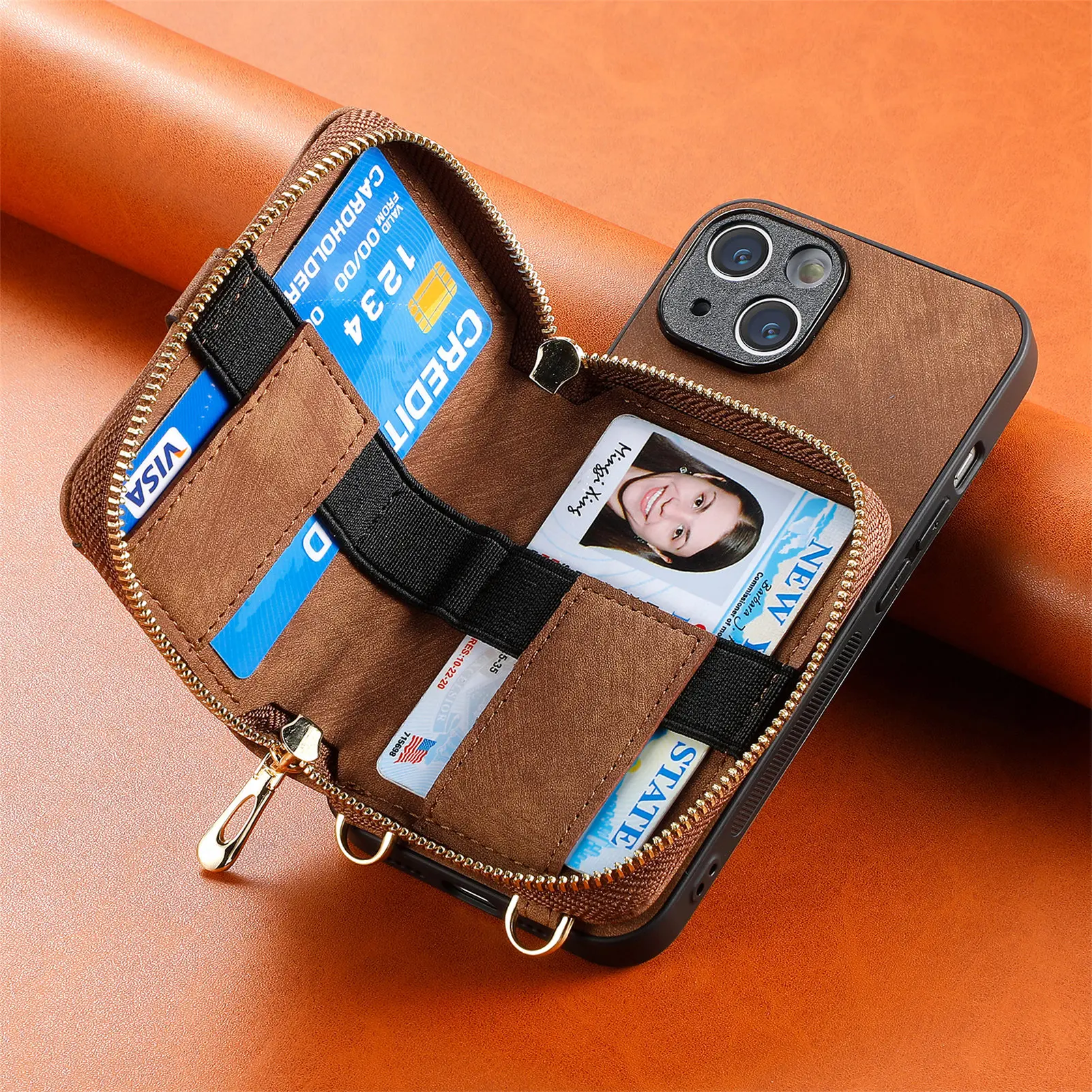 Zipper Wallet Leather Crossbody Lanyard Card Holder Case For iPhone 14 13 12 series