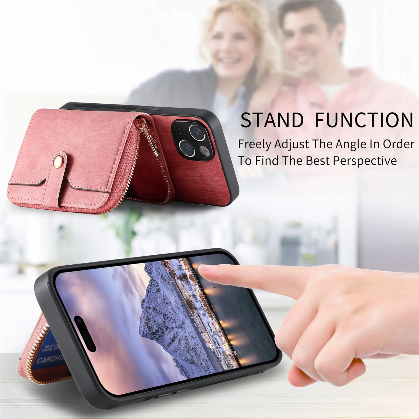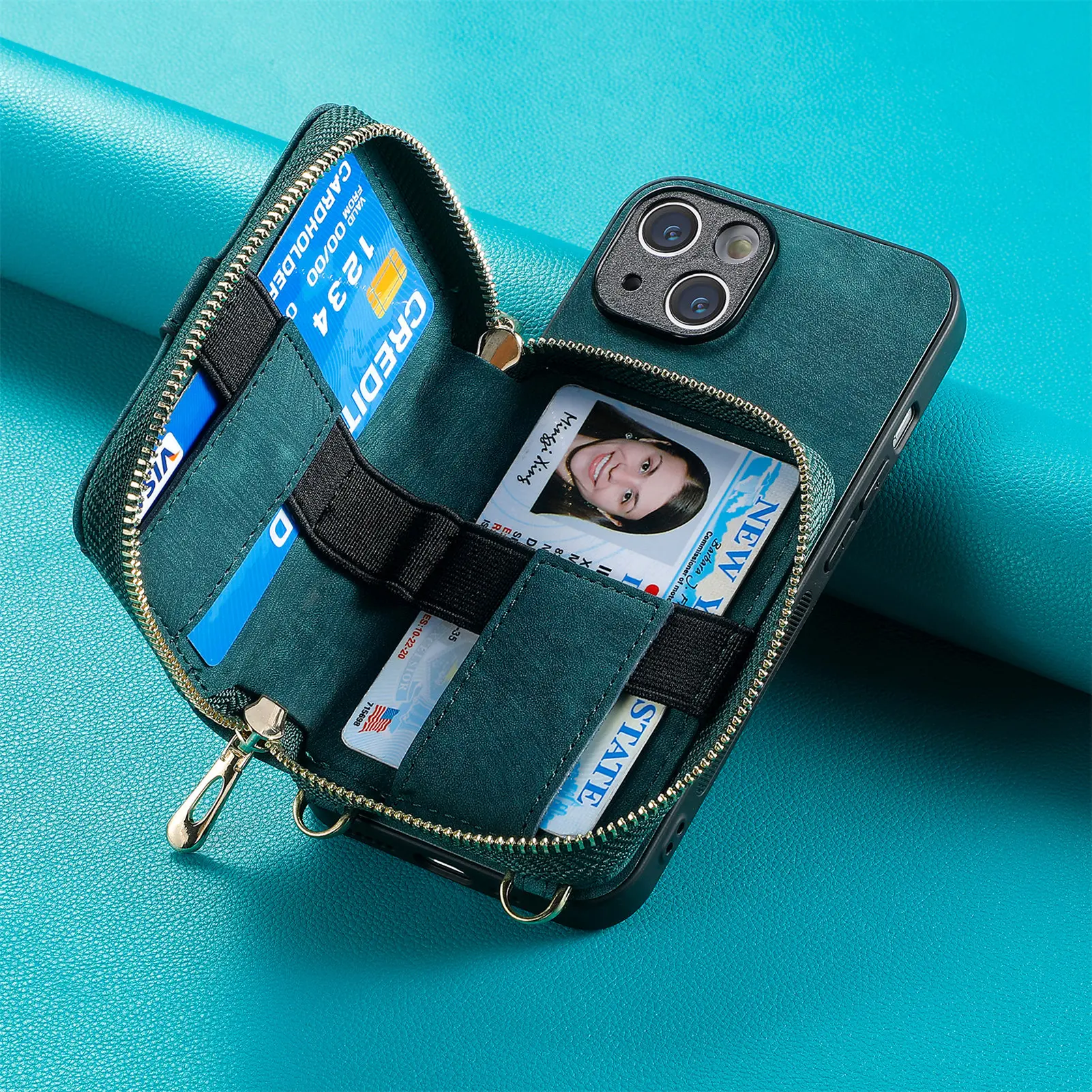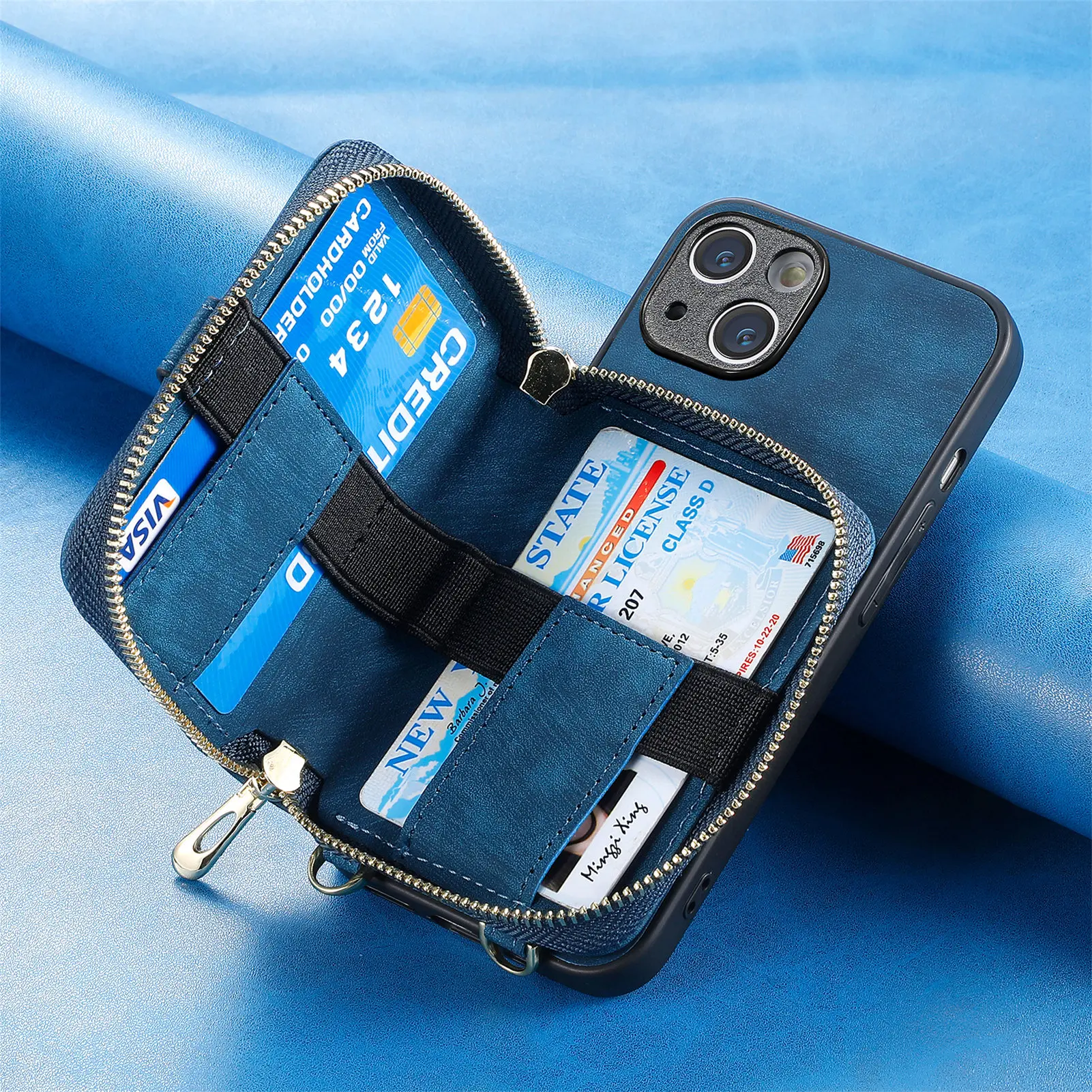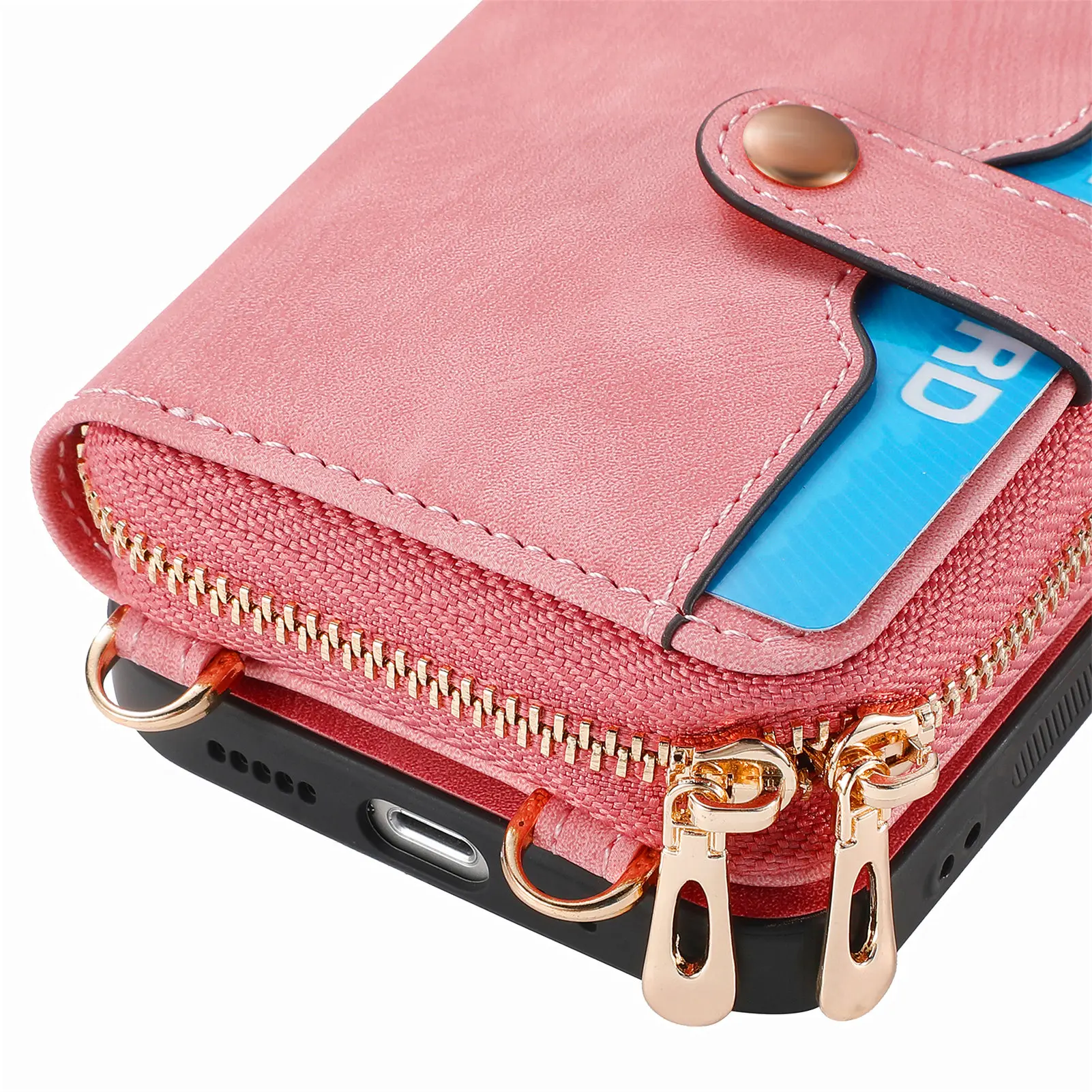 Zipper Wallet Leather Crossbody Lanyard Card Holder Case For iPhone 14 13 12 series