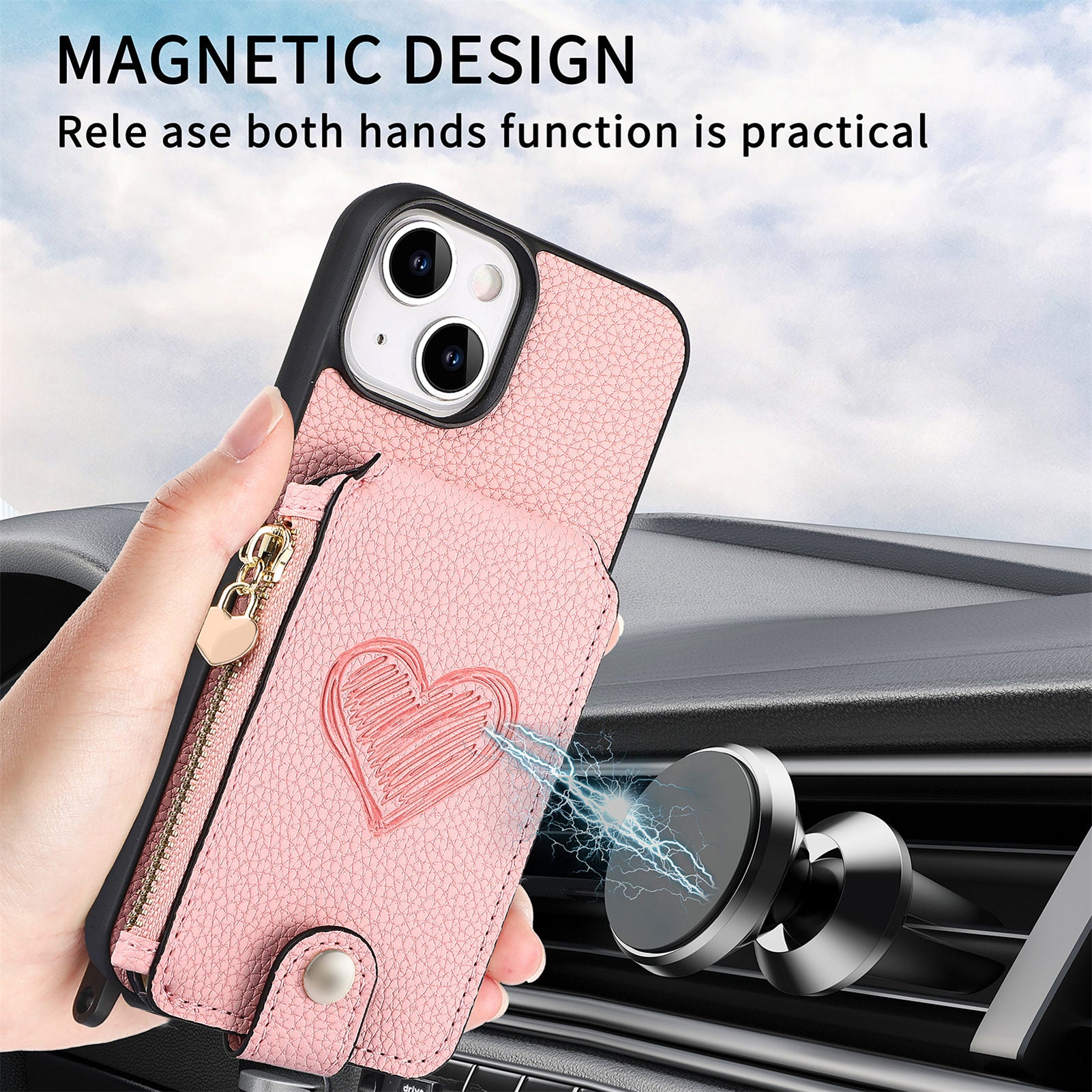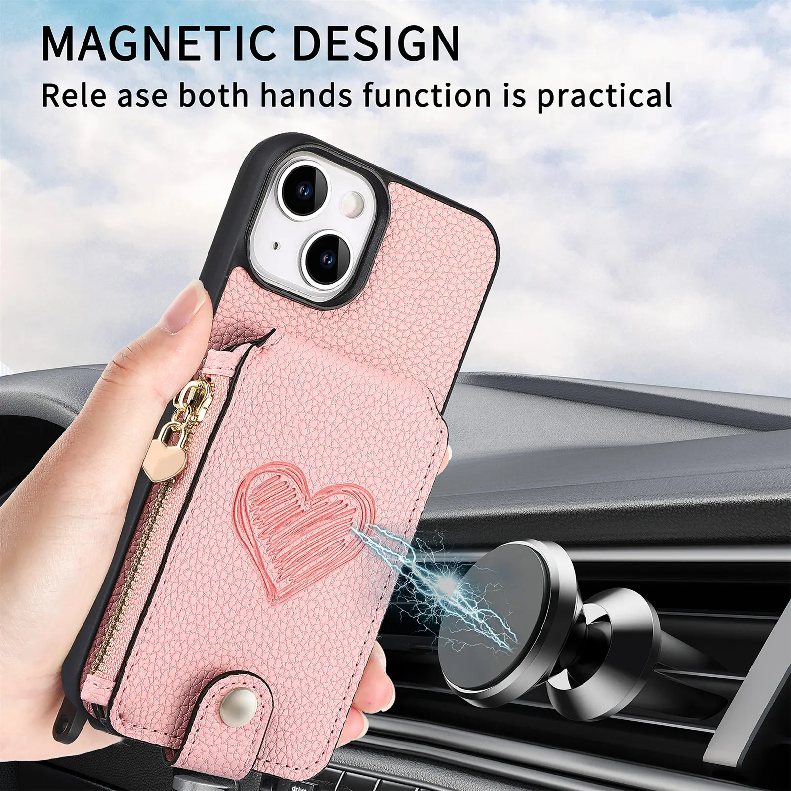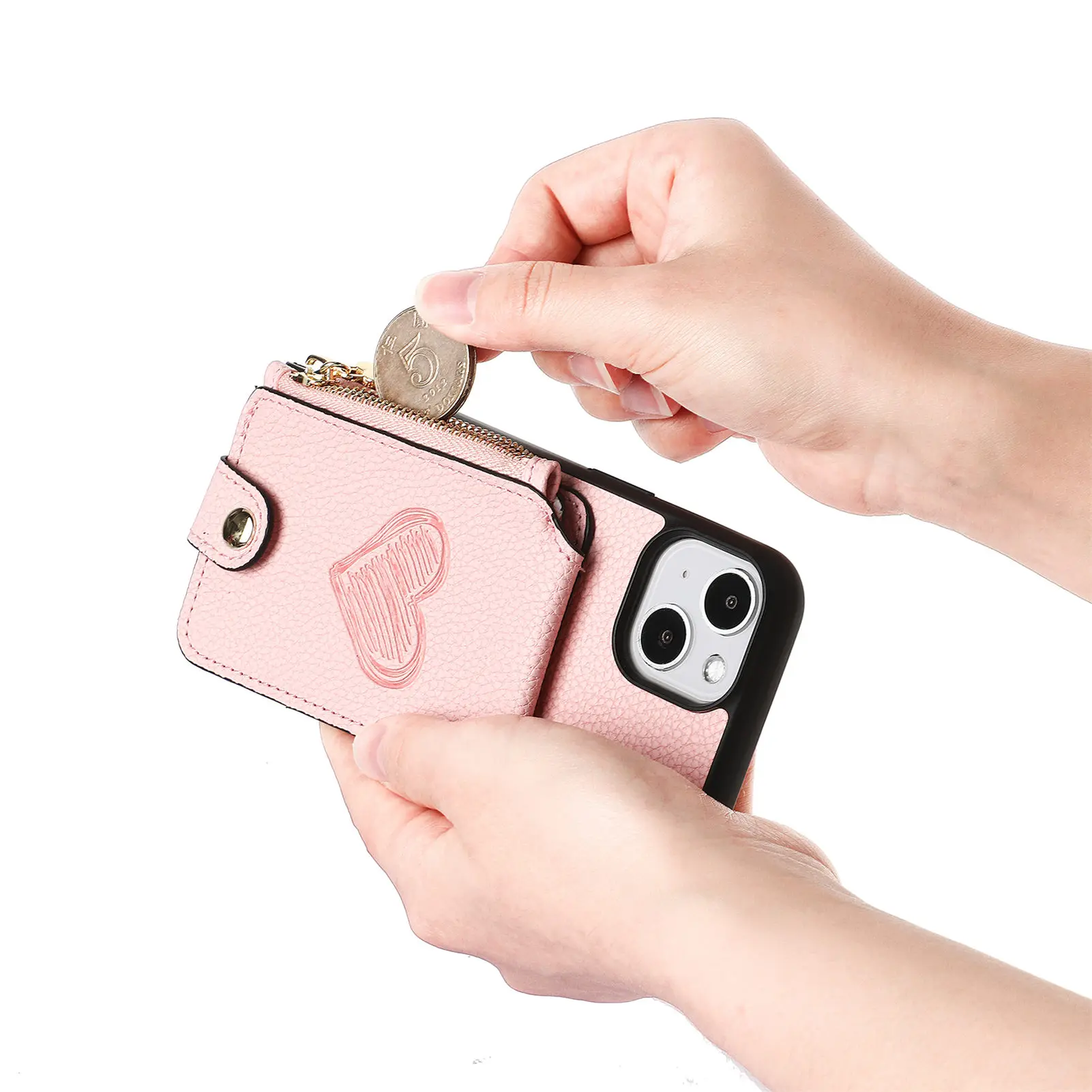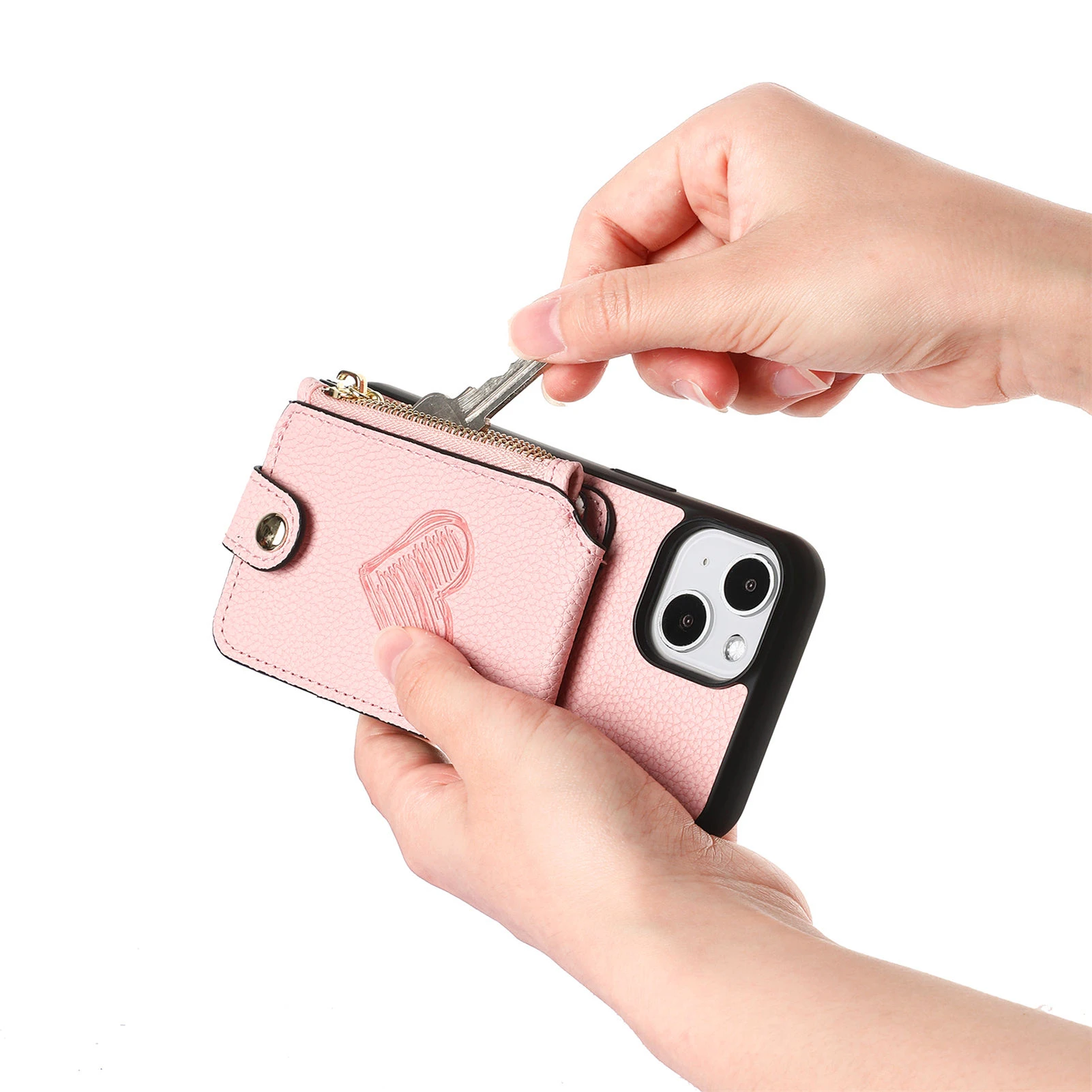 Zipper Wallet Vertical Cards Slot Leather Case With Shoulder Strap For iPhone 14 13 12 series