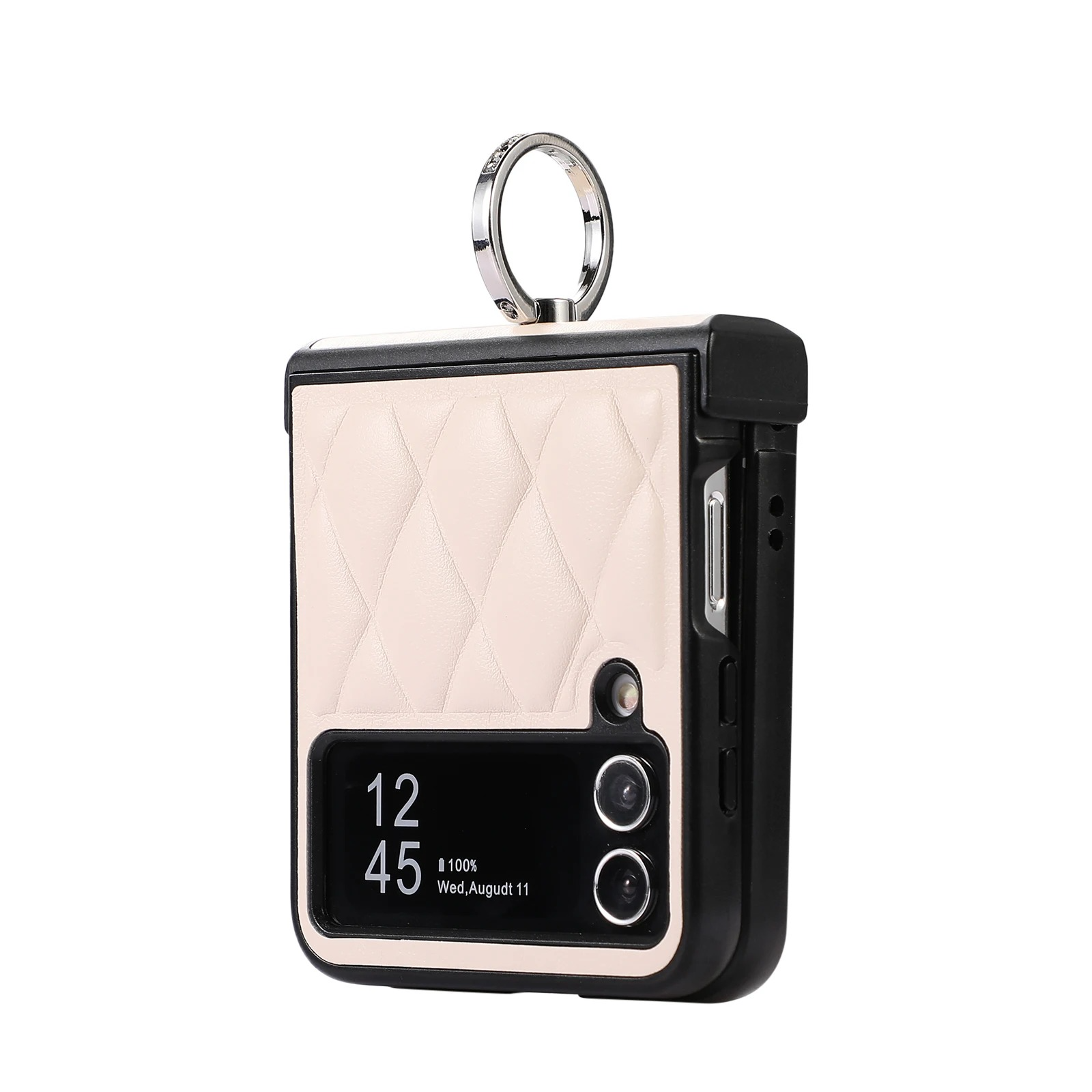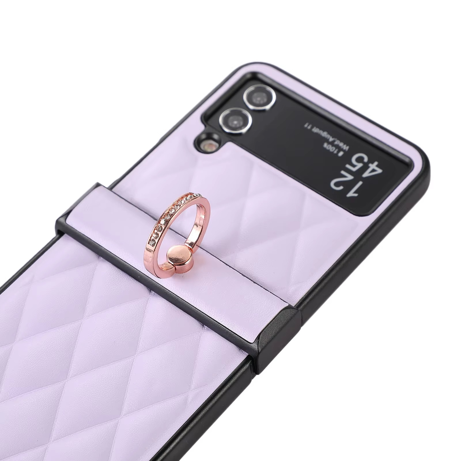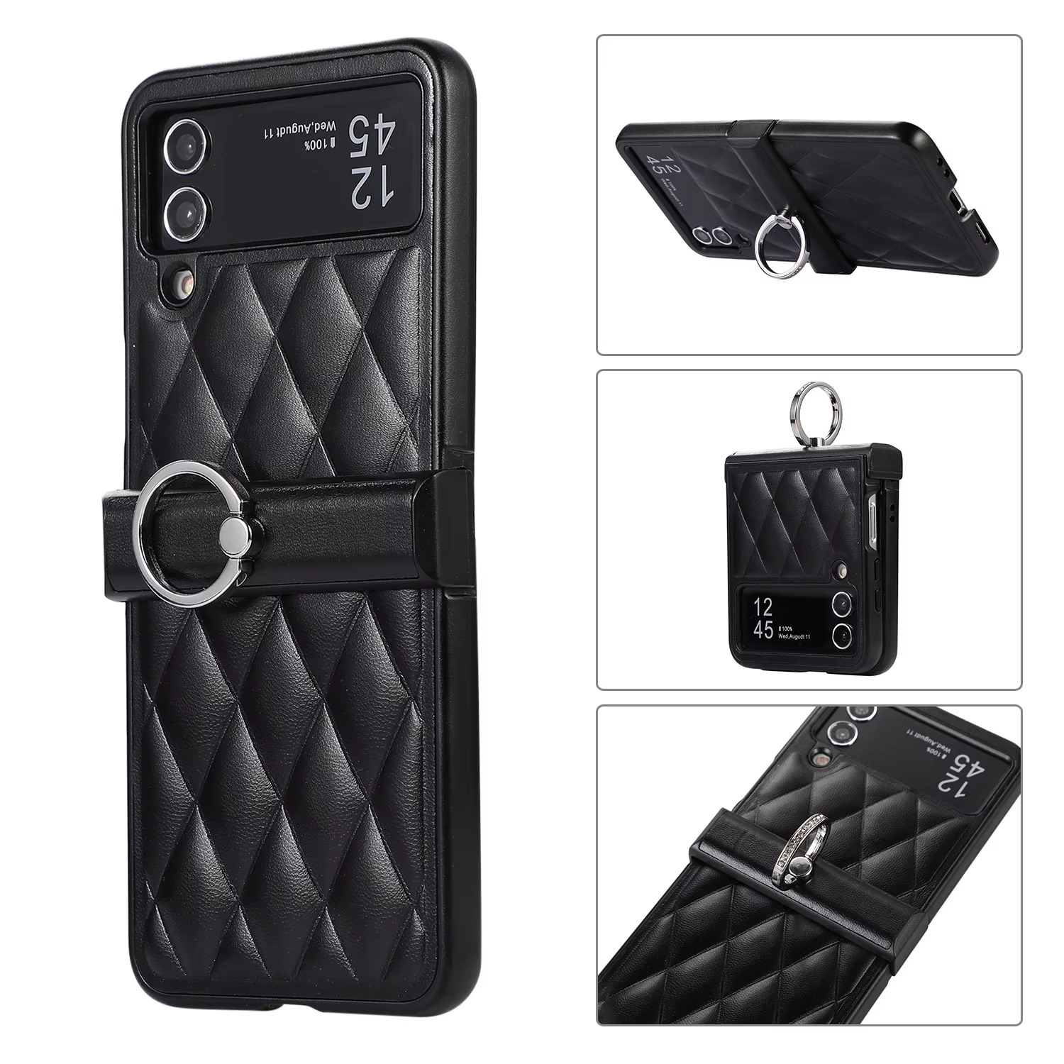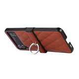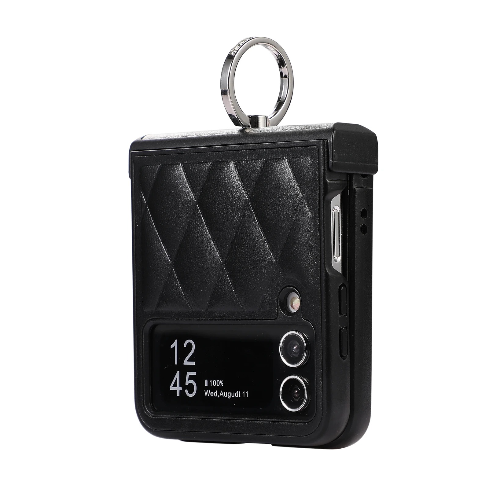 For Samsung Galaxy Z Flip 3 4 5 6 Plain Leather Folding Phone Case with Ring Stand