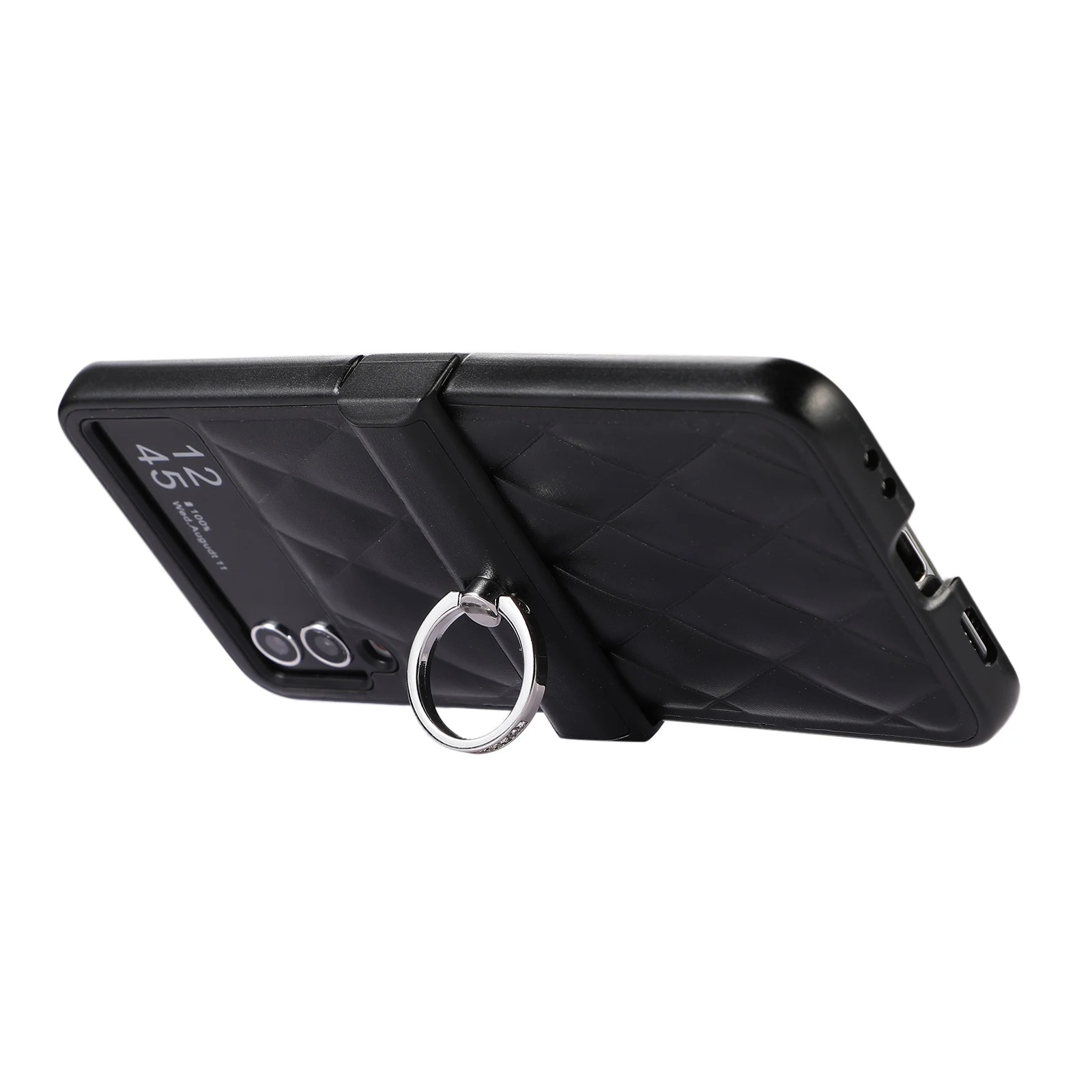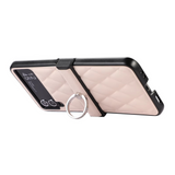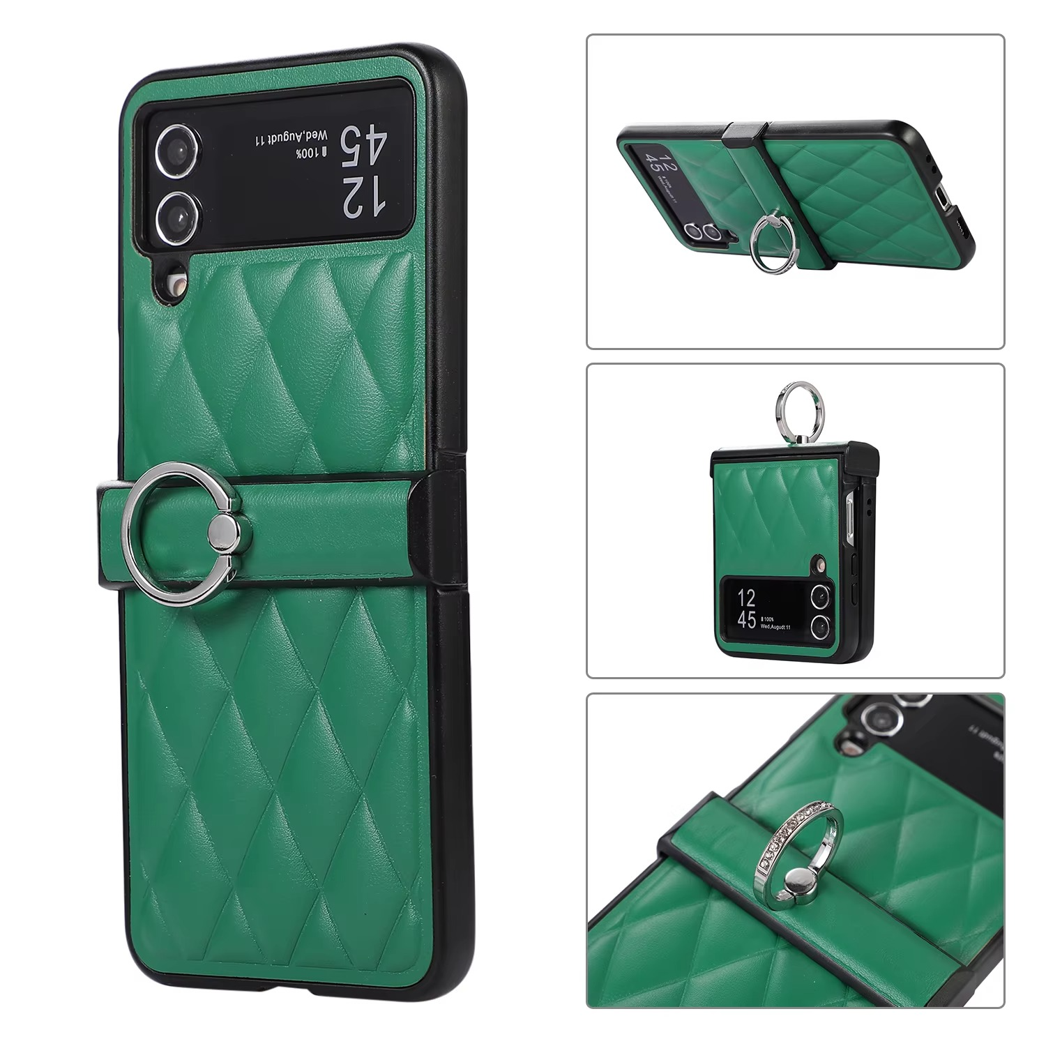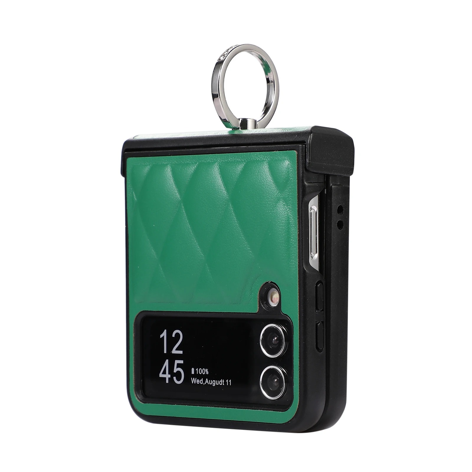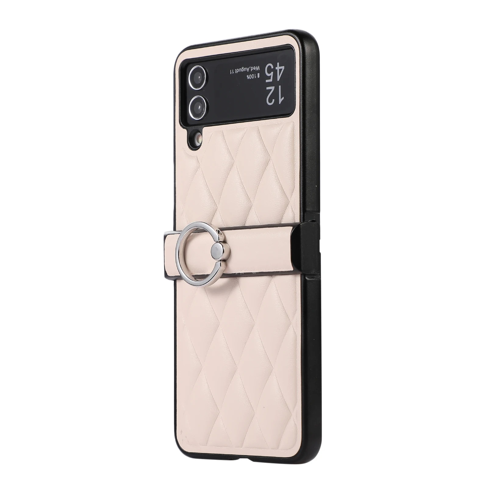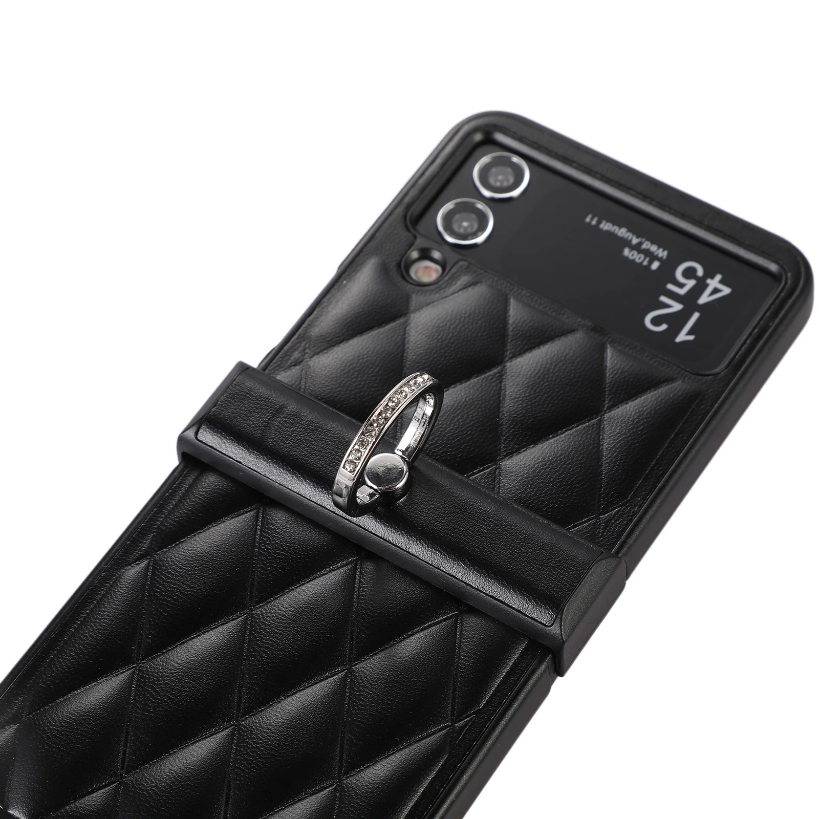 For Samsung Galaxy Z Flip 3 4 5 6 Plain Leather Folding Phone Case with Ring Stand