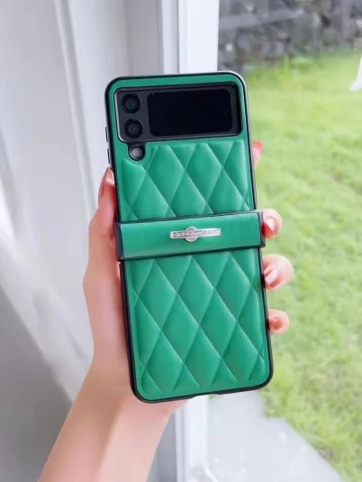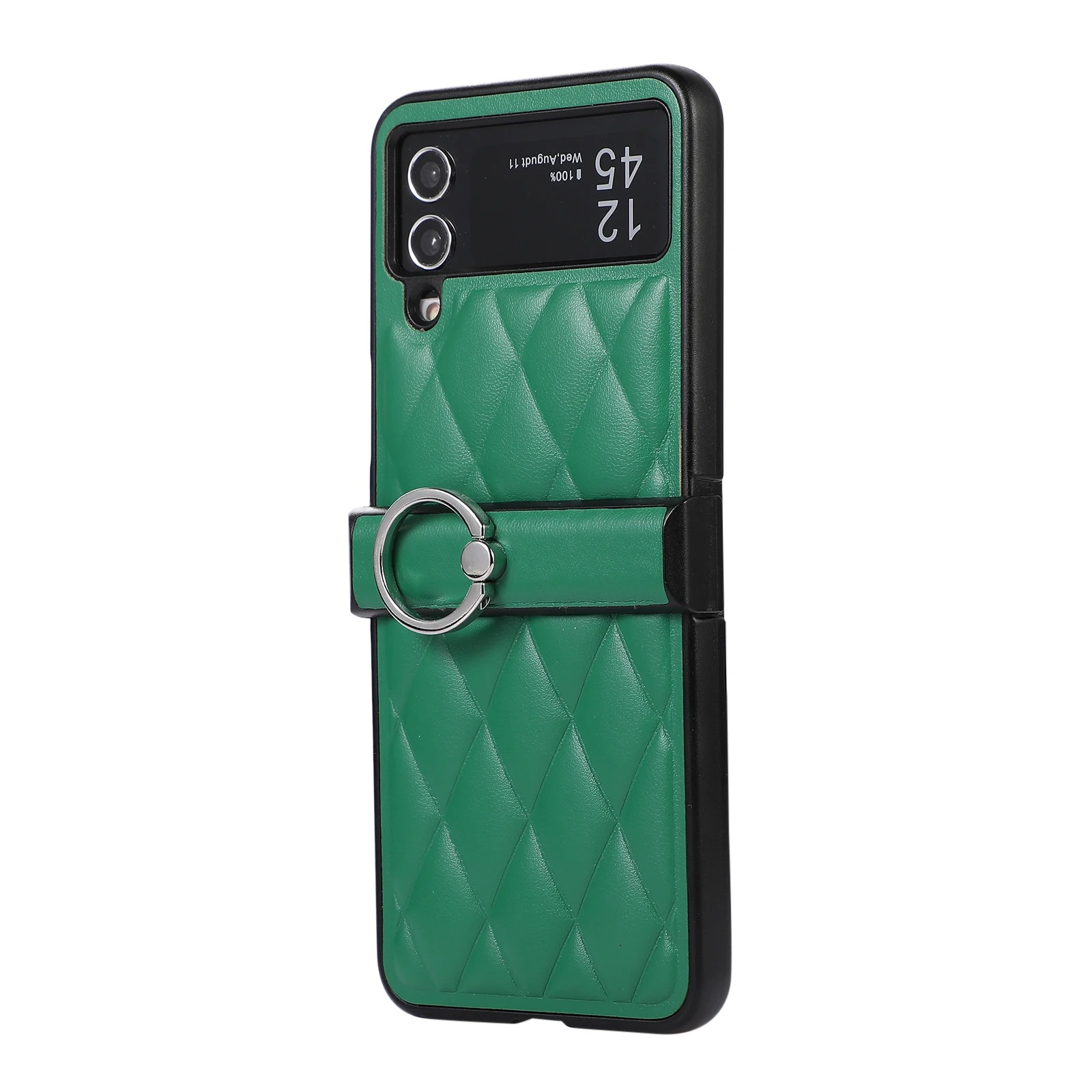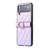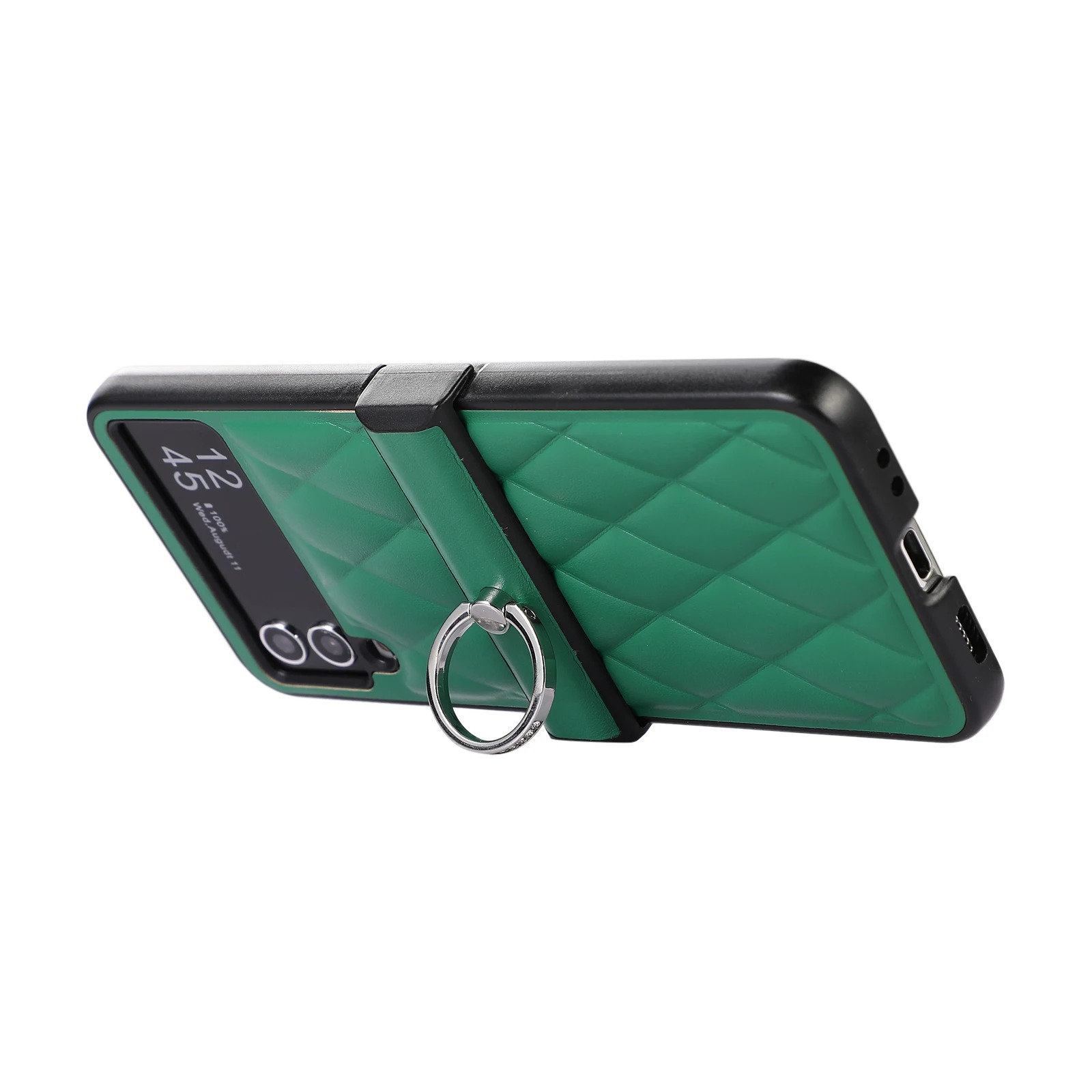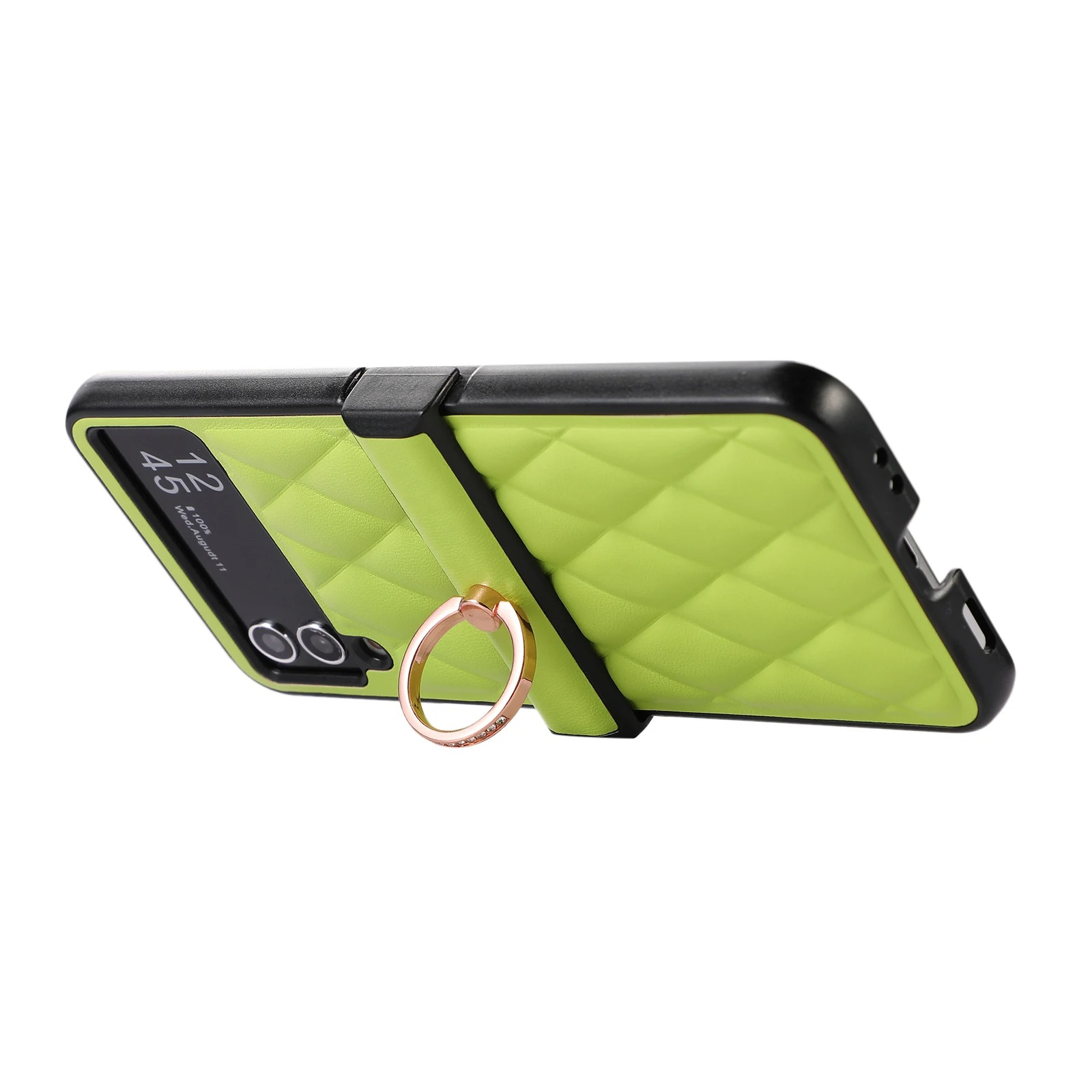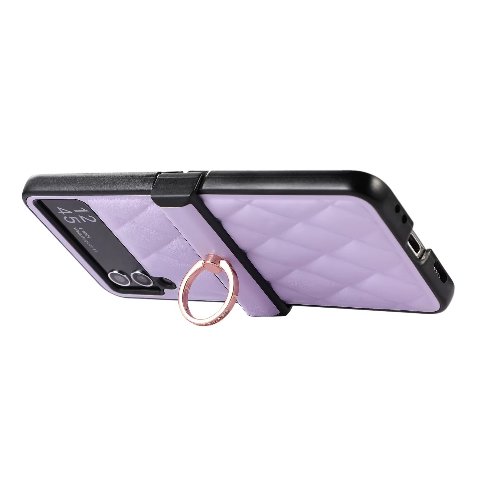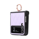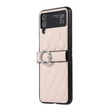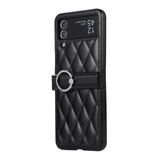 For Samsung Galaxy Z Flip 3 4 5 6 Plain Leather Folding Phone Case with Ring Stand