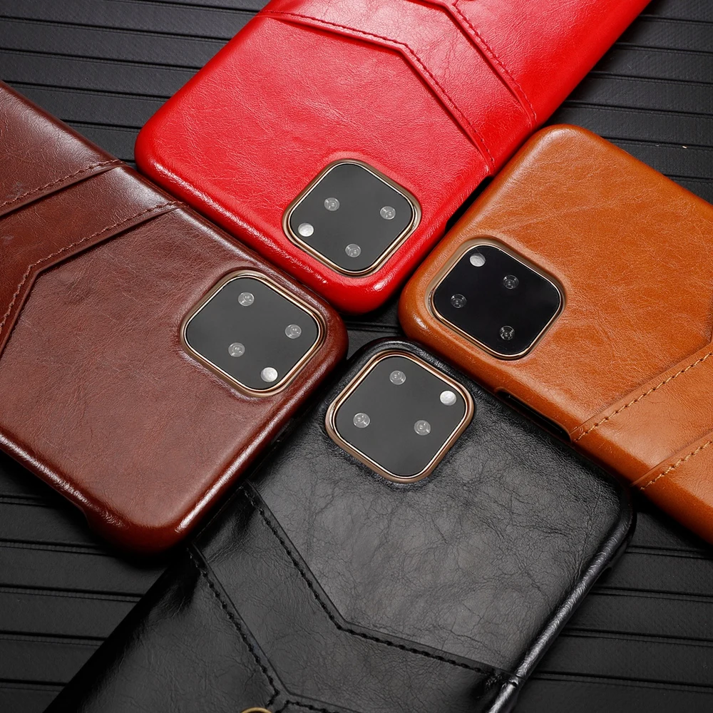 Retro PU Leather Case With Card Pocket Back Cover For iPhone 11 Pro Max