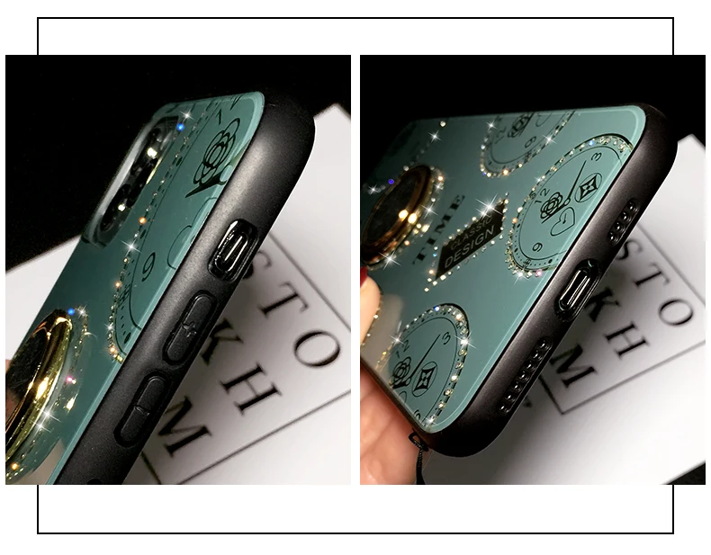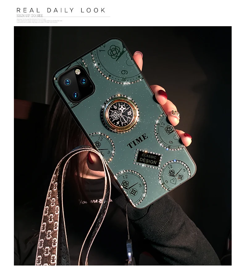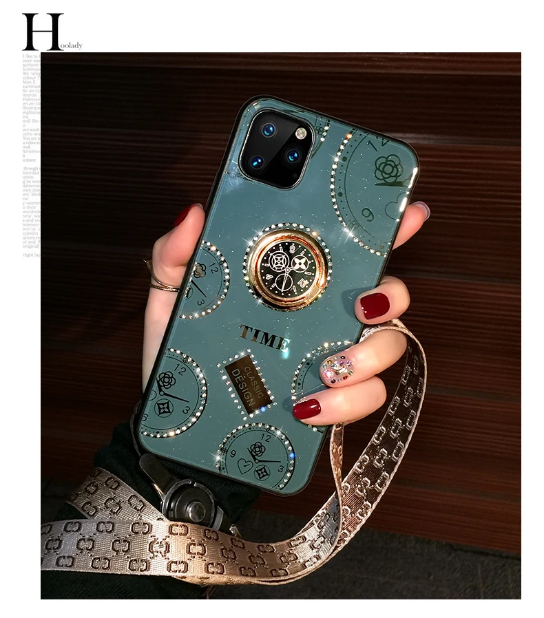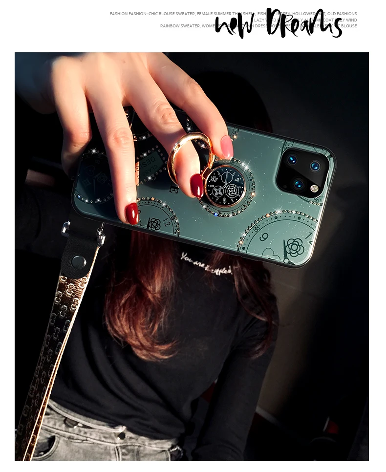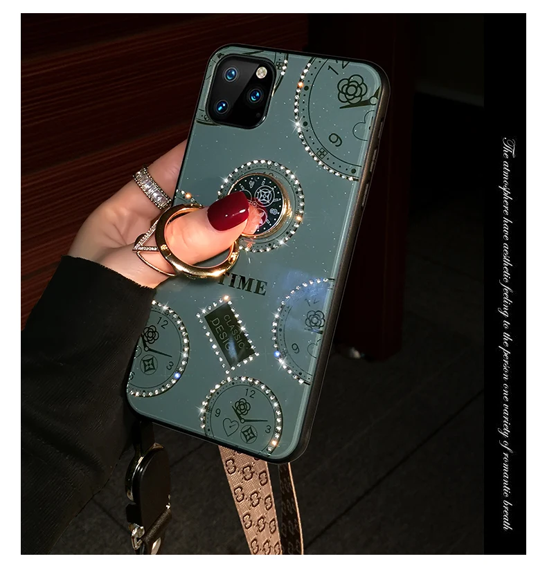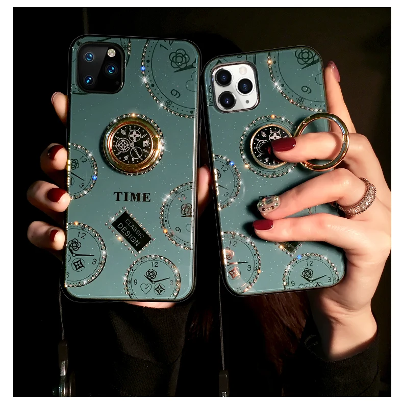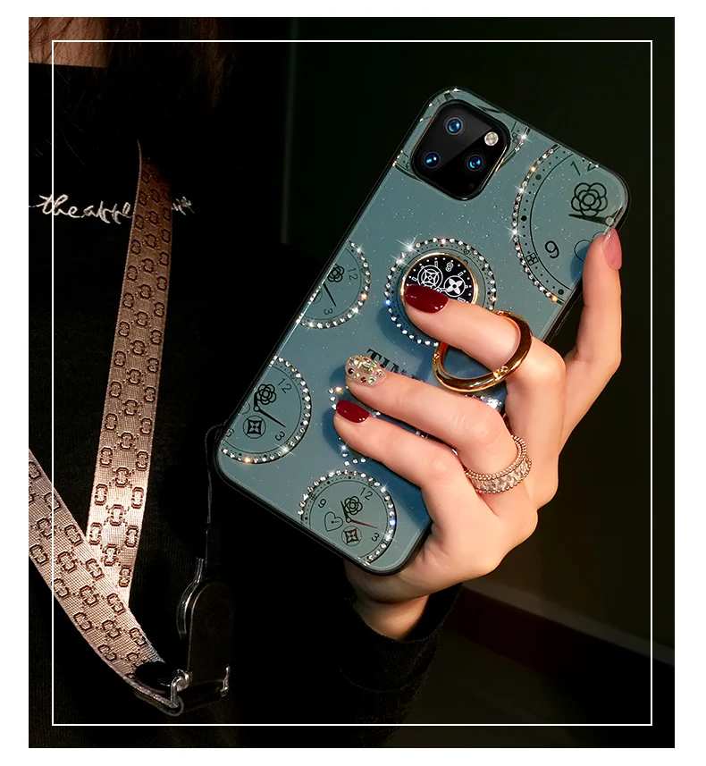 Shell Fashionable Women's Dark Green Clock Ring Net Red Diamond Case For Iphone11 Series