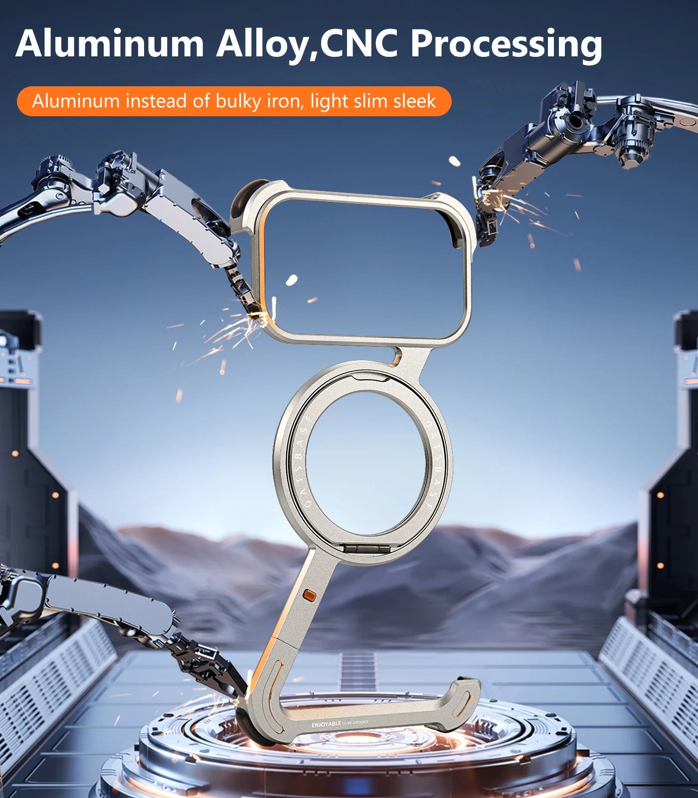 Z-Shape with 360° Rotatable Stand Wireless Charging Protective Bumper Metal Phone Case for iPhone 17 Series