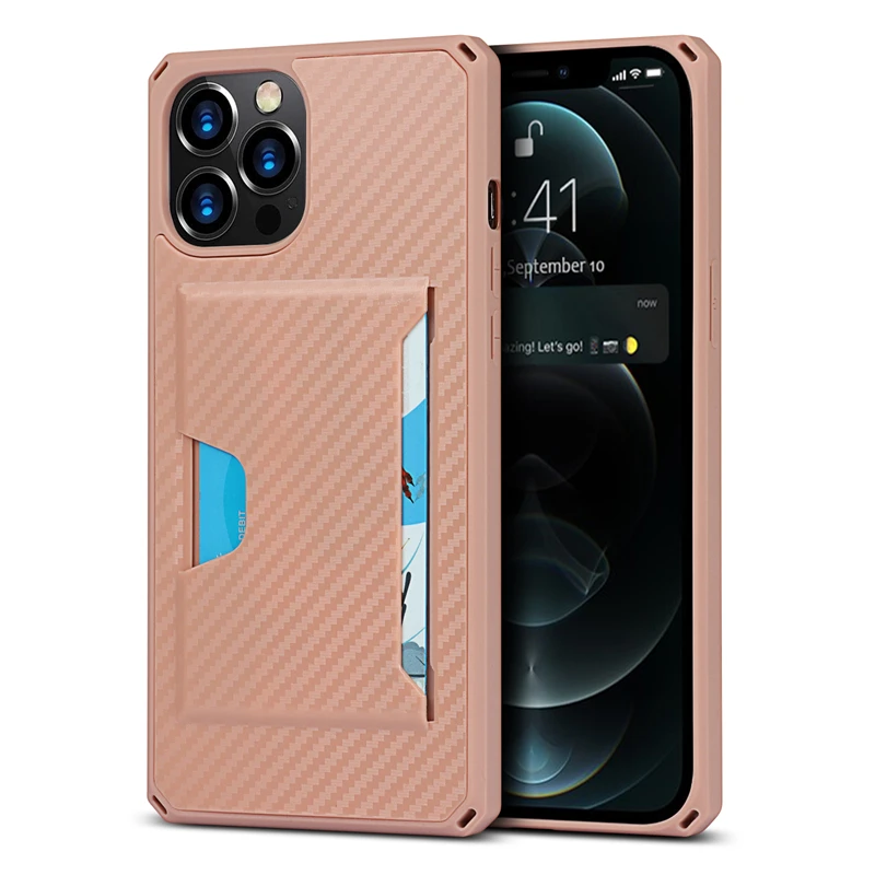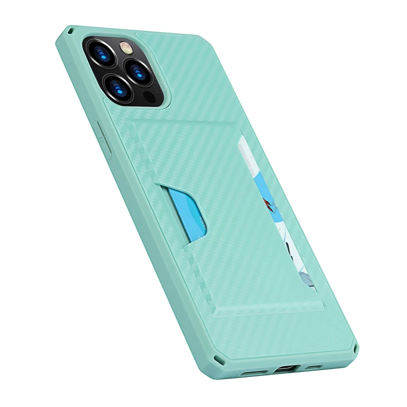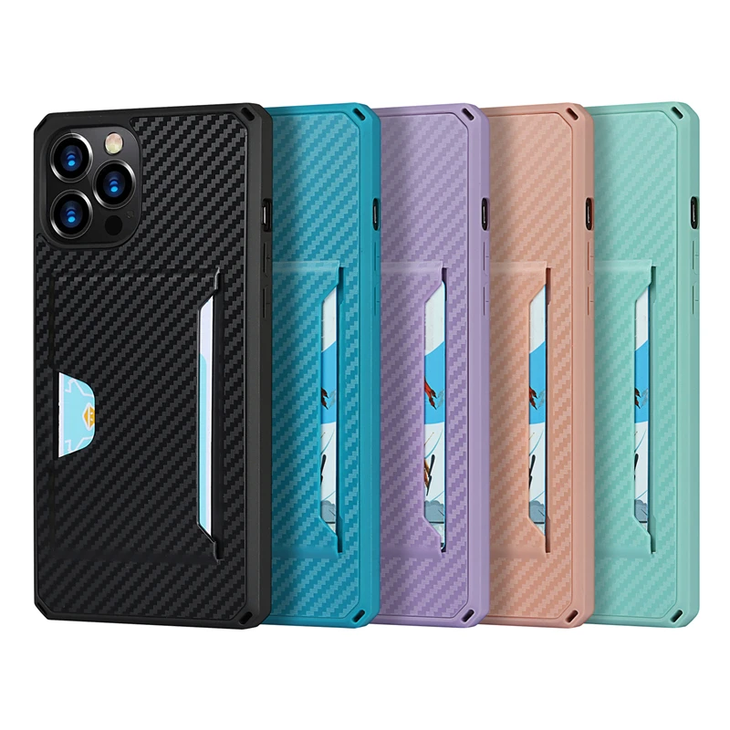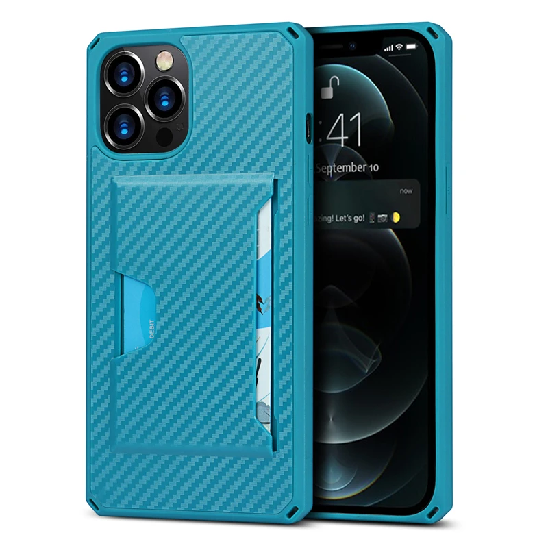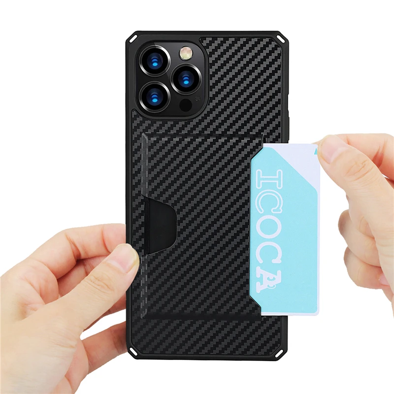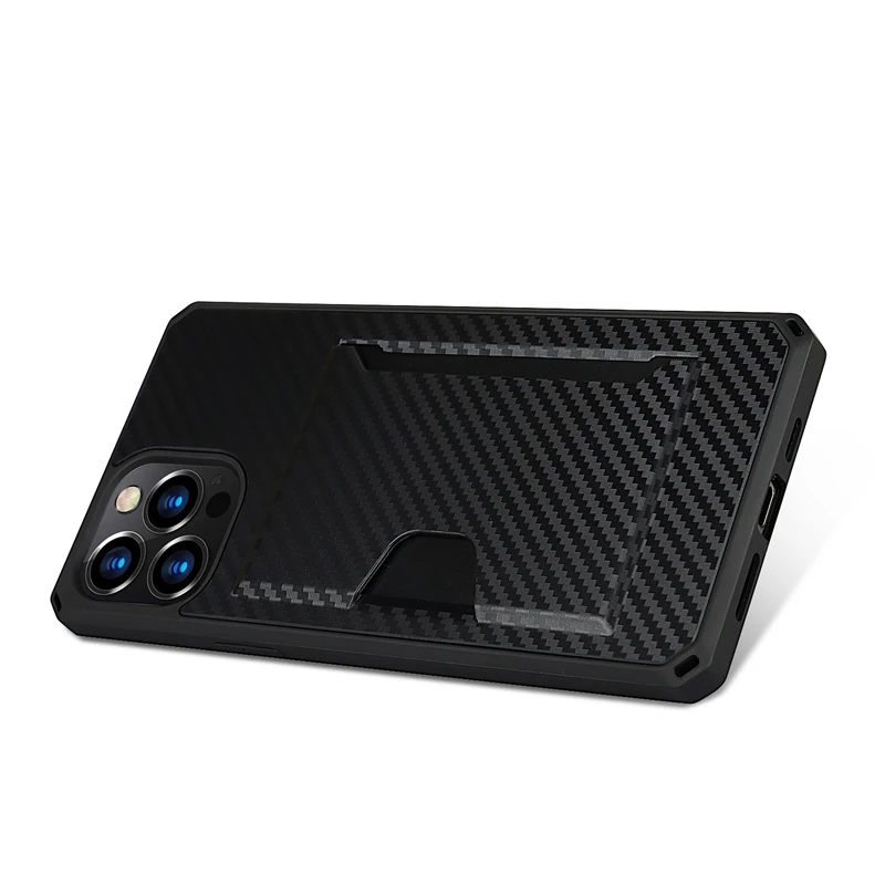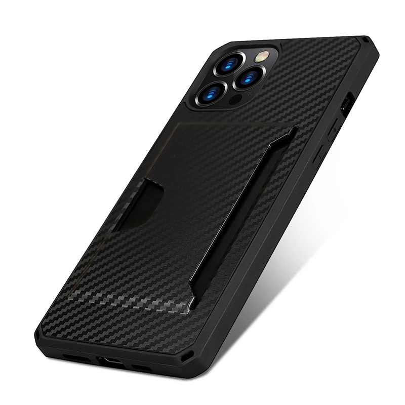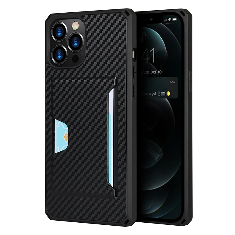 360 Full Protection Shockproof Carbon Fiber Card Slot Case For iPhone 12 11 Series