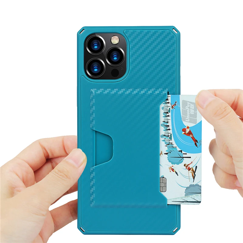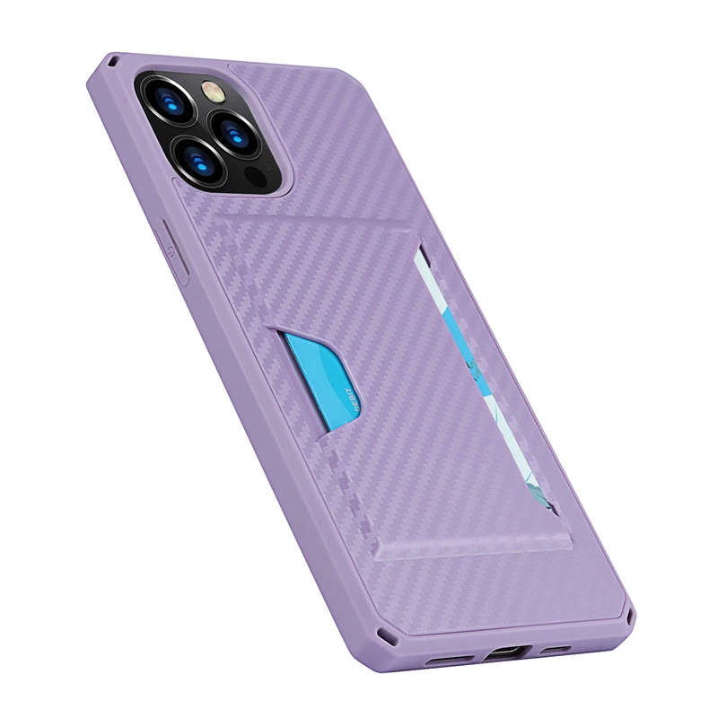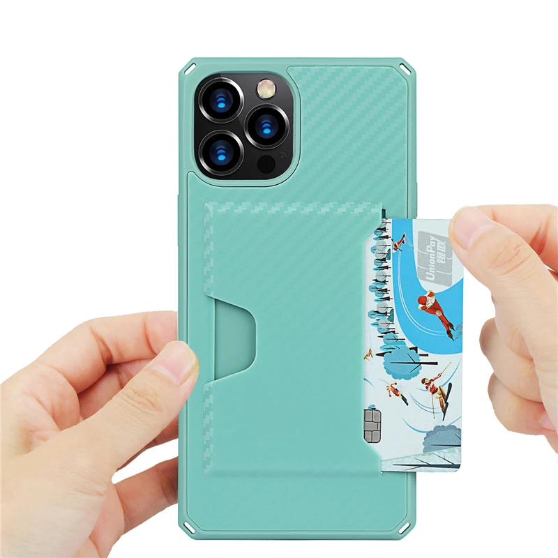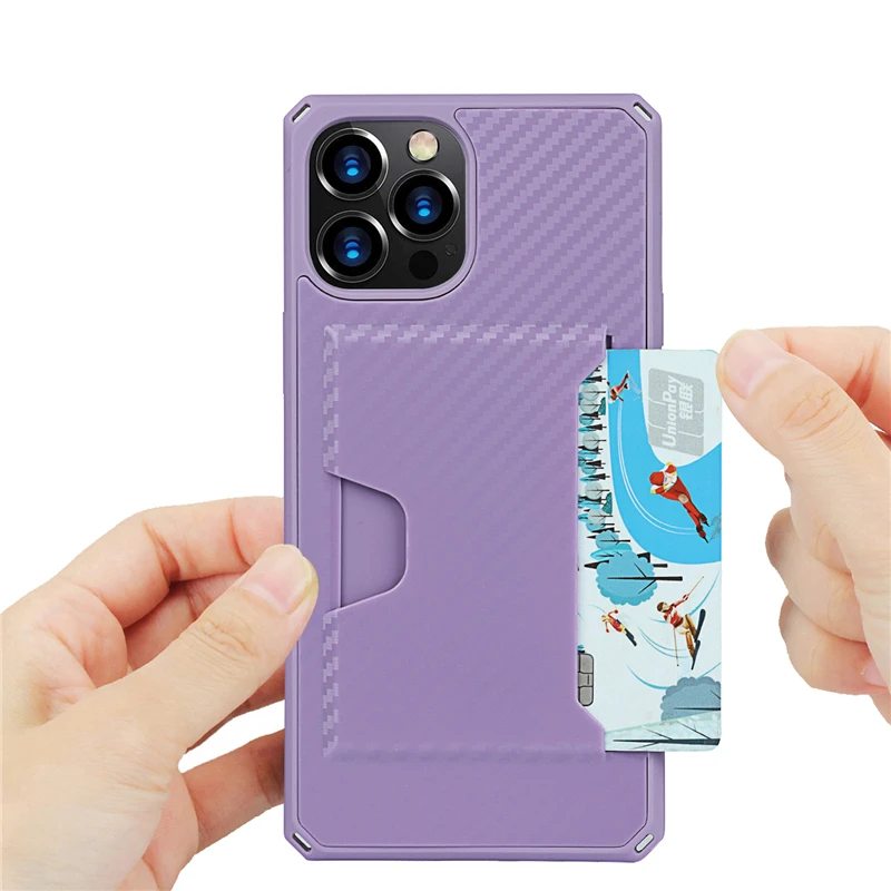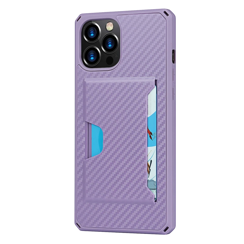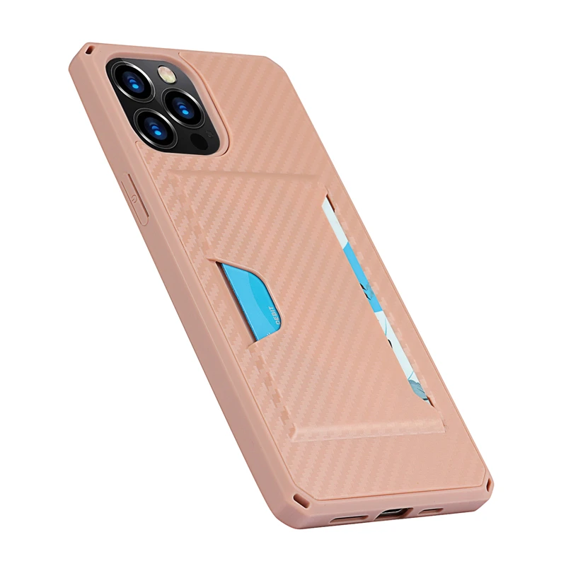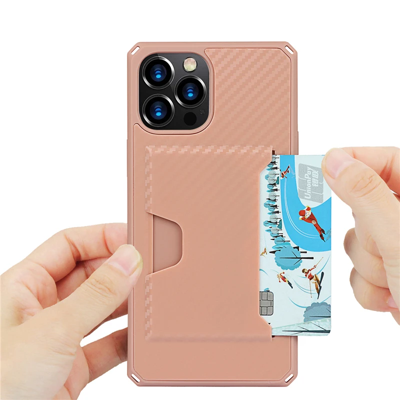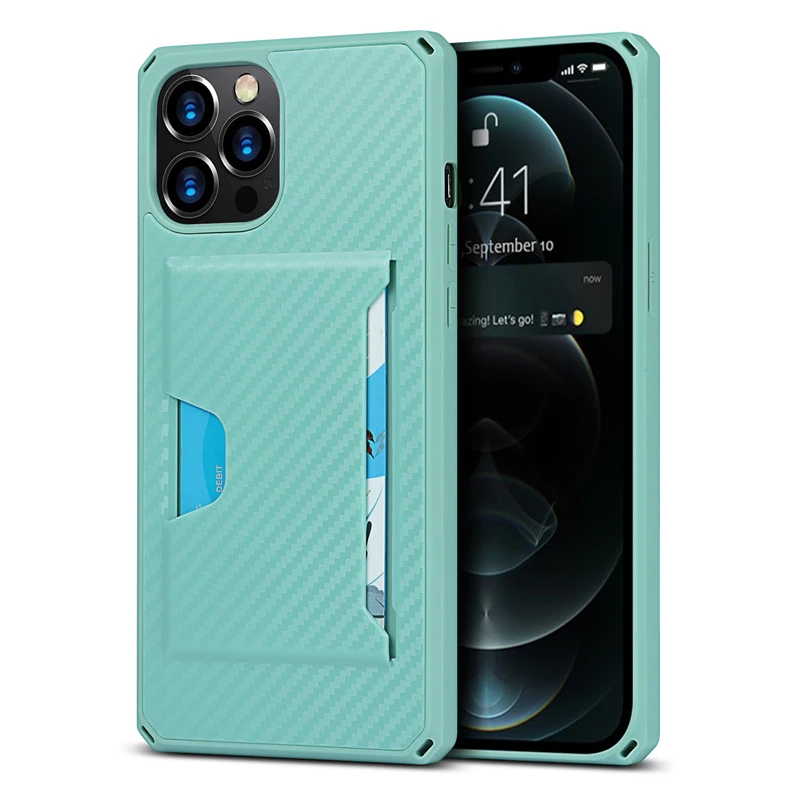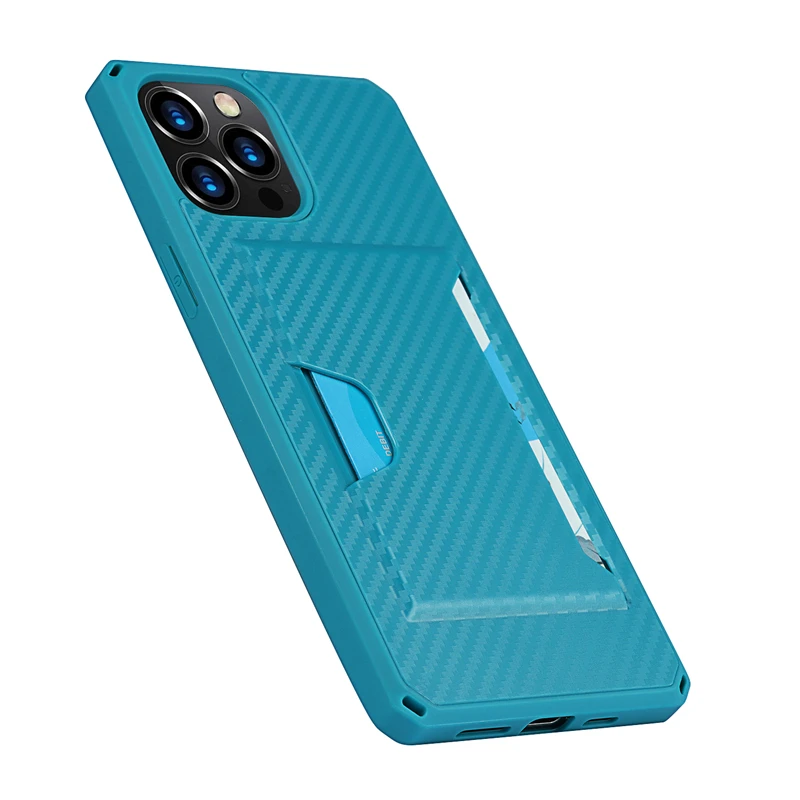 360 Full Protection Shockproof Carbon Fiber Card Slot Case For iPhone 12 11 Series