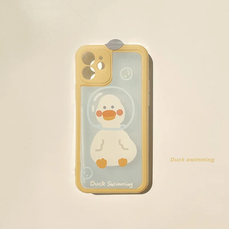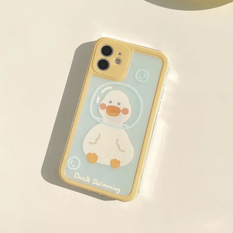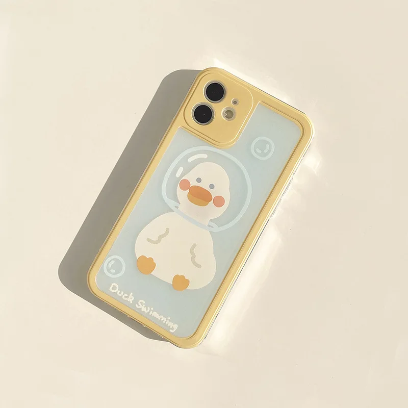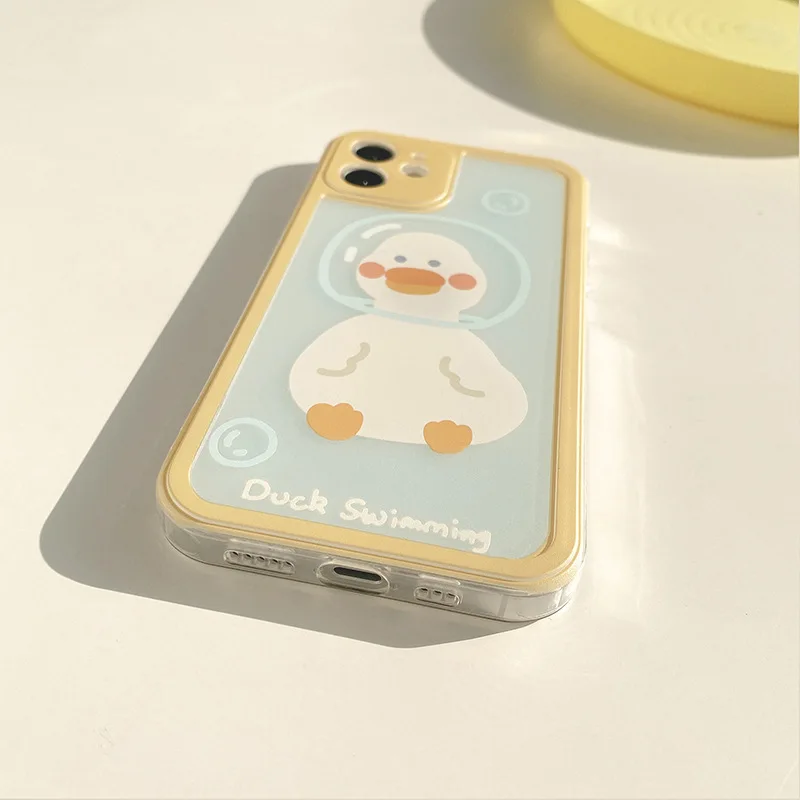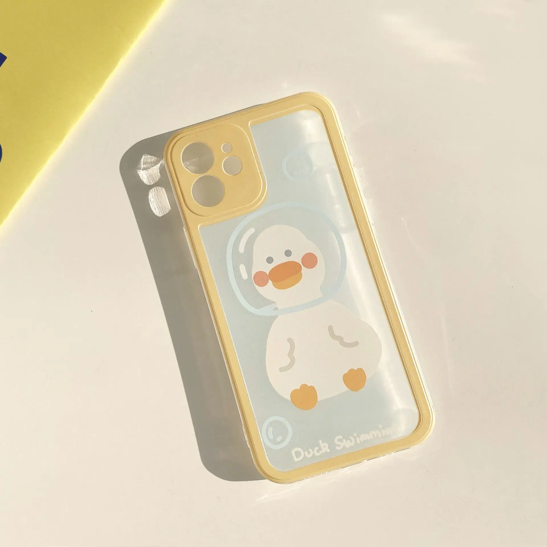 Cute Yellow Duck Transparent Phone Case For iPhone 12 11 Series