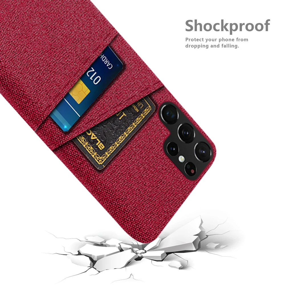 Dual Card Fabric Cloth Case for S22 S21 S20 Ultra Plus FE