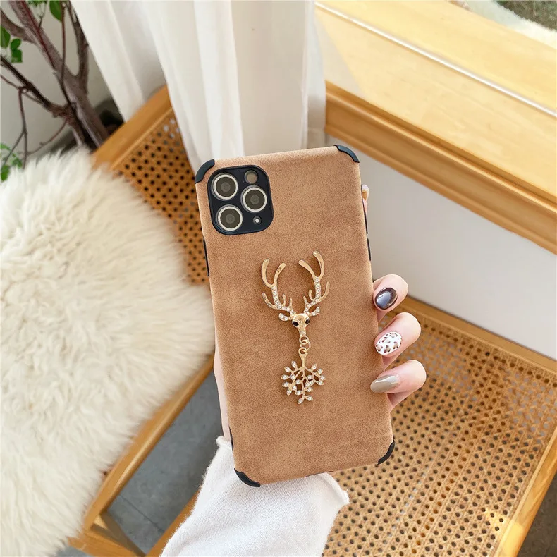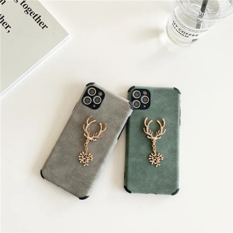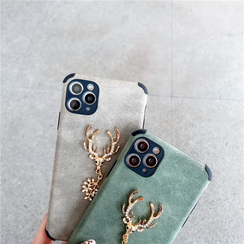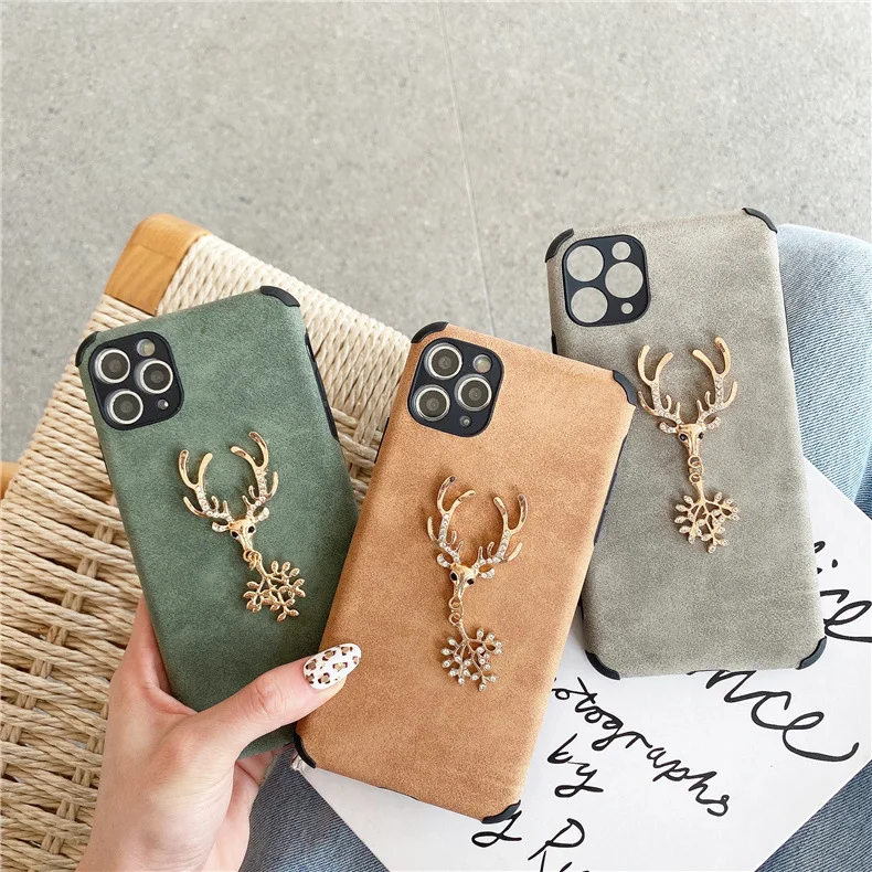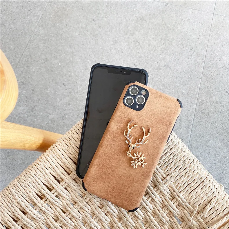 Leather Flash Elk Rhinestone Pattern Phone Case For iPhone 12 11 XS Series