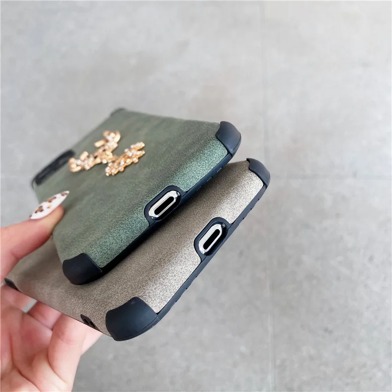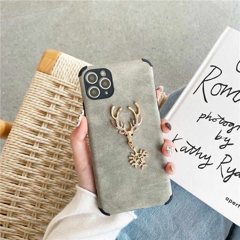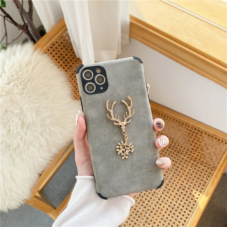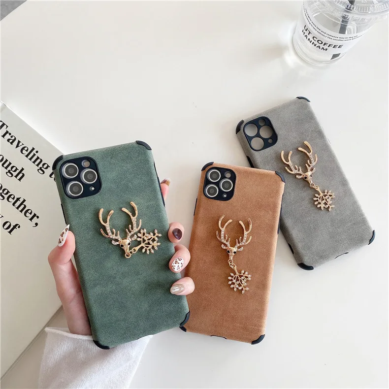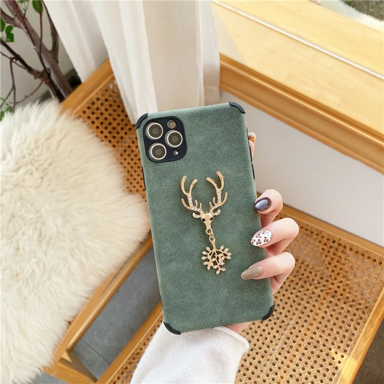 Leather Flash Elk Rhinestone Pattern Phone Case For iPhone 12 11 XS Series