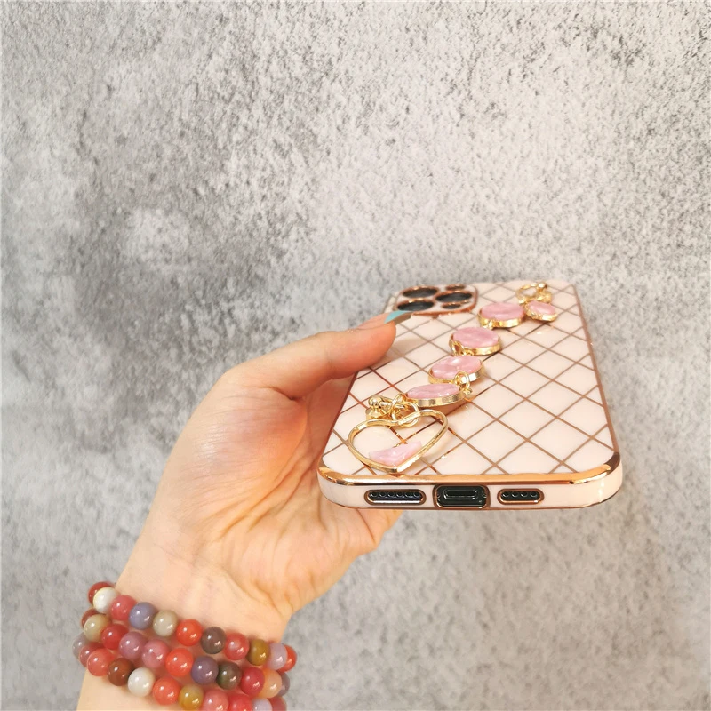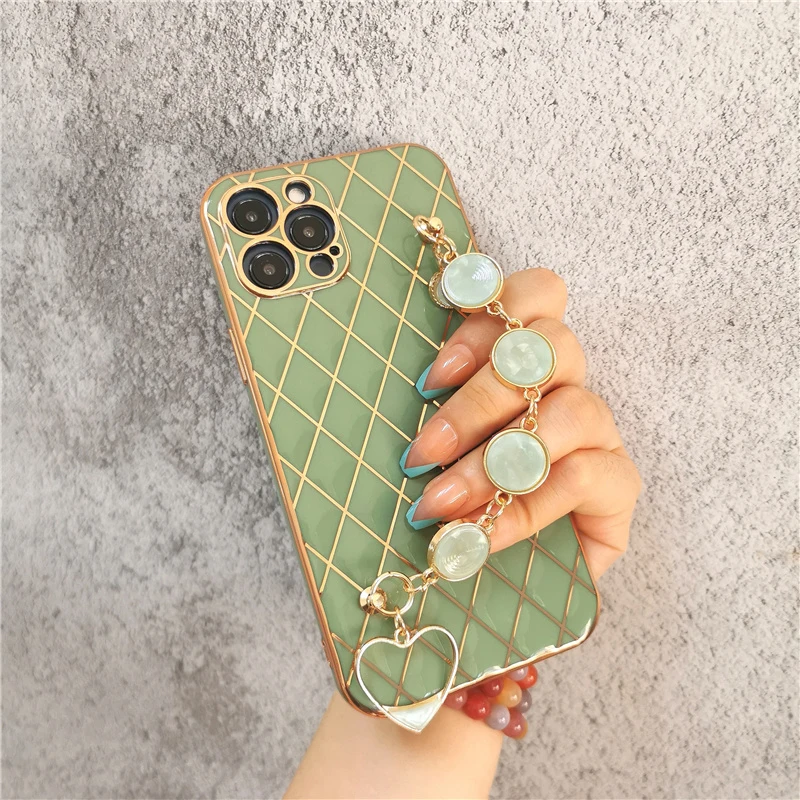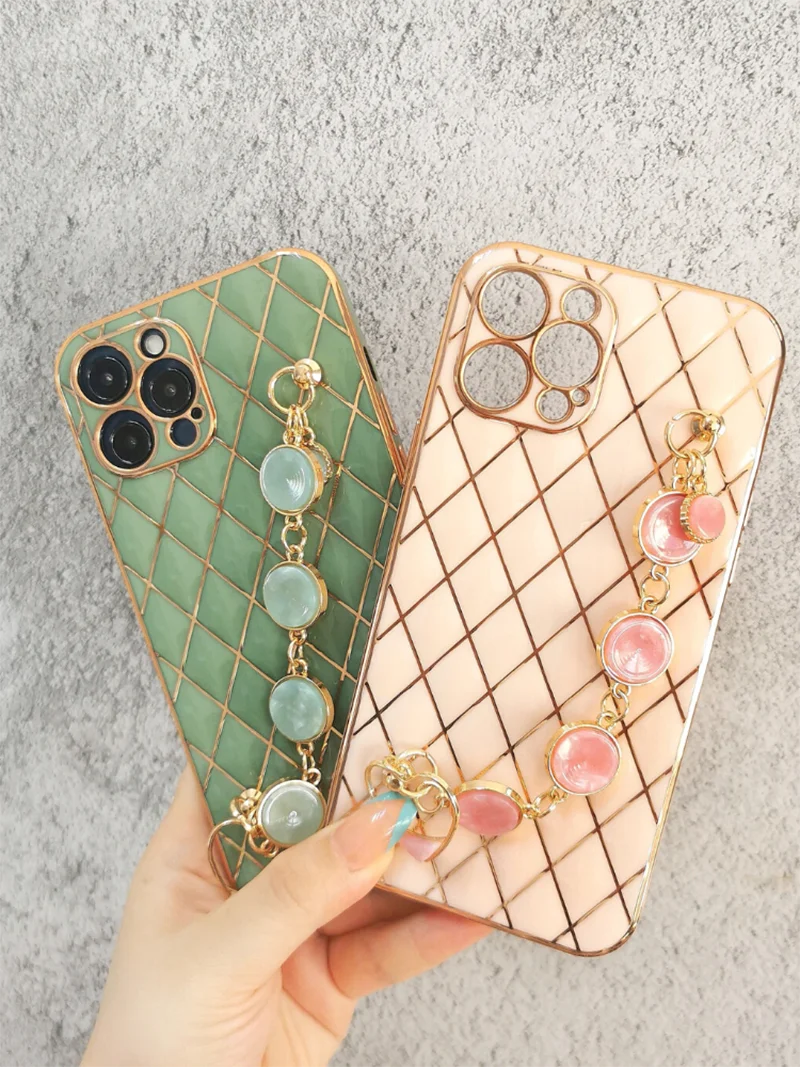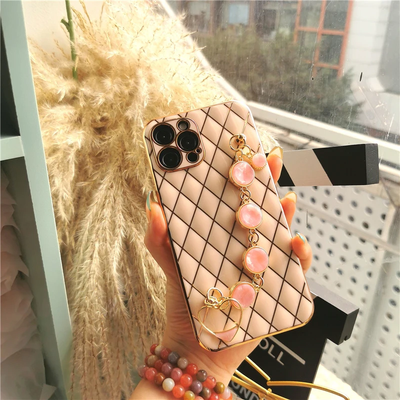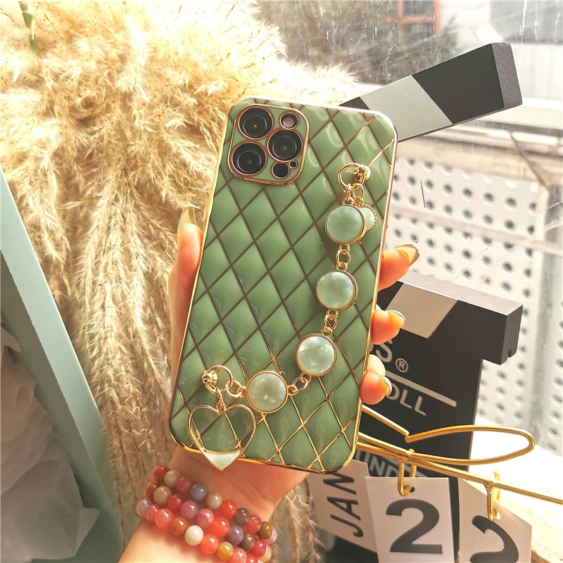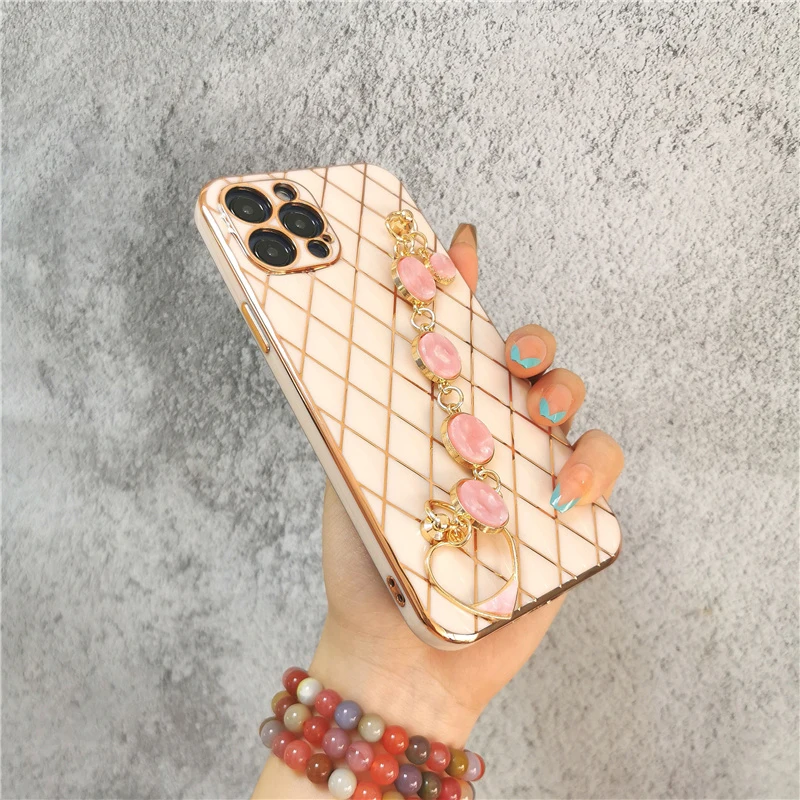 Luxury Plated Diamond Electroplated Gold Gem Hand Jewel Bracelet Case for iPhone 12 11 Series