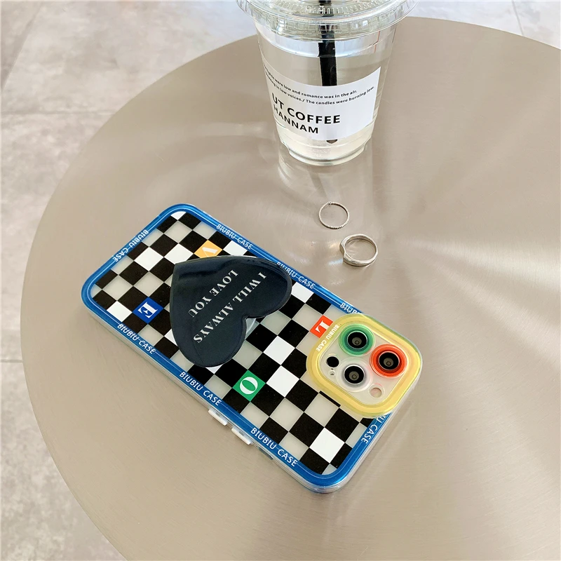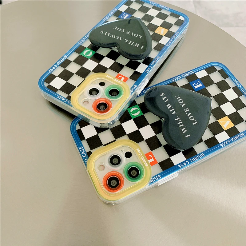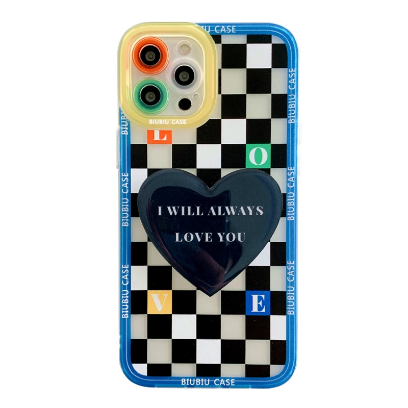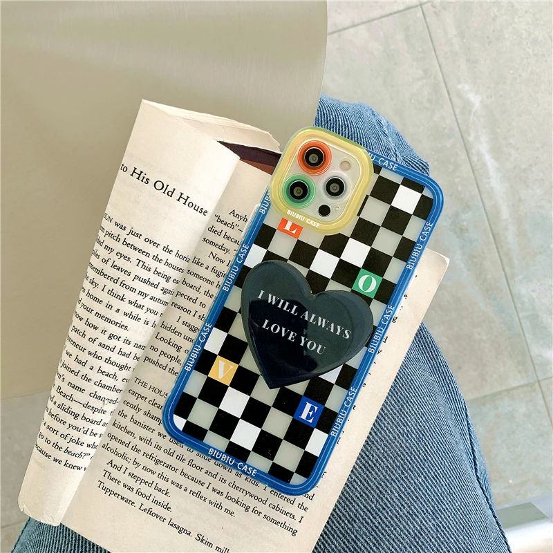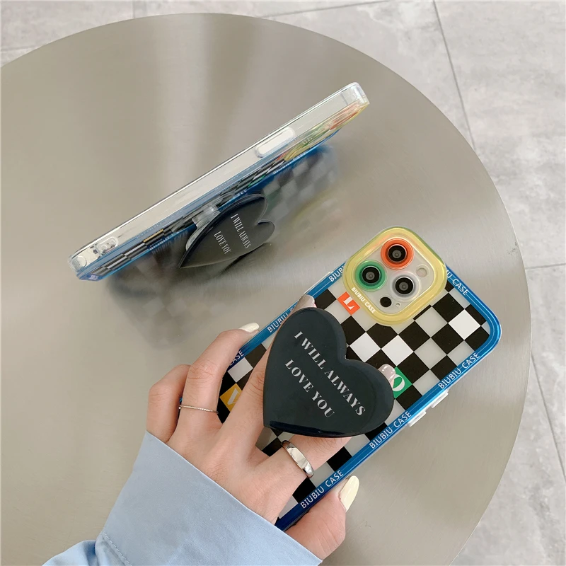 Luxury Retro Lattice Love Bracket Phone Case For iPhone 12 11 Series