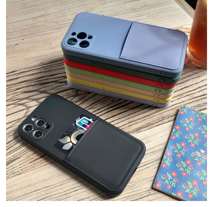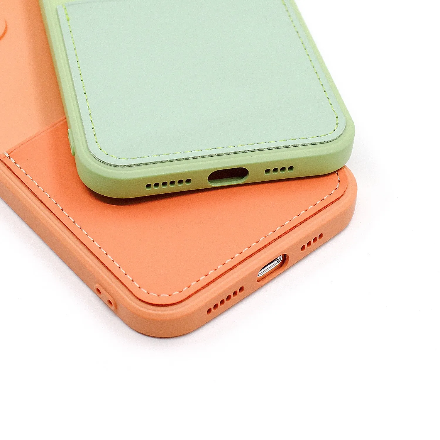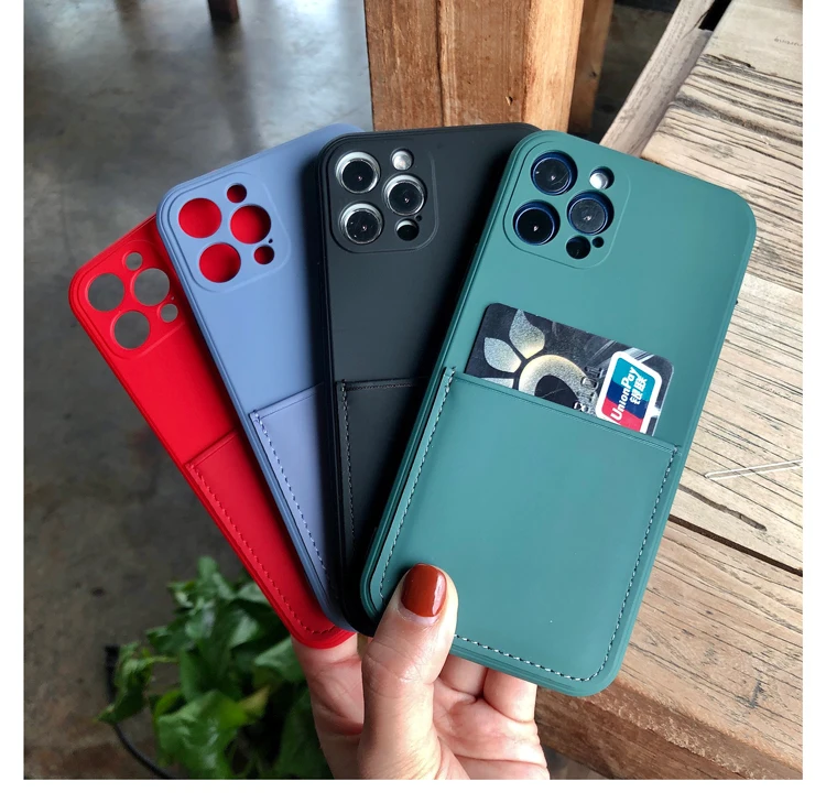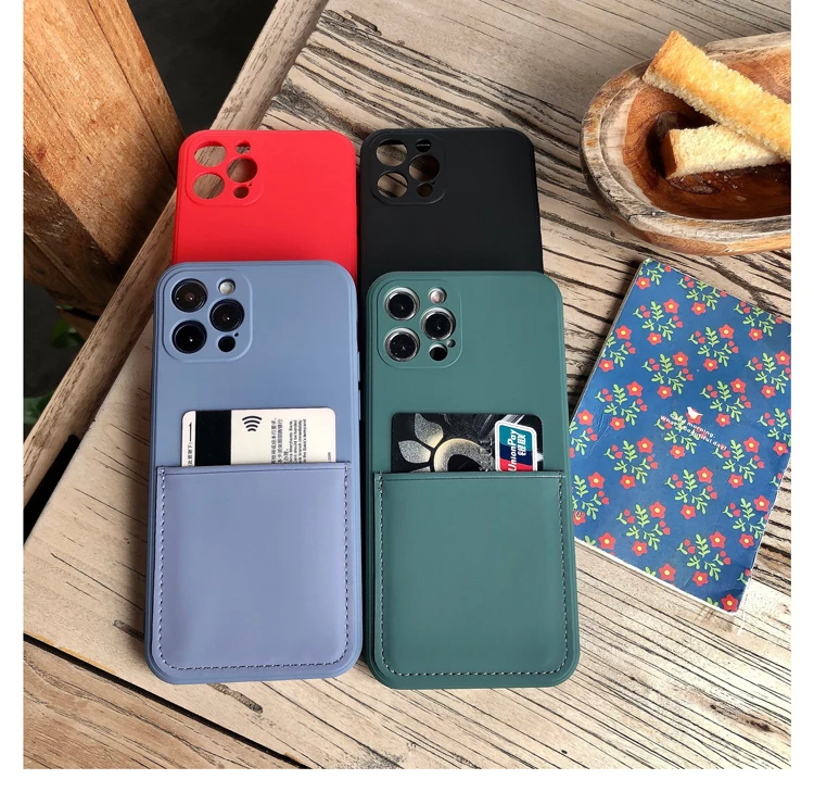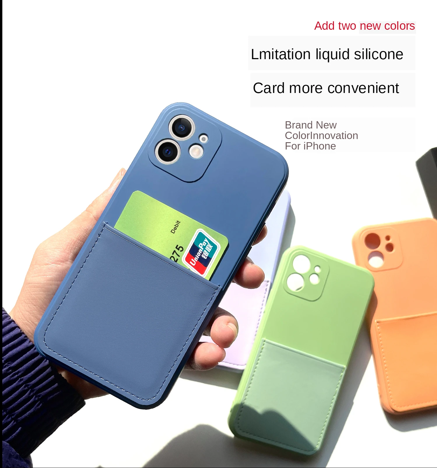 Luxury Square Edge Soft Liquid Silicone Credit Card Holder Case For IPhone 12 11 Pro Max